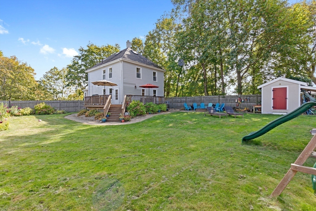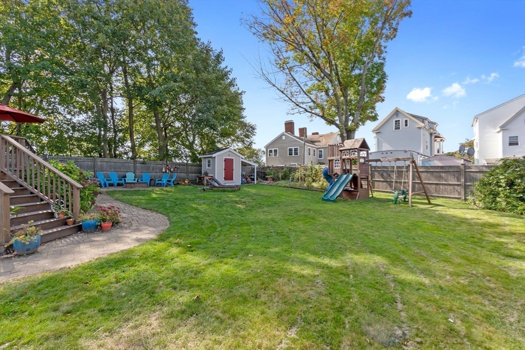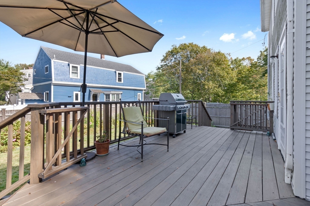 Hidden in plain sight, this spacious Colonial sits on one of the most unexpected lots near Beverly’s waterfront. Just steps from Independence Park’s sandy beach with sunrise views and summer fireworks over the harbor, life here feels like a seaside retreat. This home offers both serenity and connection. The fenced yard feels private and expansive, perfect for gathering around the fire pit or unwinding on the wide, wrap around deck. Inside, natural light pours through large windows, with a welcoming flow from the sunny kitchen to the dining and living rooms. Four bedrooms plus a third-floor bonus space offer flexibility for work, play, or guests. Across the street, a tucked-away park with a playground and sledding hill is a hidden gem. From here, stroll to downtown shops, The Cabot, or take the T Commuter Rail train in to Boston. Everything Beverly is known for is moments away, yet you'll feel like you're a world apart. Impeccably maintained and major systems upgraded. Truly turn-key.