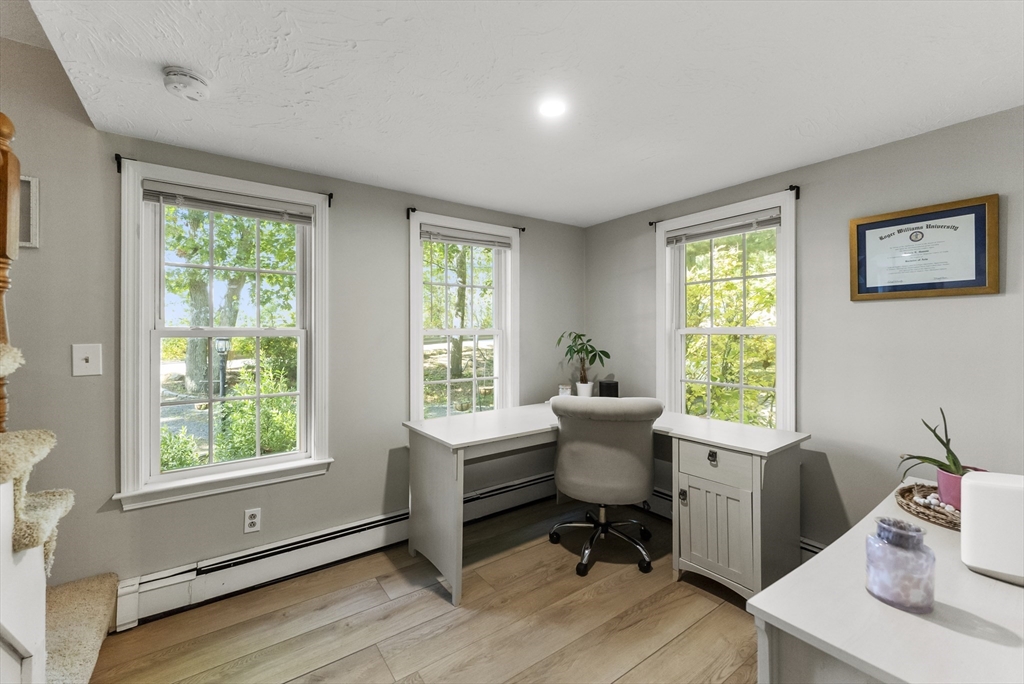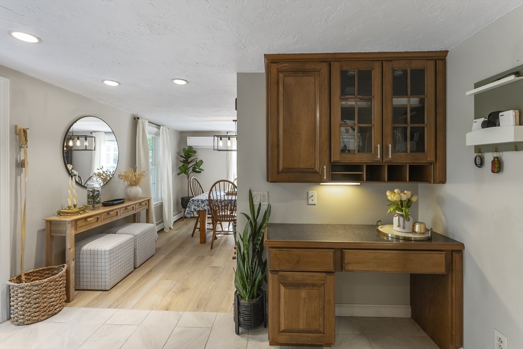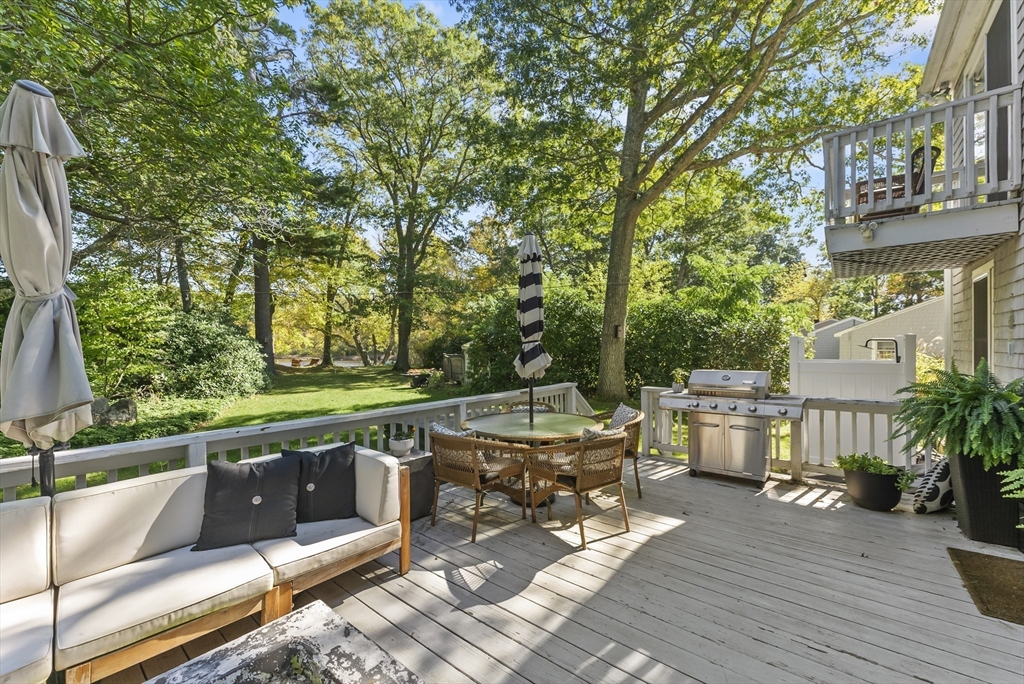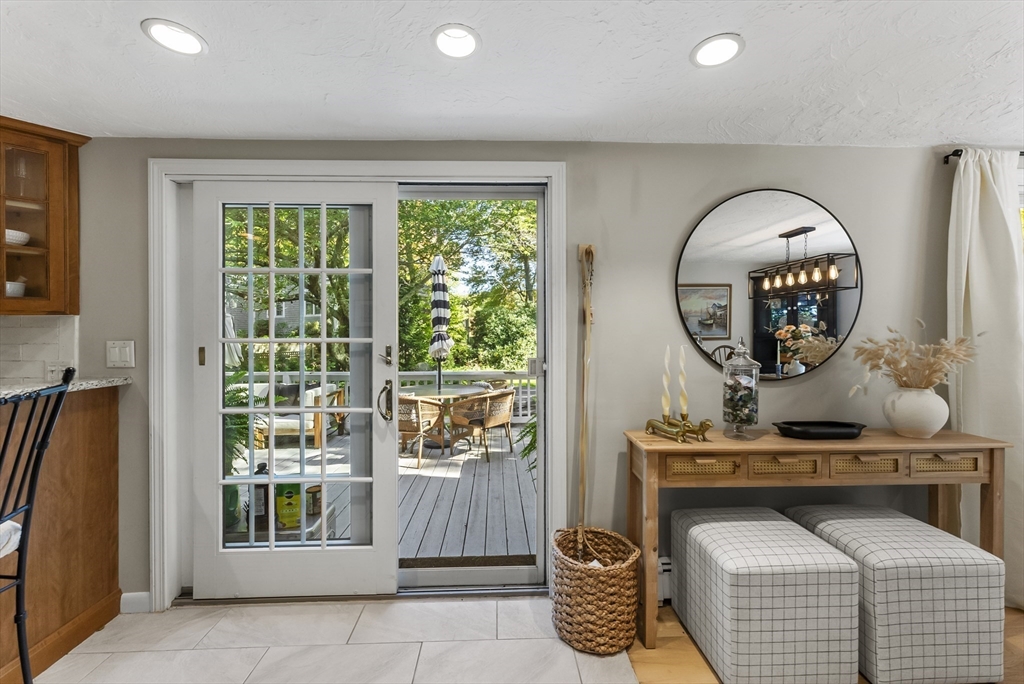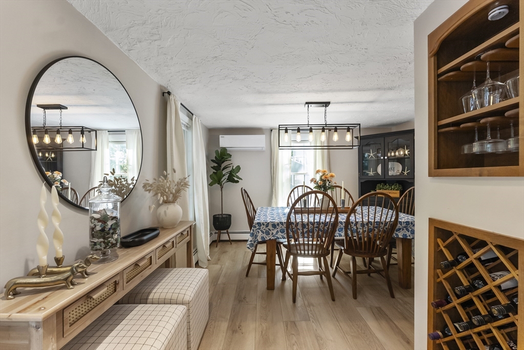 Welcome to your own private pond front retreat in the heart of Plymouth's Manomet Village! Ideally located just 2 miles from White Horse Beach, 7 miles from downtown Plymouth, and across from the Mass Audubon Tidmarsh Wildlife Sanctuary. This charming 3-bedroom, 1.5-bath Cape-style home blends comfort, modern updates, and serene outdoor living. The kitchen was fully remodeled in 2020 along with new windows, Anderson slider, and a brand-new septic system was installed in 2023. Two new mini split systems add year-round efficiency. The first-floor features luxury vinyl flooring, with extra materials to finish remaining rooms. The primary and second bedrooms are located on the 2nd floor. The primary bedroom features an enhanced skylight and Juliet balcony overlooking the water. The finished basement includes a third bedroom and additional living space. Step outside to enjoy a spacious deck, new vinyl outdoor shower, two-person hot tub, and your own floating dock on a peaceful private pond.