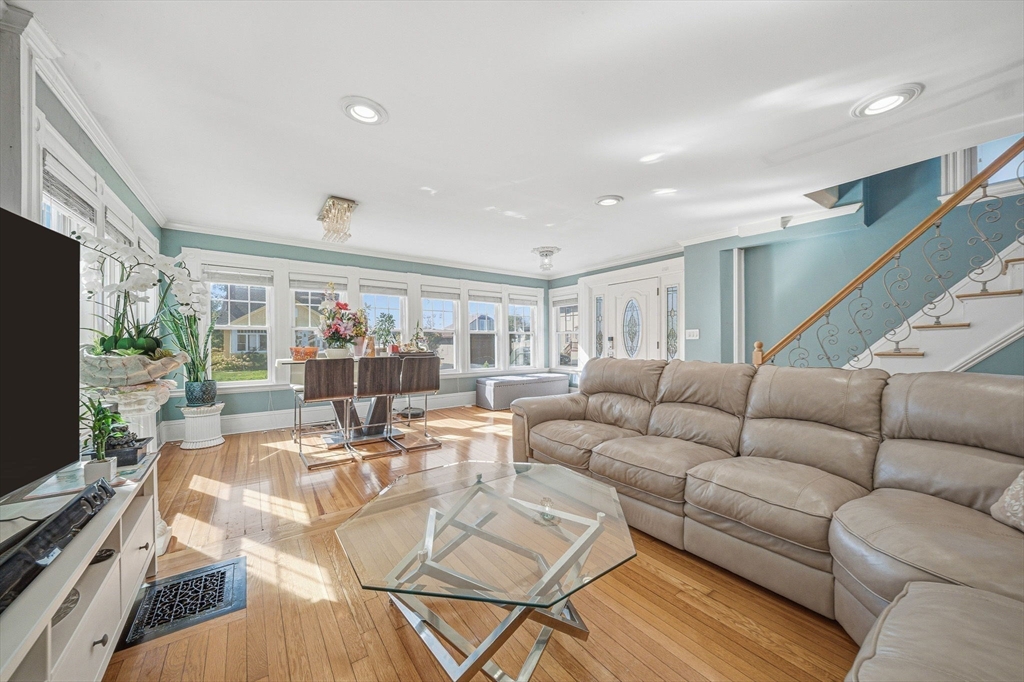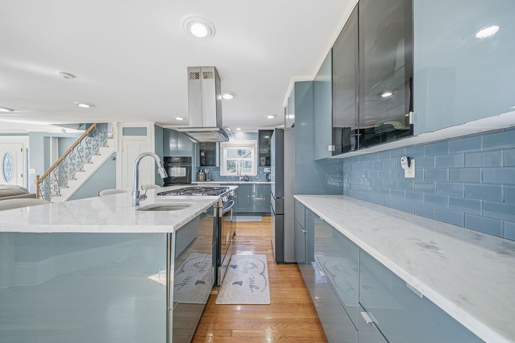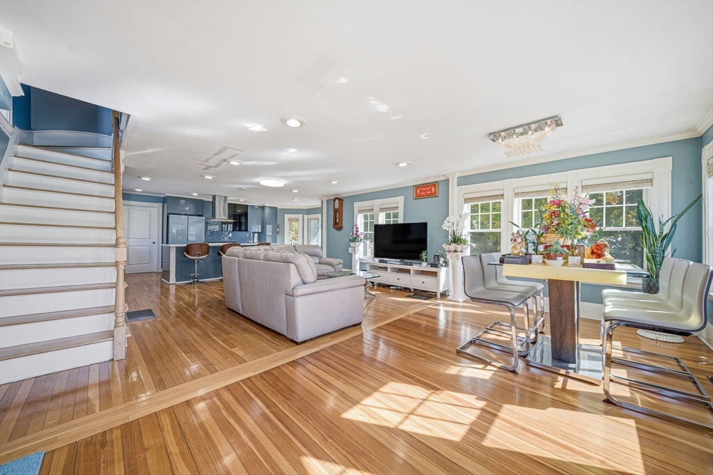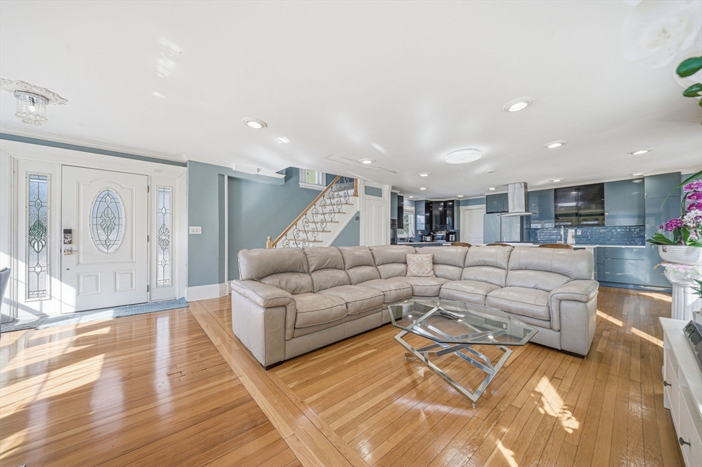 Welcome to 16 Munroe St, Lynnfield. This lovely property offers easy highway access, a modern open-concept living space, and move-in ready condition. The sunlit living room and kitchen create a bright and heart-warm atmosphere. The contemporary kitchen features three ovens, gas cooking, a kitchen island with a stainless steel vent hood, quartzite countertops, and double sliding doors leading to a spacious deck, perfect for summer family gatherings and barbecues. The master bedroom on the first floor boasts a walk-in closet, laundry facilities, and a skylight. The second floor has three bedrooms and a full bath with a tub and shower stall. The lower level includes a family room/game room, an additional bedroom or office, a bathroom, and another laundry area. The property is well-maintained with tankless water system, gas heating, central air conditioning, a two-car detached garage. OPEN HOUSE 10/25 AND 10/26 from 1pm-3pm.