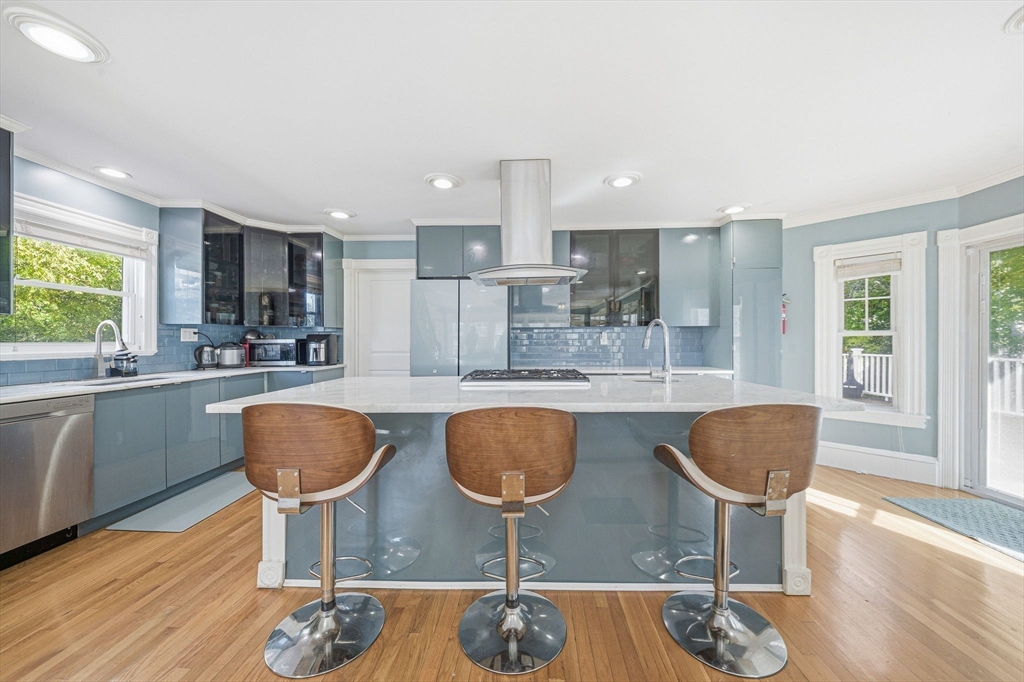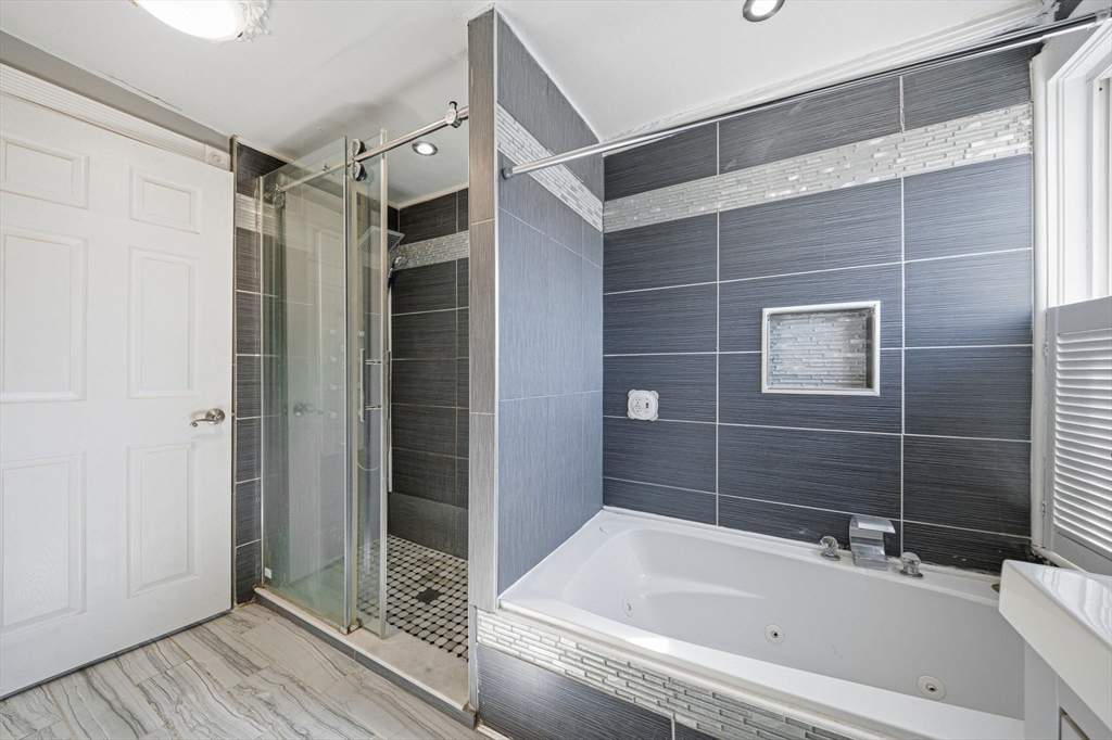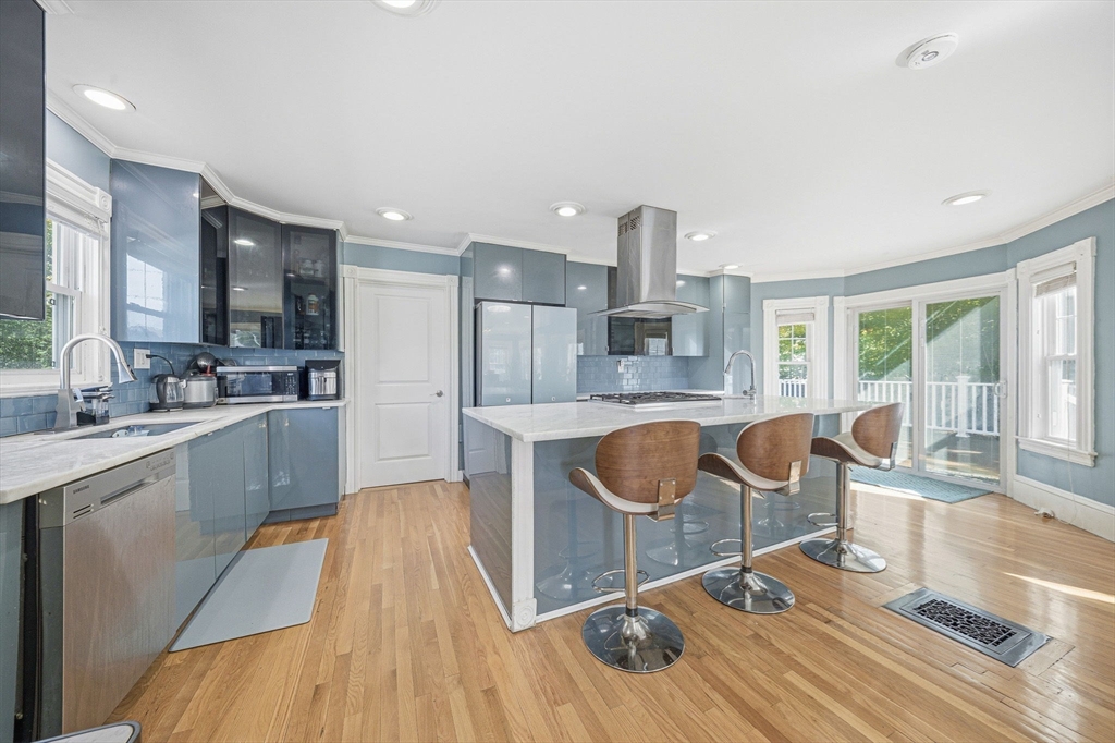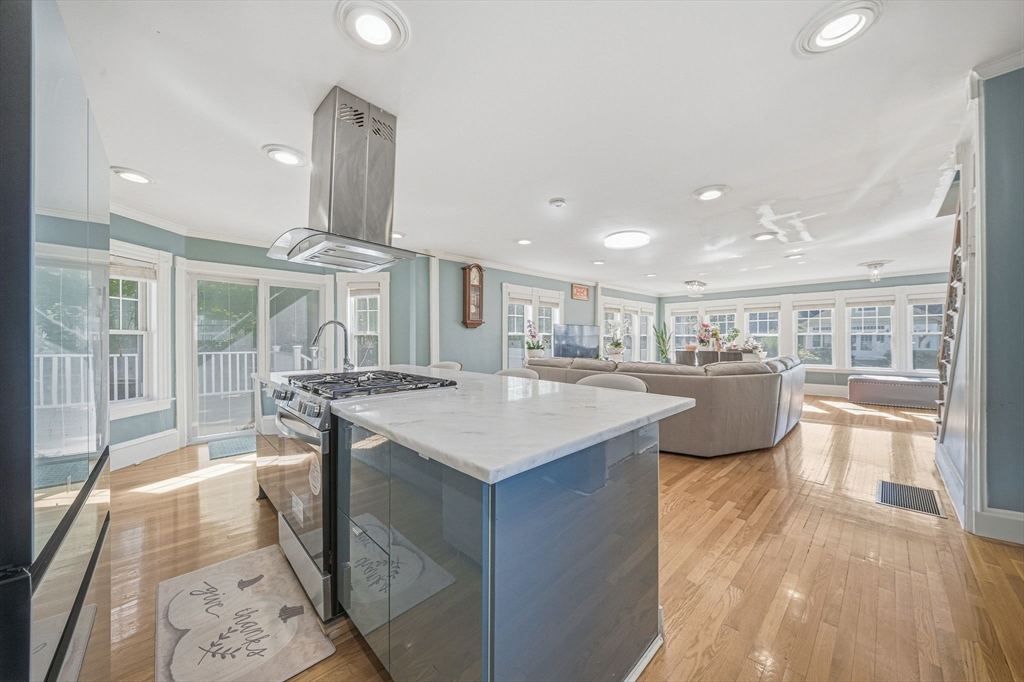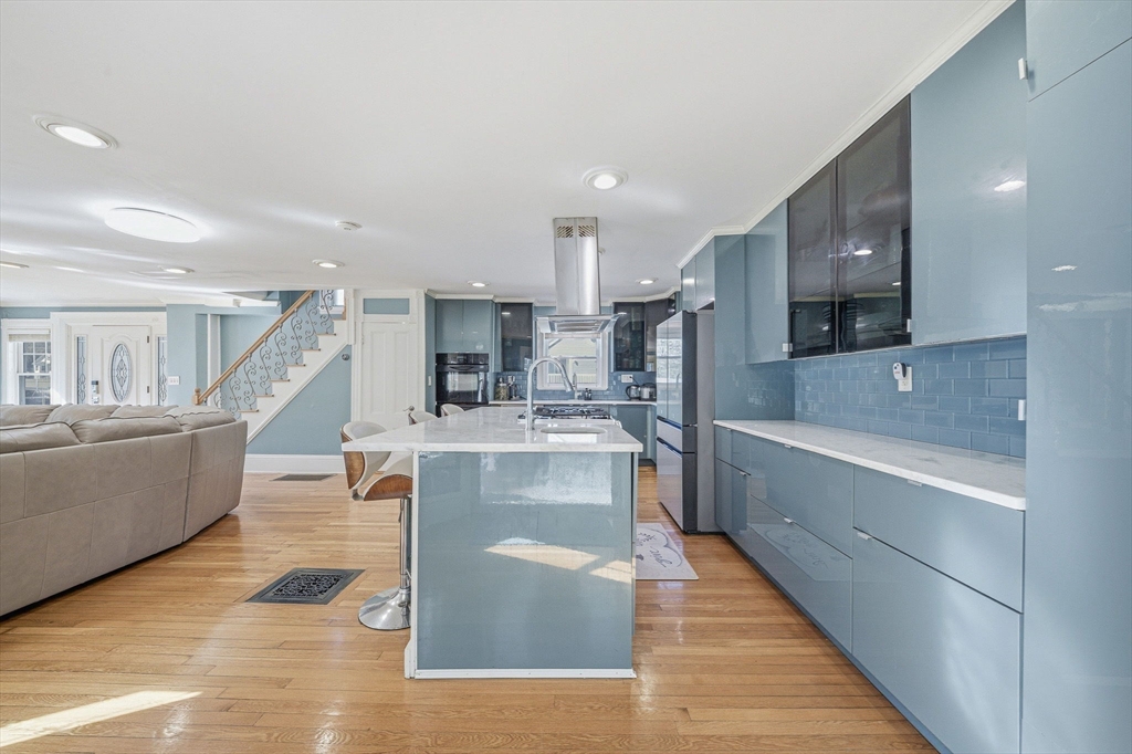 Welcome to 16 Munroe St, Lynnfield. This lovely property offers easy highway access, a modern open-concept living space, and move-in ready condition. The sunlit living room and kitchen create a bright and heart-warm atmosphere. The contemporary kitchen features three ovens, gas cooking, a kitchen island with a stainless steel vent hood, quartzite countertops, and double sliding doors leading to a spacious deck, perfect for summer family gatherings and barbecues. The master bedroom on the first floor boasts a walk-in closet, laundry facilities, and a skylight. The second floor has three bedrooms and a full bath with a tub and shower stall. The lower level includes a family room/game room, an additional bedroom or office, a bathroom, and another laundry area. The property is well-maintained with tankless water system, gas heating, central air conditioning, a two-car detached garage. OPEN HOUSE 10/25 AND 10/26 from 1pm-3pm.
