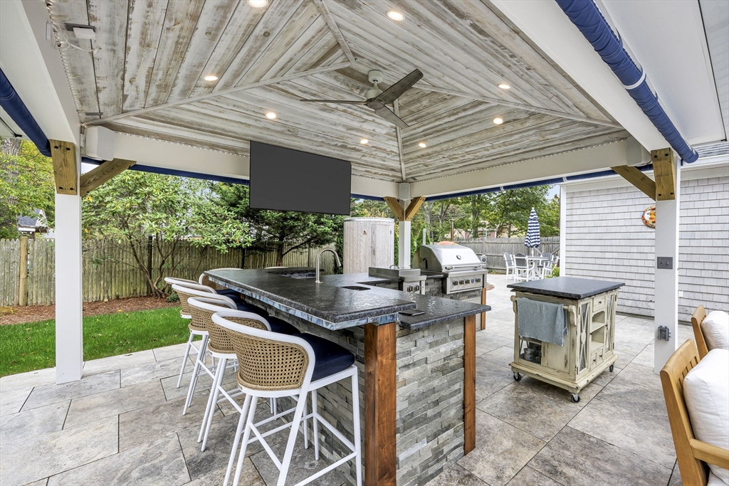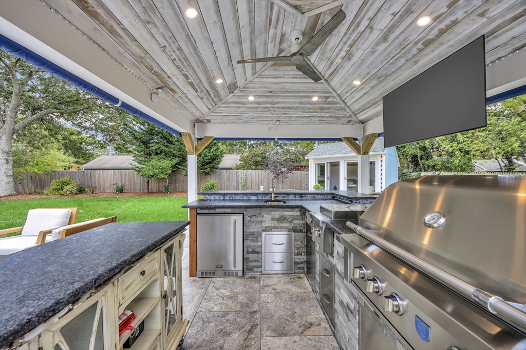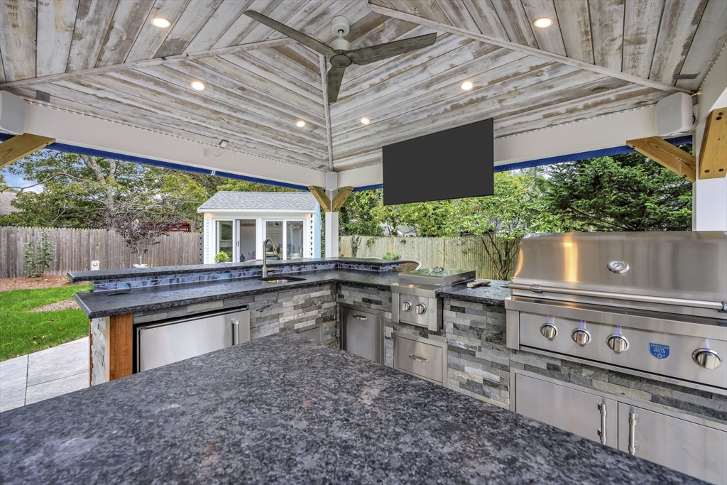 Imagine stepping into a home that feels like an oasis from the moment you arrive. This is 58 Hemeon Drive, spacious ranch-style property featuring 3 bedrooms and 2 full bathrooms, with an open floor plan and beautiful hardwood floors throughout. The immense living room with wood burning fireplace seamlessly connects to sizable kitchen with high vaulted ceilings plenty of cabinets and pantry .The sunlit, airy dining room is enhanced by natural light and a gas fireplace, creating a welcoming atmosphere. Convenient first-floor laundry, primary suite , a one-car garage, air conditioning and irrigation add to the home's practicality. The double driveways accommodate plenty of vehicles for guests , fully fenced in back yard sure to give you sense of privacy .The backyard is truly a sanctuary, complete with a state-of-the-art outdoor kitchen, a pizza oven, and a stunning outdoor shower.