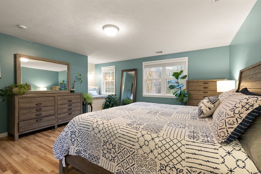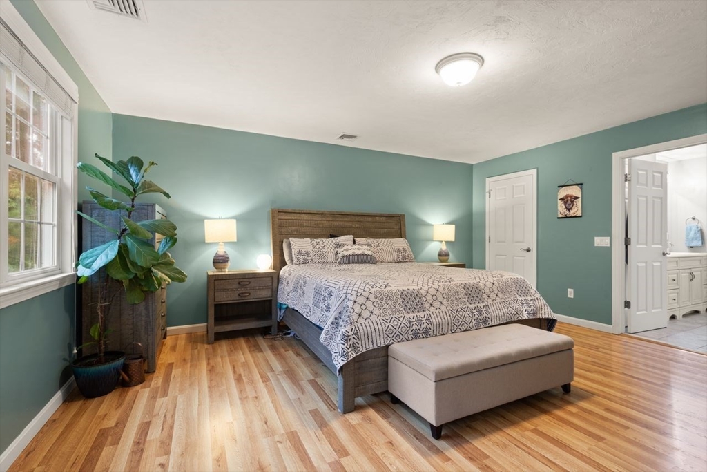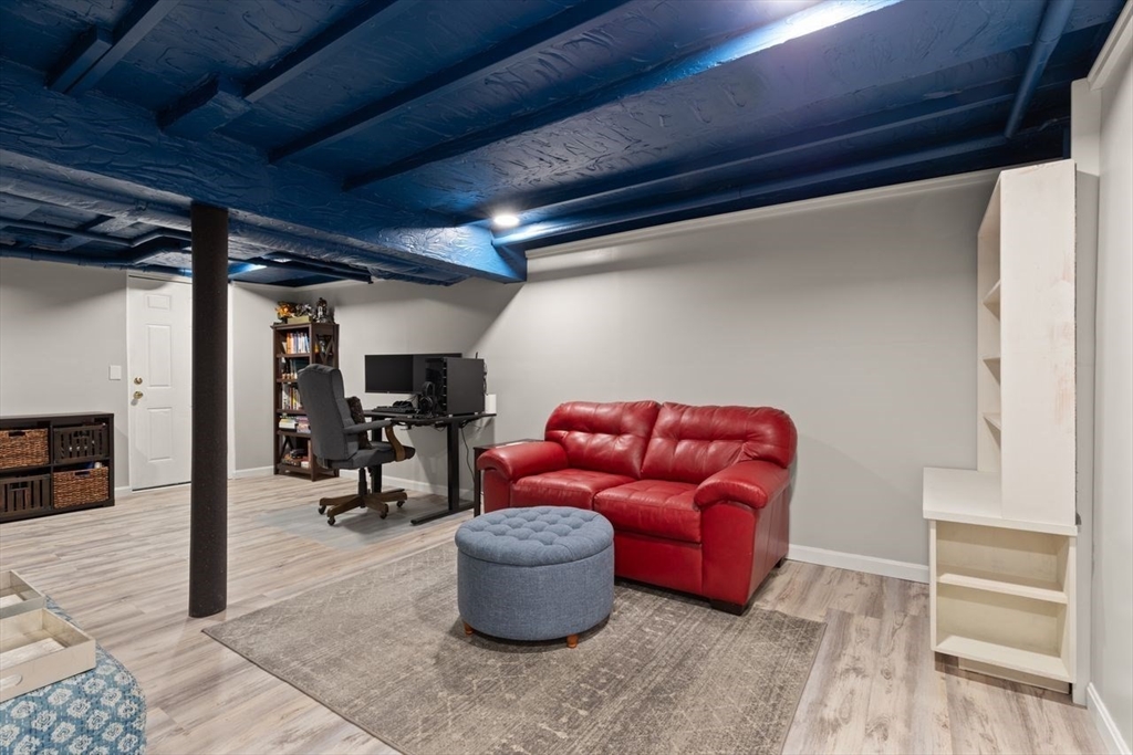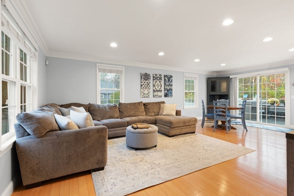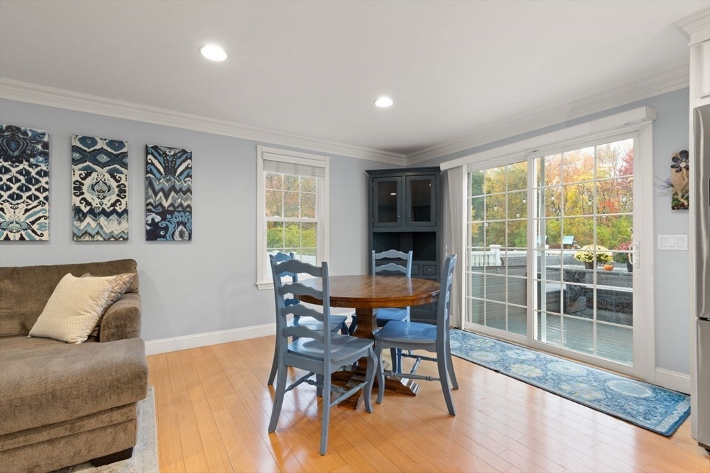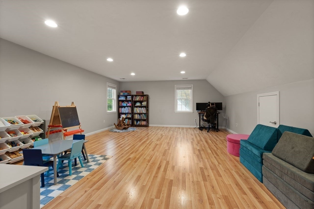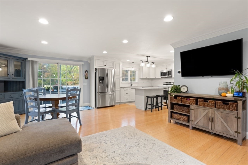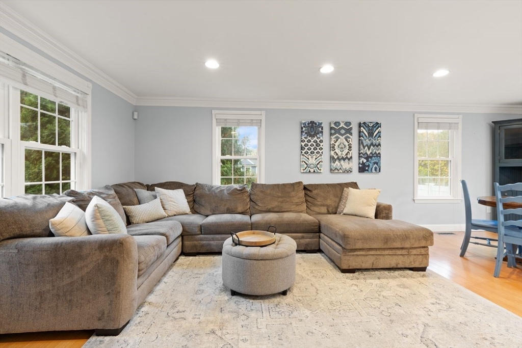 Well-maintained Garrison Colonial offering 3 bedrooms, 2.5 baths, and over 2,200 sq. ft. of finished space, not including a partially finished lower level. Originally built in 1963 and rebuilt in 2007, this home features hardwood floors throughout, crown molding, and detailed woodwork. The kitchen was updated in 2024 with white quartz countertops, new tile backsplash, stainless steel appliances, and modern lighting. A spacious bonus room over the garage offers flexible use as an office, living room, den, with potential to add an in-law suite. Recent upgrades include new garage doors (2023), stair runner (2025), and master bath fixtures (2024). The fenced backyard includes a Trex deck, stone patio, fire pit, and play set, providing a great setup for outdoor enjoyment. Energy improvements made through Mass Save in 2019. Two gas heating systems and two central A/C zones. Septic system installed in 2018. Move-in ready with thoughtful improvements throughout.