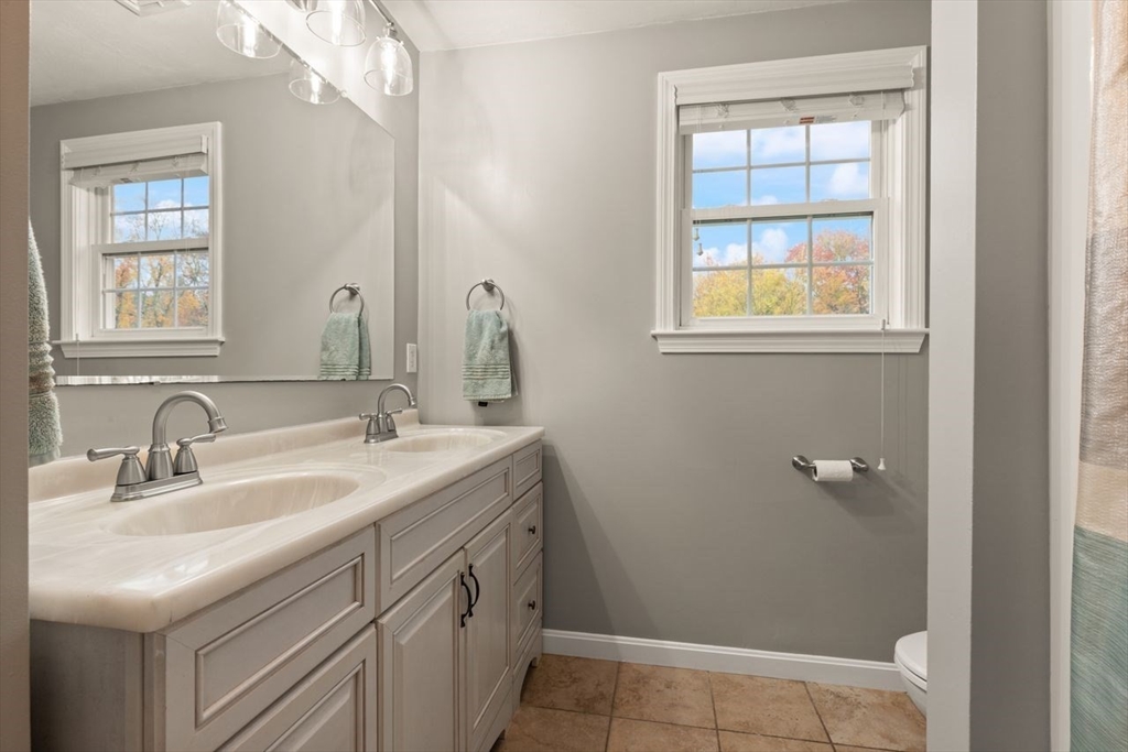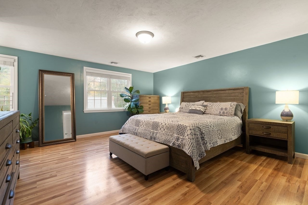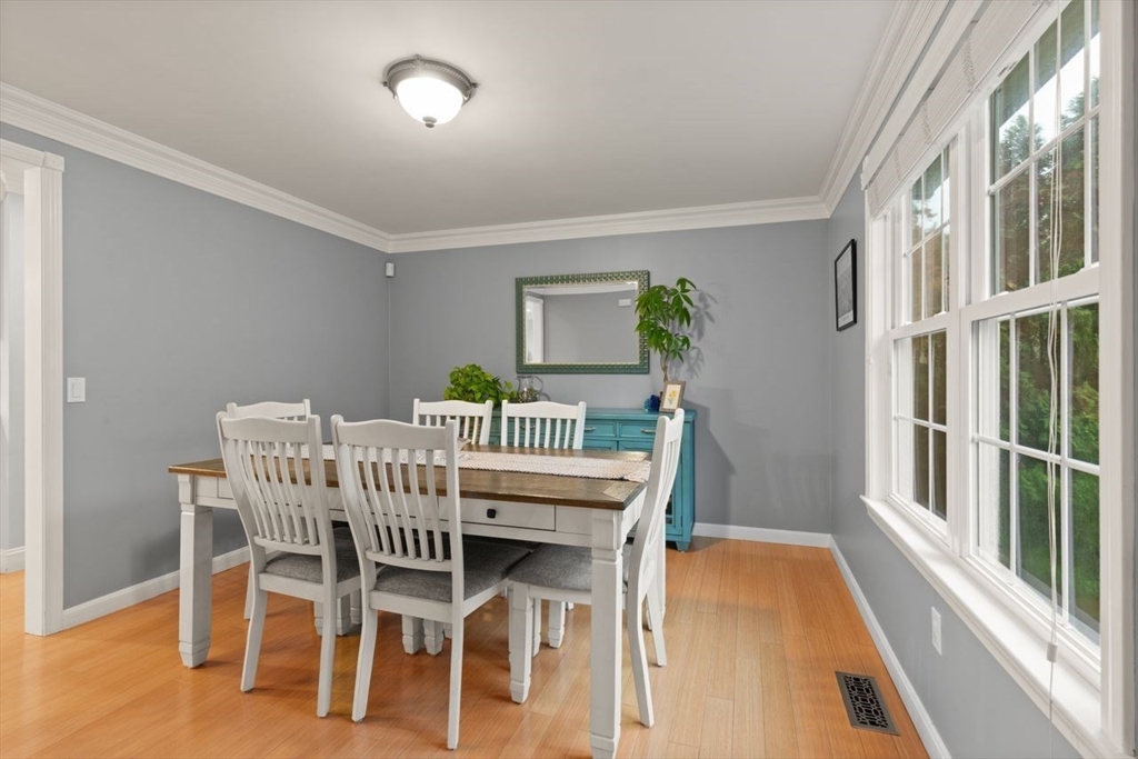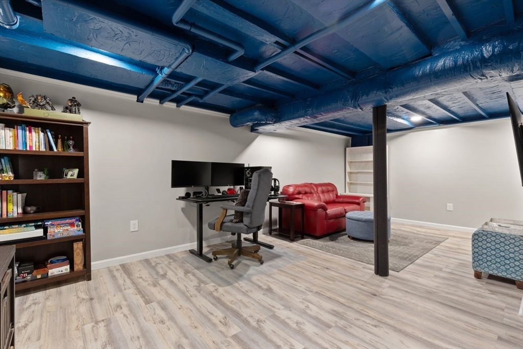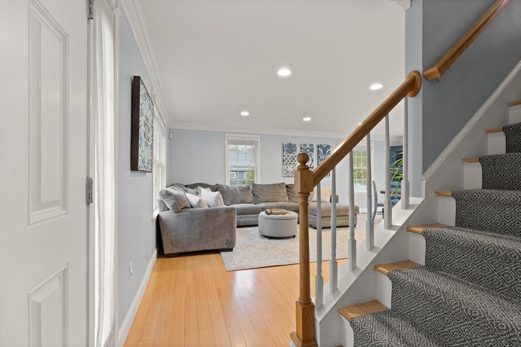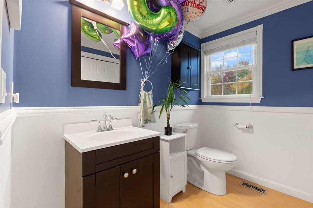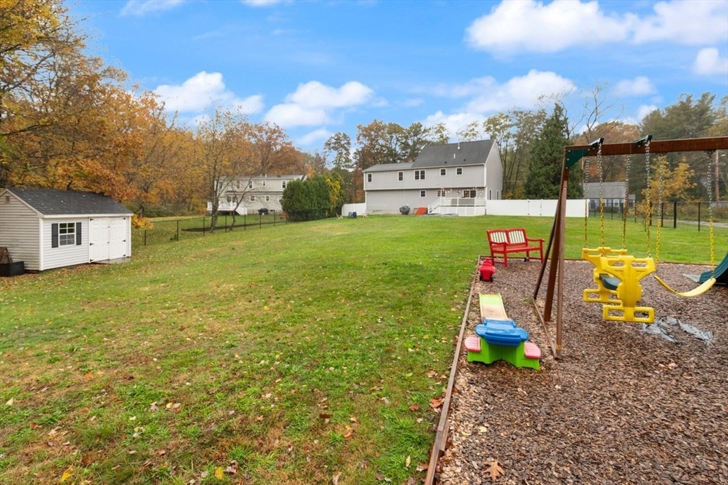 Well-maintained Garrison Colonial offering 3 bedrooms, 2.5 baths, and over 2,200 sq. ft. of finished space, not including a partially finished lower level. Originally built in 1963 and rebuilt in 2007, this home features hardwood floors throughout, crown molding, and detailed woodwork. The kitchen was updated in 2024 with white quartz countertops, new tile backsplash, stainless steel appliances, and modern lighting. A spacious bonus room over the garage offers flexible use as an office, living room, den, with potential to add an in-law suite. Recent upgrades include new garage doors (2023), stair runner (2025), and master bath fixtures (2024). The fenced backyard includes a Trex deck, stone patio, fire pit, and play set, providing a great setup for outdoor enjoyment. Energy improvements made through Mass Save in 2019. Two gas heating systems and two central A/C zones. Septic system installed in 2018. Move-in ready with thoughtful improvements throughout.