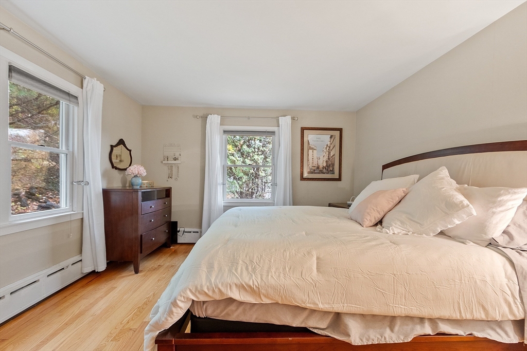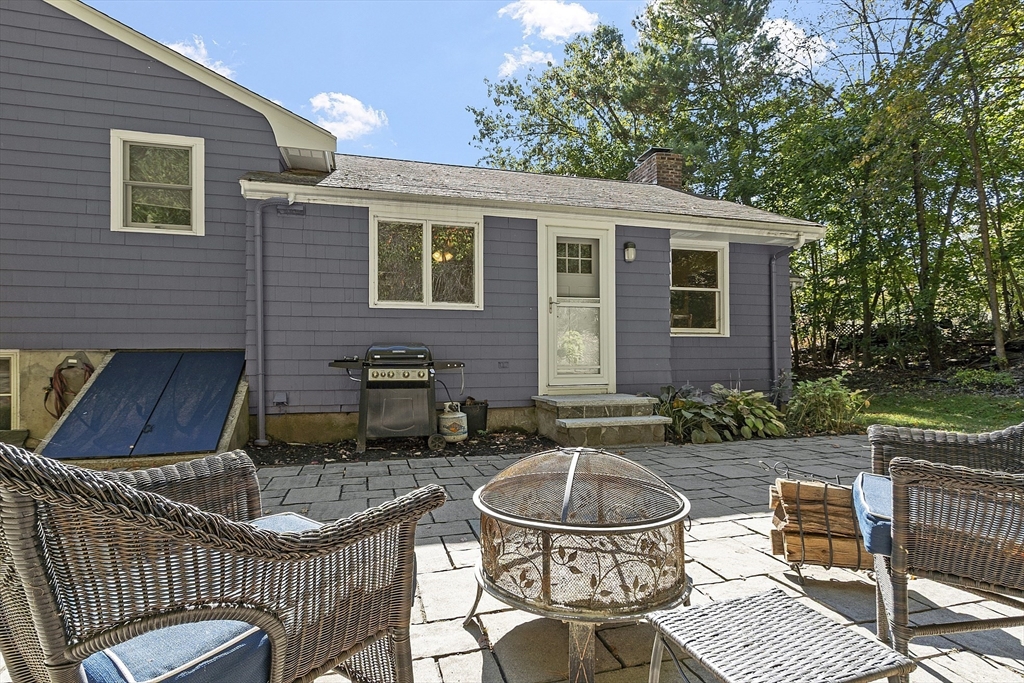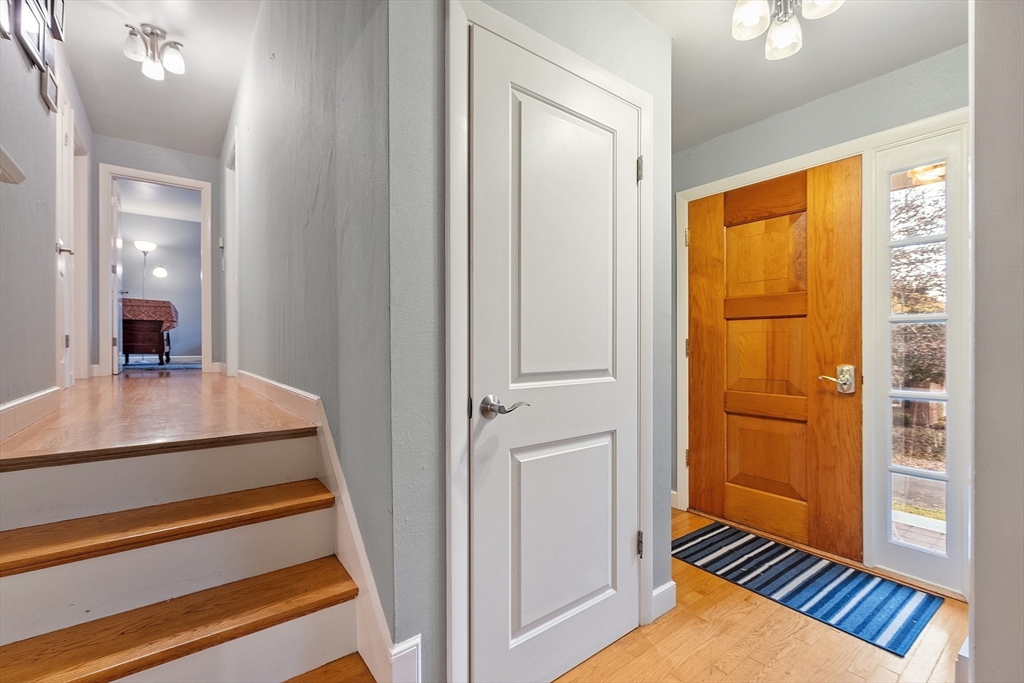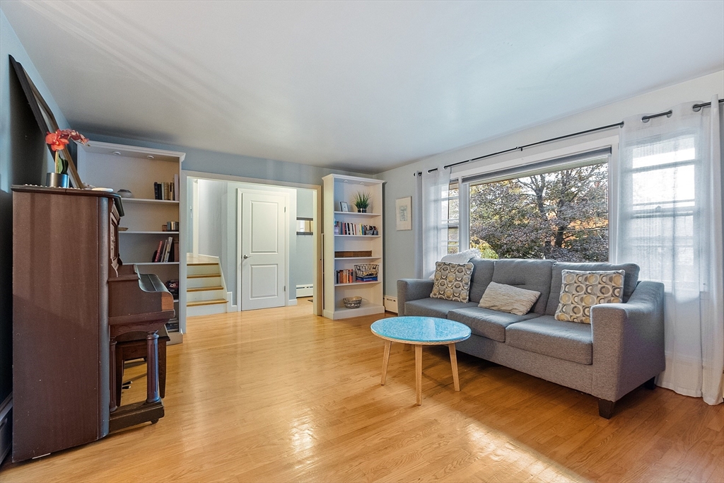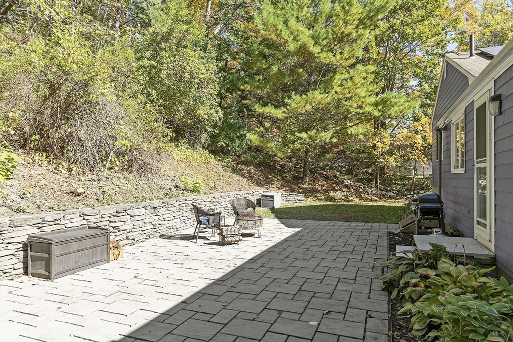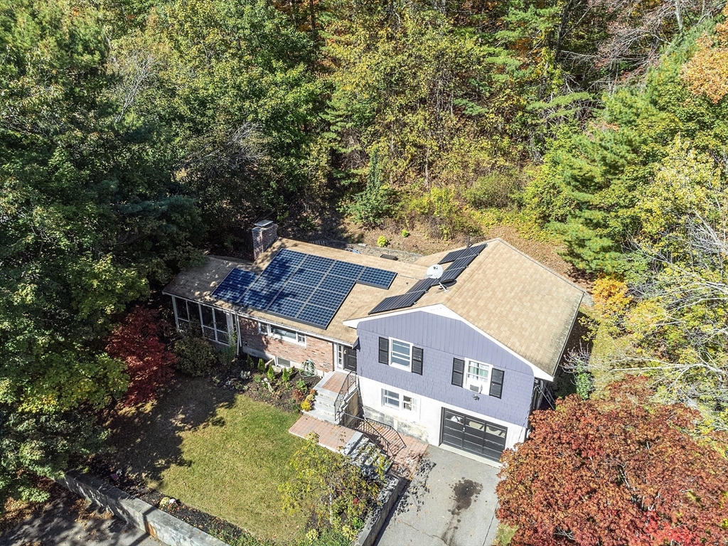 Classic, sun-filled multi-level home perched on a gentle rise with partial views of the Assabet River. Beautifully framed by a stone wall, granite steps, and a private rear yard with paver patio surrounded by trees. Inside, enjoy gleaming hardwood floors, a welcoming screened porch with ceiling fan, and a bright kitchen with direct access to the backyard—perfect for outdoor dining and entertaining. The upper level offers three spacious bedrooms and a large full bath. The lower level includes a comfortable media room, half bath, laundry, and interior garage access, while the lowest level provides generous storage and a bonus recreation area with pool table. Leased solar panels reduce energy costs and environmental impact. Ideally located just minutes from vibrant Maynard Village with shops, dining, and community events. Don’t miss this inviting home that combines comfort, convenience, and character.