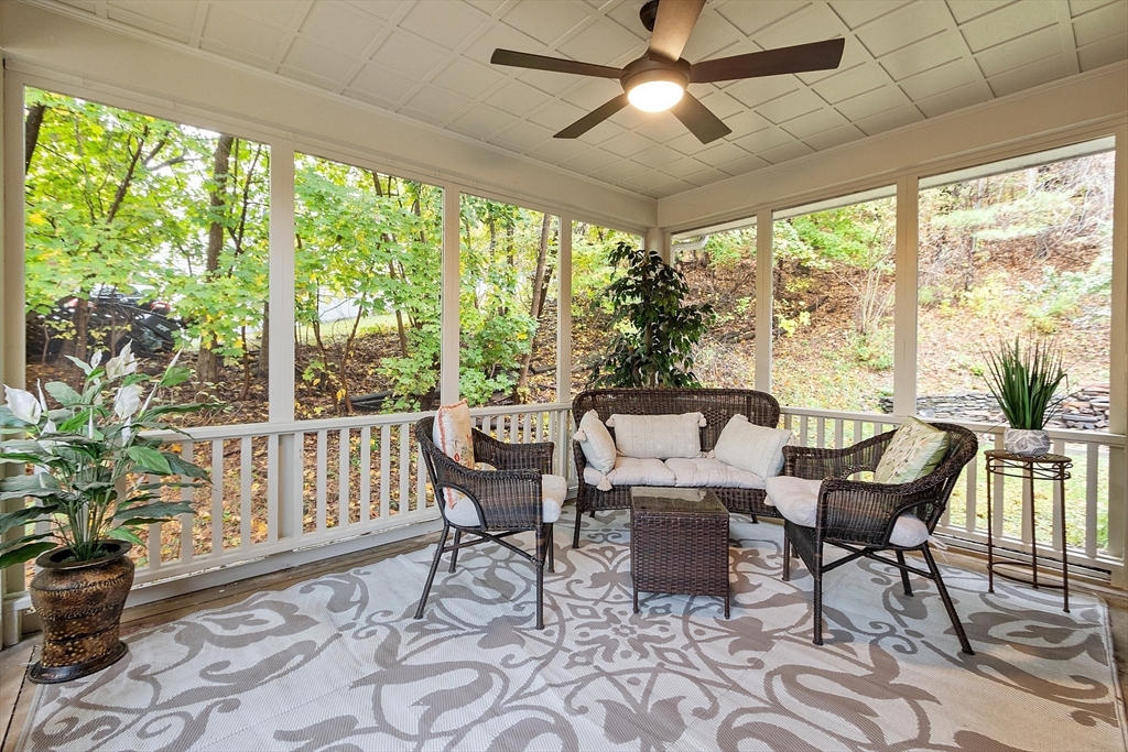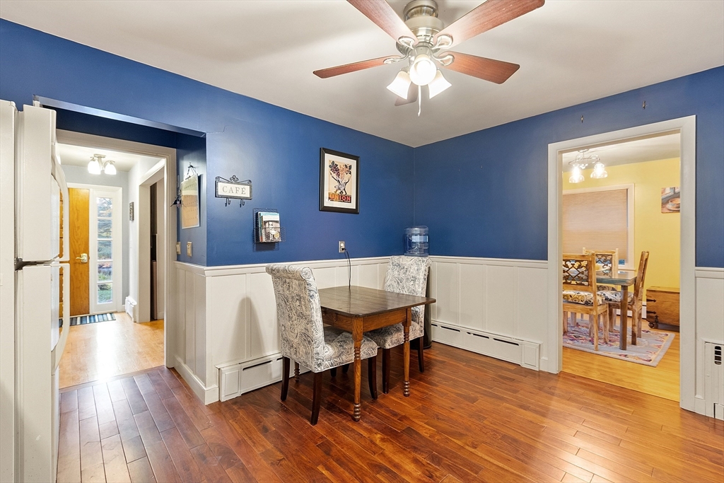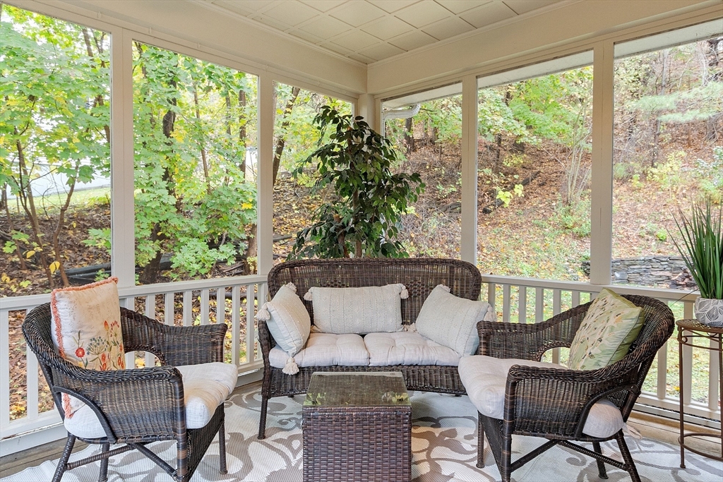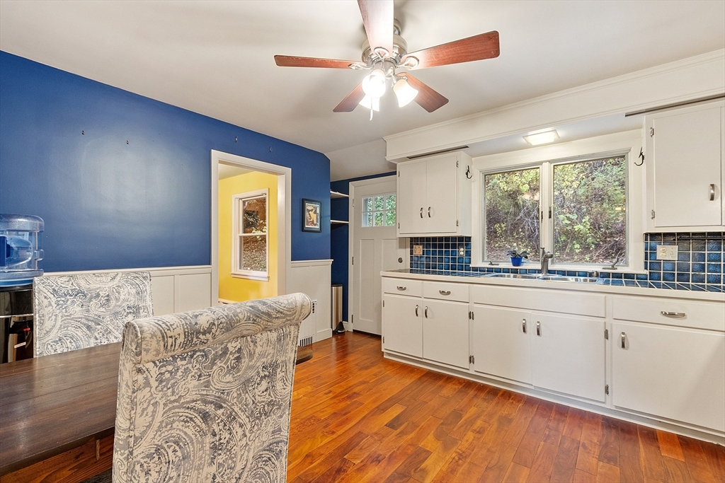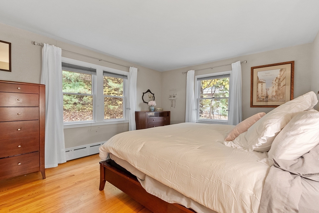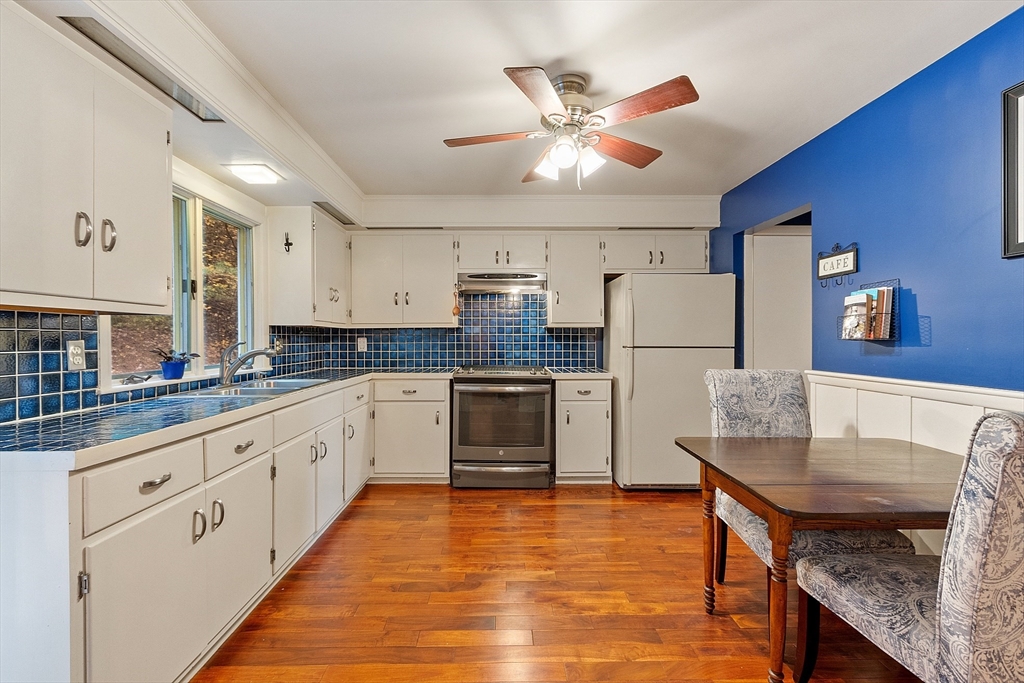 Classic, sun-filled multi-level home perched on a gentle rise with partial views of the Assabet River. Beautifully framed by a stone wall, granite steps, and a private rear yard with paver patio surrounded by trees. Inside, enjoy gleaming hardwood floors, a welcoming screened porch with ceiling fan, and a bright kitchen with direct access to the backyard—perfect for outdoor dining and entertaining. The upper level offers three spacious bedrooms and a large full bath. The lower level includes a comfortable media room, half bath, laundry, and interior garage access, while the lowest level provides generous storage and a bonus recreation area with pool table. Leased solar panels reduce energy costs and environmental impact. Ideally located just minutes from vibrant Maynard Village with shops, dining, and community events. Don’t miss this inviting home that combines comfort, convenience, and character.