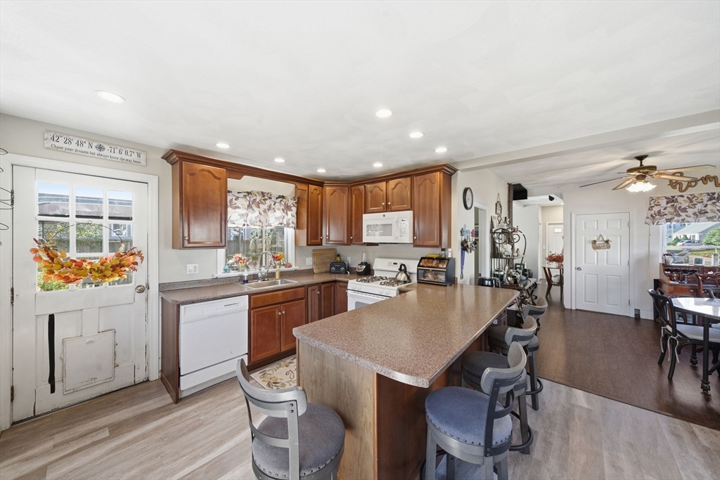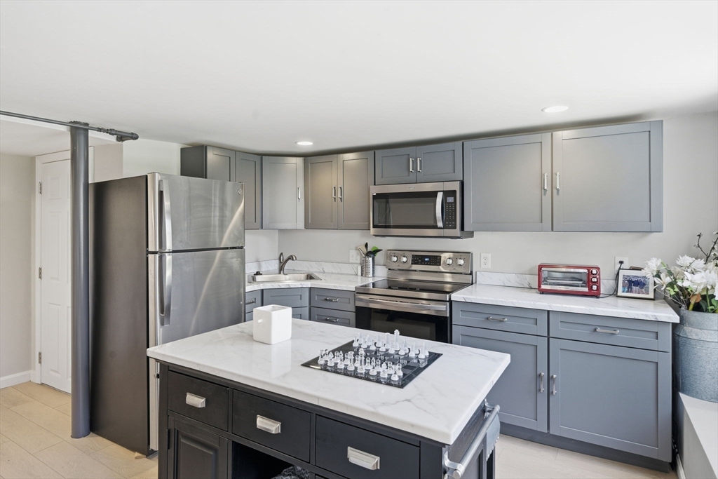 Experience comfortable, flexible living at 16 Pond St. The granite stairs lead you into this home that blends traditional charm with modern functionality -offering an updated sun splashed kitchen, four oversized bedrooms upstairs and a fully finished lower level with a full kitchen that can serve as a private in-law apartment or guest suite with direct outdoor private access. Entertain easily in the formal dining room or relax in the open family room space that is the perfect place to cuddle on cold nights in front of the cozy wood burning stove; the thoughtful floor plan creates separation when you need it and flow when you want it. Outside, enjoy a fenced in private yard for summer barbecues on the newer patio and plenty of room for gardening or play. The newer shed w/ electricity is an added bonus. Located close to schools, great restaurants, local amenities, and a commuters dream, this is a rare Stoneham opportunity.