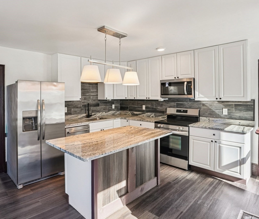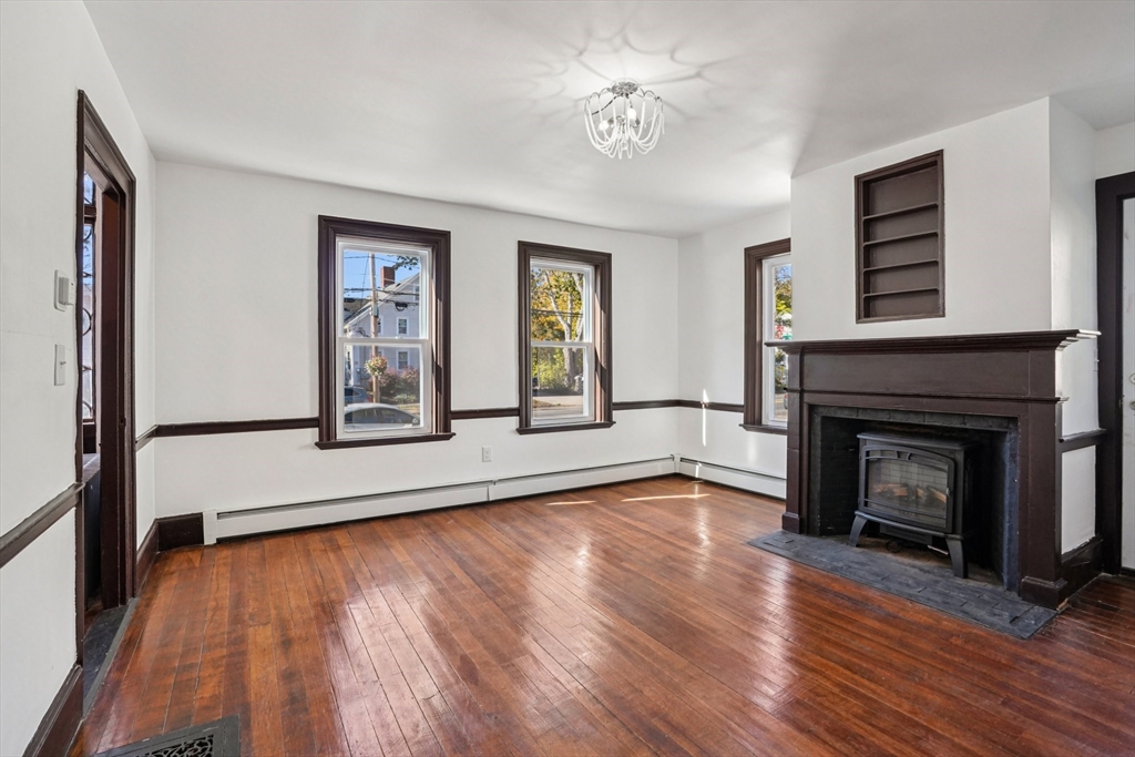 Do you love antique colonial style? If so, this condo is a perfect match for you! Originally built circa 1861, this sun drenched home has been renovated to preserve its authentic charm from early colonial times. Discover numerous nooks, crannies, and unique features throughout. The fully remodeled kitchen boasts a large island and decorative fireplace, while the spacious first-floor layout includes separate living areas and a large family room with an oversized decorative fireplace and expansive bow window. The second floor features a generously sized bedroom, bathroom, and office, with an ascent to the primary suite complete with a sitting room and en suite bathroom. Recent updates encompass brand new electric, plumbing, heating, windows, a Navian water heater, kitchen, bathrooms, and a first-floor laundry area. The roof is also newer, two parking spots. Located in a commuter's dream, a commuter bus to Boston, minutes to I-95, and walking distance to local amenities.
