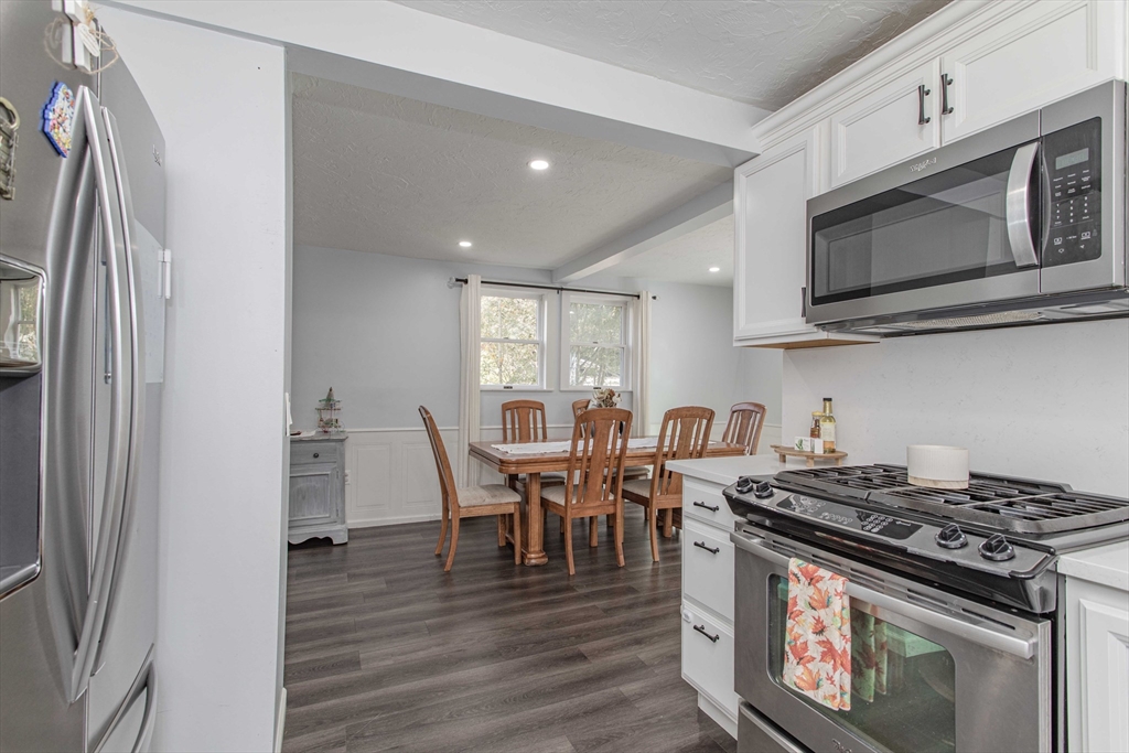 Lovingly maintained and thoughtfully updated, this charming Stoughton Colonial blends comfort, efficiency, and style. Since 2020, the owners have invested in major improvements—a new septic system (2021), New Front Section Vinyl Fencing, Gas heating and Central Air (2024), hot water tank (2021), and a new front porch and Trex deck perfect for summer evenings. New Sliding Door, The bright, modern kitchen features white shaker cabinets with soft-close drawers, quartz counters and backsplash, and stainless-steel appliances. New luxury vinyl plank flooring runs throughout the first floor, while the second level offers 2 comfortable bedrooms, a full bath, and a flexible layout easily converted back to 3 bedrooms. With a fenced backyard, storage shed, and energy-saving upgrades by Mass Save, this move-in ready home offers peace of mind and easy living—just minutes to the commuter rail, shopping, and restaurants. A wonderful opportunity at $469,900, Hurry at this price this will NOT last long