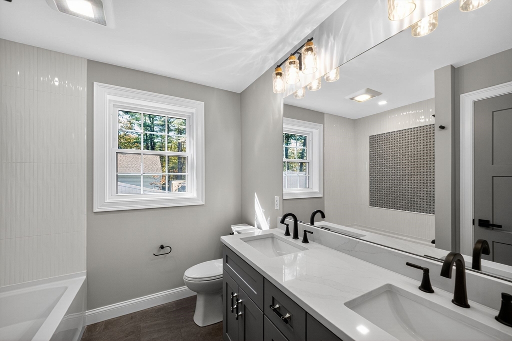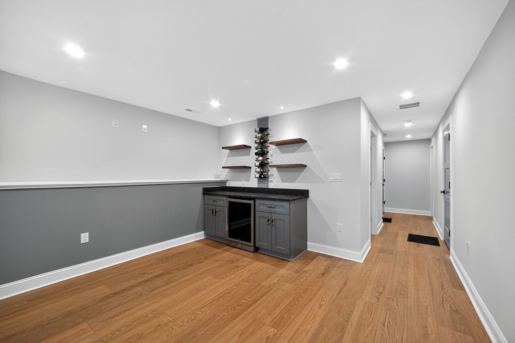 Beautifully constructed new home built by a well-known builder with impeccable craftsmanship featuring 3 bedrooms and 4 full baths. The stunning kitchen offers a center island, quartz countertops, stainless steel appliances, tile backsplash, and a pantry. The open floor plan is perfect for entertaining, complemented by a finished lower-level family room complete with a wine fridge, recessed lighting, and a full bath. The inviting mudroom includes built-in cubbies and a bench seat. The spacious primary suite boasts crown molding, a walk-in closet plus a second closet, ceiling fan, and a luxurious bath with a double vanity, quartz countertops, smart mirror, and tiled shower. Enjoy outdoor living with a composite deck and professionally landscaped yard situated on a desirable corner lot. Central A/C, 1 car garage, one year builders warranty included and much more! Celebrate the new year in style — in your brand-new home! Showings begin immediately!