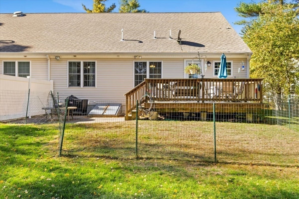 This private condo complex is off the beaten path but close to everything. Lovely farmer-style porch to greet you. With its large bright open floor plan and hardwood floors you will feel the comfort and warmth immediately. Nice sunny dining area with cathedral ceiling. Kitchen has a breakfast bar and outside access to your private deck. First floor primary bedroom with full bath and lots of light. Second bedroom and bath also add to this first floor. First floor laundry and entrance to the two-car garage. Upstairs boasts a loft styled room which can make a great office or another bedroom if needed. Walk in attic for tons of storage or finish it for even more room. Full large basement with tons of storage. All this on town sewer and water. Moments to saltwater beach just down the street. Great restaurants and shopping at your fingertips. This complex is highly desirable! The condominium offers a blend of practicality and comfort, ready to be personalized and enjoyed. Come fall in love!