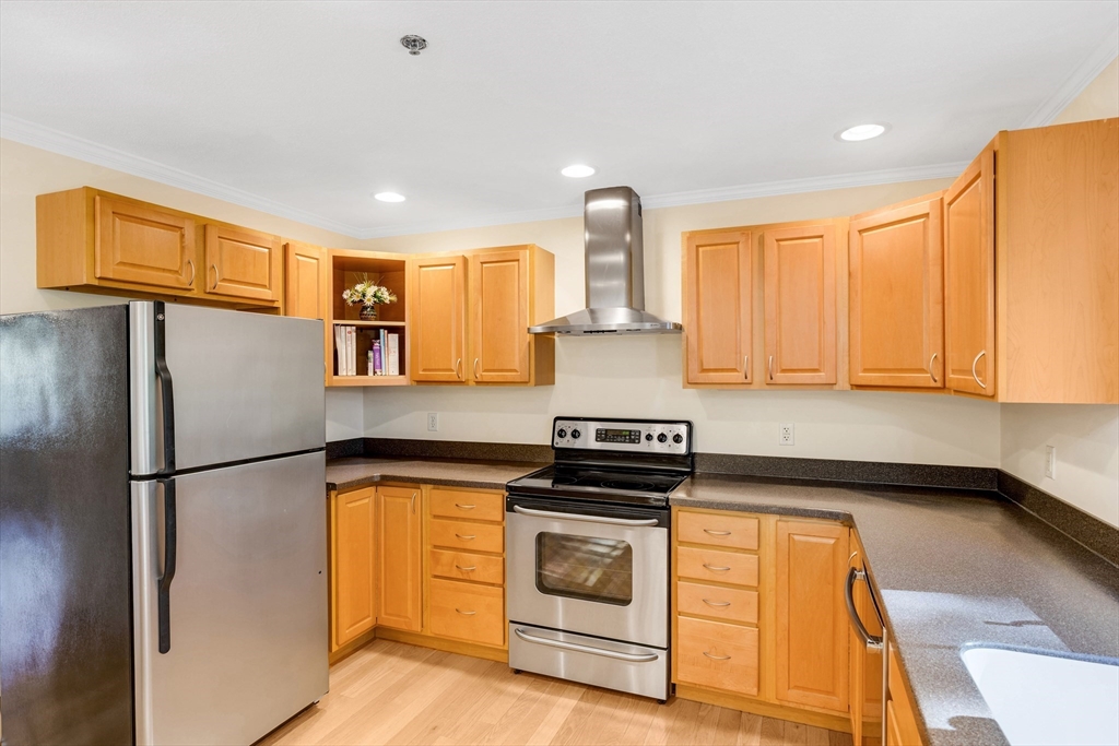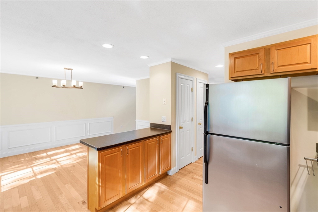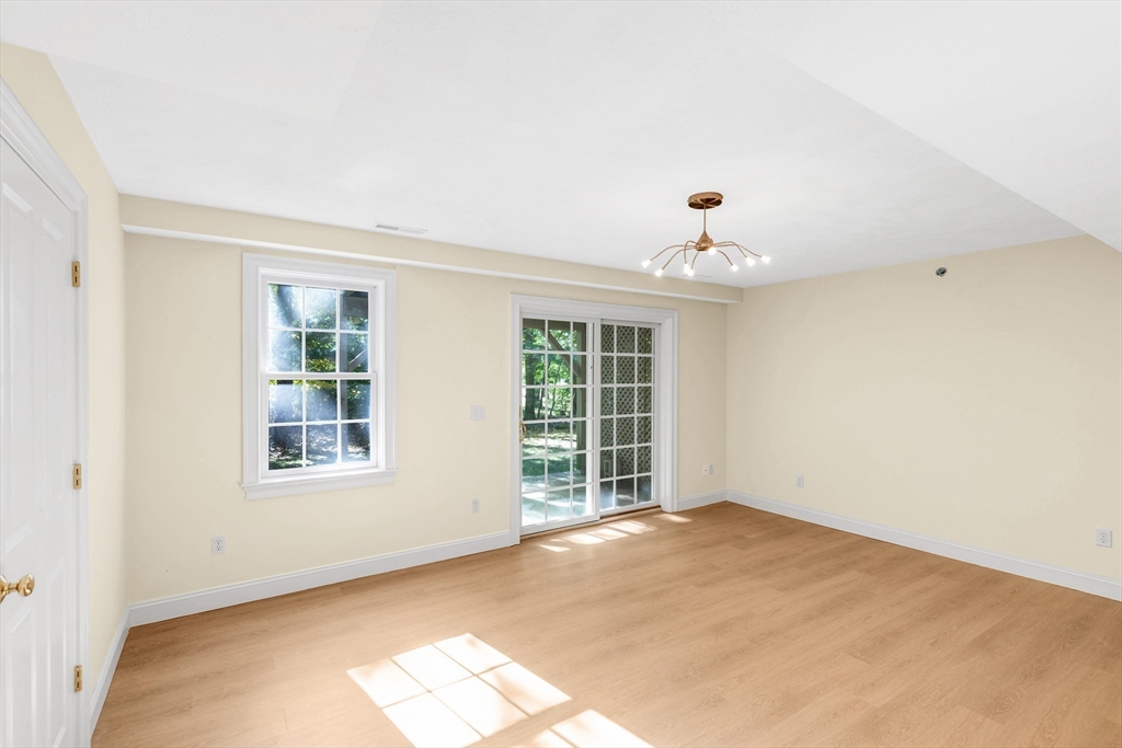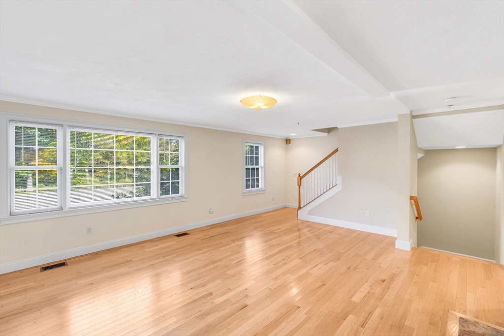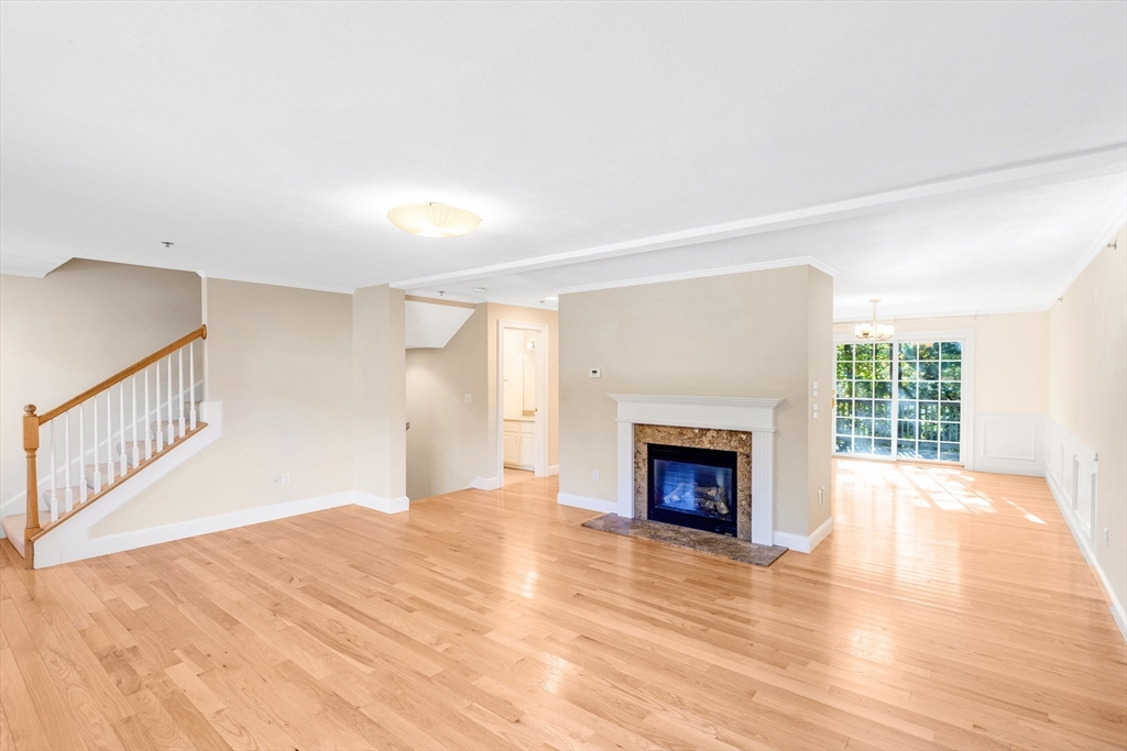 Offering an exceptional living experience within an attractive property. Flexibility is at the heart of this condominium. First floor family room can be used as an in law or teen suite. Open concept living room, dining room & kitchen highlighted by a breakfast bar & fireplace, invites relaxation & creates a warm & inviting atmosphere. The kitchen is equipped with solid countertops, stainless appliances & a wall range hood, which will be sure to impress. The kitchen peninsula & kitchen bar offer additional seating & prep space. There are two bedroom & an additional room. One full bathroom, along w/ two half bathrooms, garage, patio, deck and onsite laundry. Natural gas heat & central air all in a gorgeous setting all on well over 2000 sq. ft of living space. Walk to downtown & common while less than 2 miles to the commuter rail stop. Showings begin at Open House on Friday, Oct. 24th from 4:30-6:00pm. Private showings on Saturday & Open House on Sun Oct. 26th 11-12:30pm. Come See!