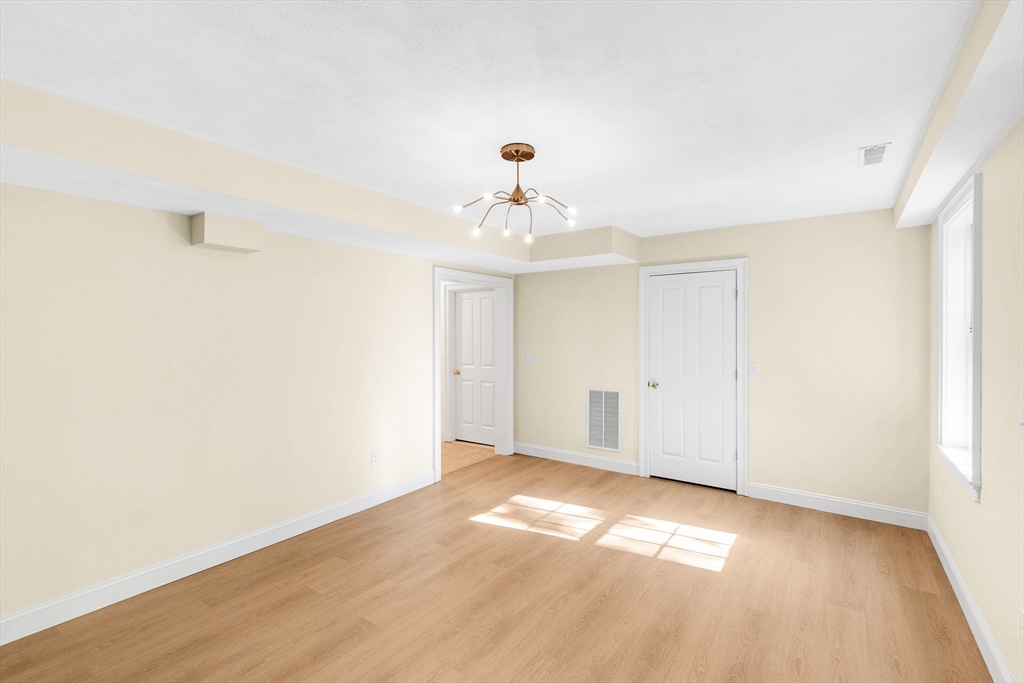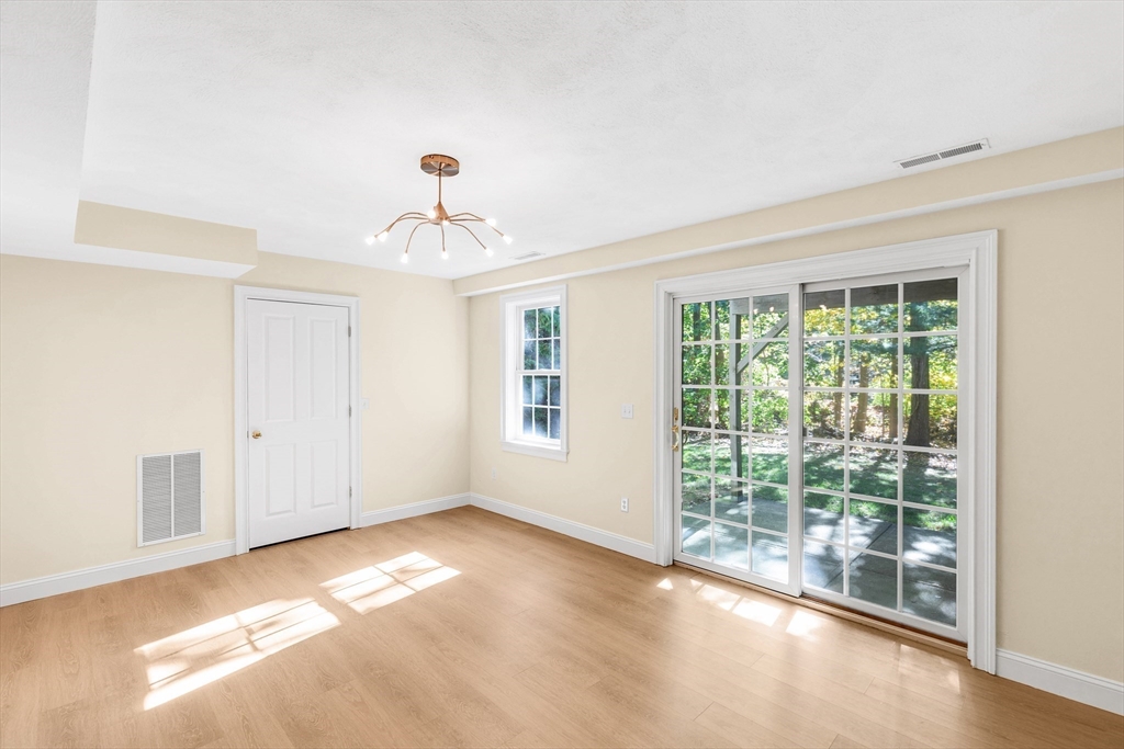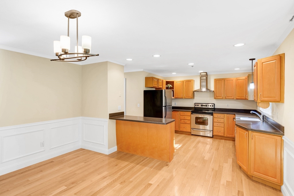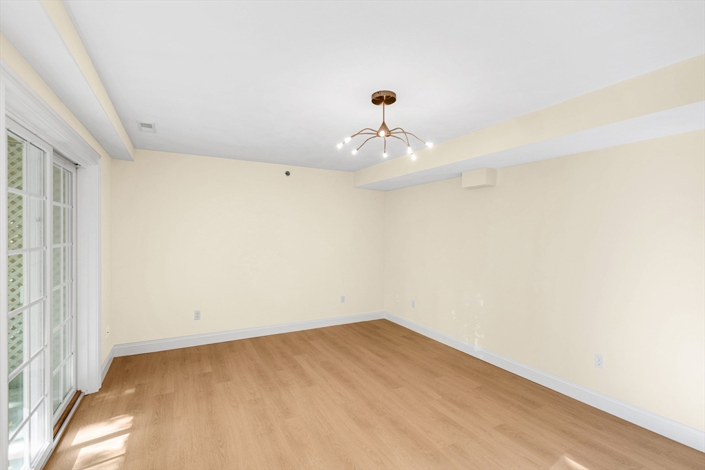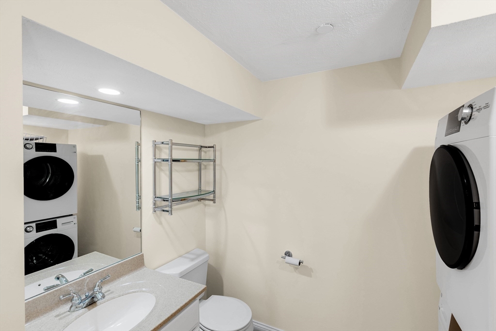 Offering an exceptional living experience within an attractive property. Flexibility is at the heart of this condominium. First floor family room can be used as an in law or teen suite. Open concept living room, dining room & kitchen highlighted by a breakfast bar & fireplace, invites relaxation & creates a warm & inviting atmosphere. The kitchen is equipped with solid countertops, stainless appliances & a wall range hood, which will be sure to impress. The kitchen peninsula & kitchen bar offer additional seating & prep space. There are two bedroom & an additional room. One full bathroom, along w/ two half bathrooms, garage, patio, deck and onsite laundry. Natural gas heat & central air all in a gorgeous setting all on well over 2000 sq. ft of living space. Walk to downtown & common while less than 2 miles to the commuter rail stop. Showings begin at Open House on Friday, Oct. 24th from 4:30-6:00pm. Private showings on Saturday & Open House on Sun Oct. 26th 11-12:30pm. Come See!