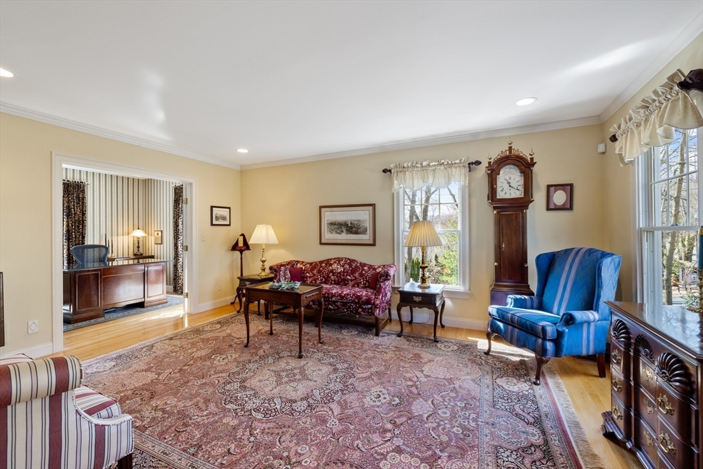 Beautiful 4-bedroom Colonial built in 1999 on a quiet Lexington street. A bright foyer opens to an expansive living room, perfect for gatherings. The dining room, behind the kitchen, is large enough for a Thanksgiving feast for 12. The kitchen has granite countertops, stainless steel appliances, and a U-shaped layout with room for a table, then transitions into the family room with a wood-burning fireplace—the heart of the home. Enjoy spring, summer, and fall evenings on the 3-season porch that flanks the back of the home. There is also a great office behind the living room. Upstairs, the spacious primary suite offers a walk-in closet and private bath, plus three additional bedrooms and a full bath. The lower level adds flexible space for a playroom, gym, or office. Central air, two-car garage, large shed, and easy access to Lexington’s top-rated schools, conservation areas, and commuter routes make this home a true find. Roof & Exterior Painting (2023), New Appliances (2022).
