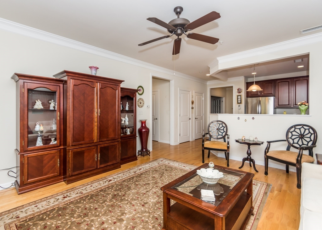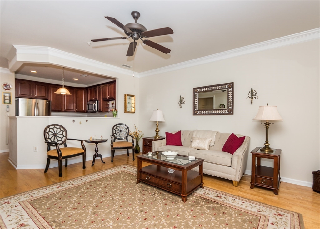 HIGHLY DESIRABLE WELLINGTON CROSSING LOCALE! LOCATION, LOCATION! Easy living in this immaculate pet friendly condominium featuring a beautiful kitchen w/stone tops and stainless appliances, spacious living room w/slider to relaxing rear balcony with views, large primary bedroom w/walk-in-closet, bonus den (could be used as second bedroom) w/french doors, hardwood flooring, handy laundry room w/ample storage, natural gas heating, central air, parking, club house, in-ground pool, tennis courts and much more! Walk to newer city parks, shops and public transportation! Quick access to Rte 128, Rte 2, Mass Pike and Storrow Drive! A real find!