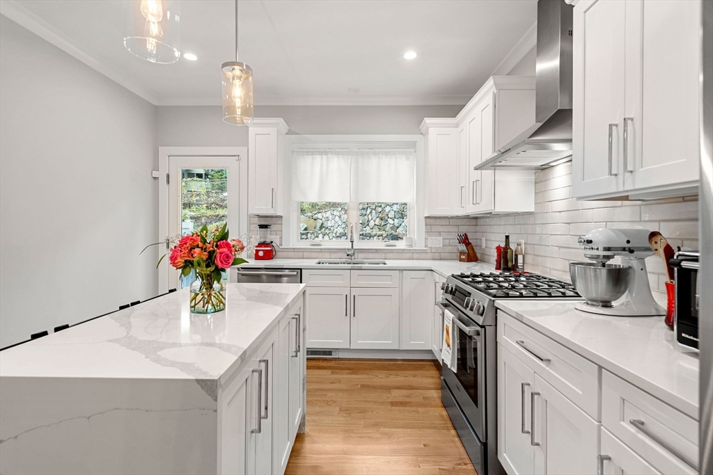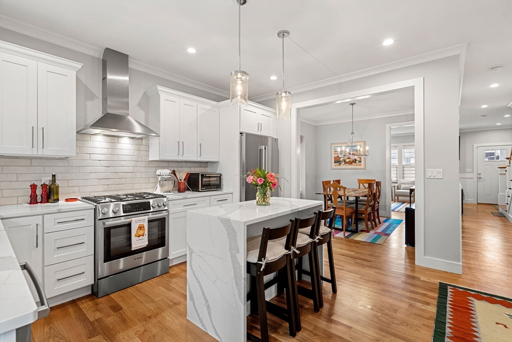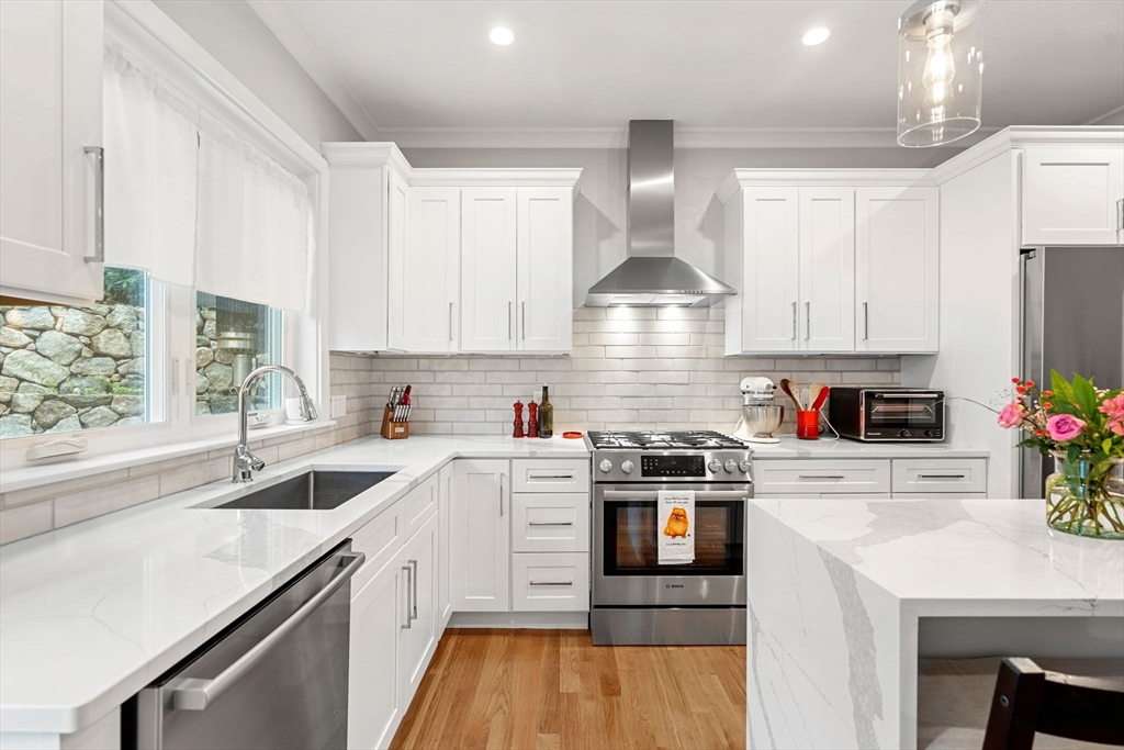Luxury 2023 construction townhome in the heart of Oak Square, offering the perfect blend of sophistication, function, and convenience. Enjoy a premier location just blocks from shops, restaurants, and parks, with easy access to downtown Boston, Cambridge, Newton, and Watertown. Step inside through your private entrance to a bright main level featuring a spacious living room with a gas fireplace, a dining area ideal for entertaining, and a designer kitchen with custom cabinetry, quartz counters, under-cabinet lighting, high-end stainless appliances, and both an island and breakfast bar. A powder room and access to the private patio and yard complete this level. Upstairs, the primary suite offers a walk-in closet and en-suite bath, plus two additional bedrooms, a full bath, and laundry. The top floor adds a fourth bedroom, family room, and a bonus room currently used for crafting. A mudroom, abundant closets and direct-entry two-car tandem garage complete this energy-efficient home.