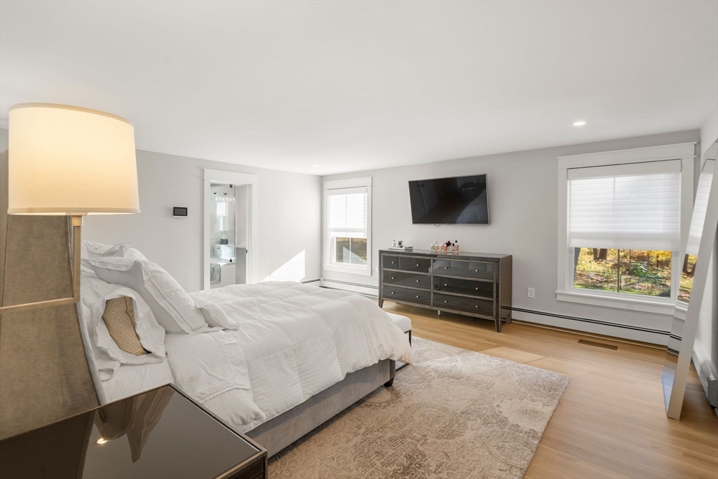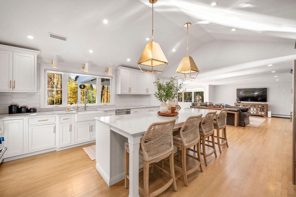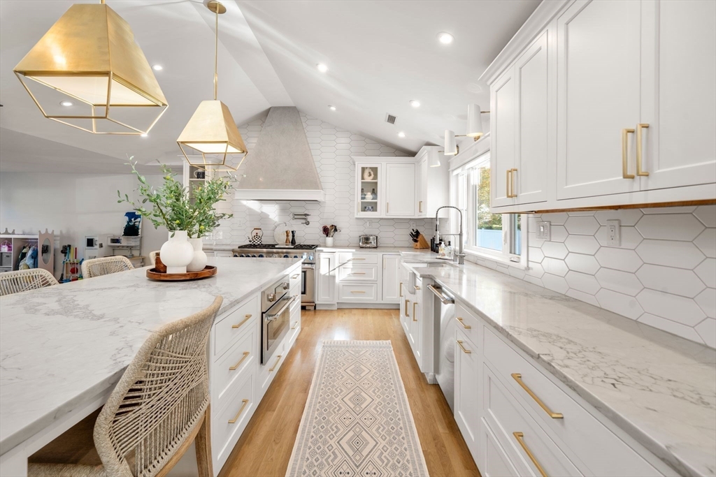 Nestled in the coveted Apple Hill Neighborhood, this contemporary ranch-style home offers the perfect blend of comfort & modern design. Completely updated w/ an open-concept layout, the heart of the home is a chef’s dream kitchen featuring an oversized island w/ quartz countertops, Sub-Zero fridge, Thermador 6-burner gas range w/ double oven & custom Venetian plaster vent hood. The adjacent wet bar, complete w/ beverage & wine fridges, flows seamlessly into the living rm & dining area, ideal for entertaining. Additional highlights include a mudroom, laundry rm & 1/2 bath for everyday convenience. The primary ensuite boasts a glass steam shower & walk-in closet, while 2 additional bedrms & a stylish guest bath w/ double vanity & tile shower/bath combo complete the main level. Upstairs, you’ll find 2 more bedrooms offering flexible space for guests or office. Head outside to find a spacious deck & beautifully landscaped yard w/ inground gunite salt water pool ideal for entertaining!