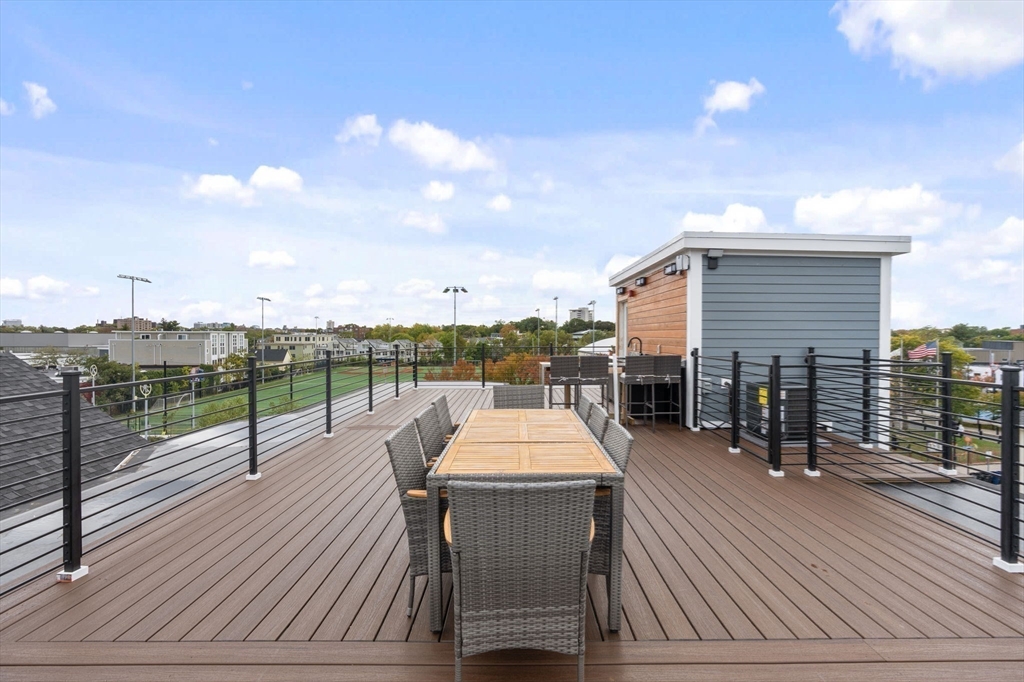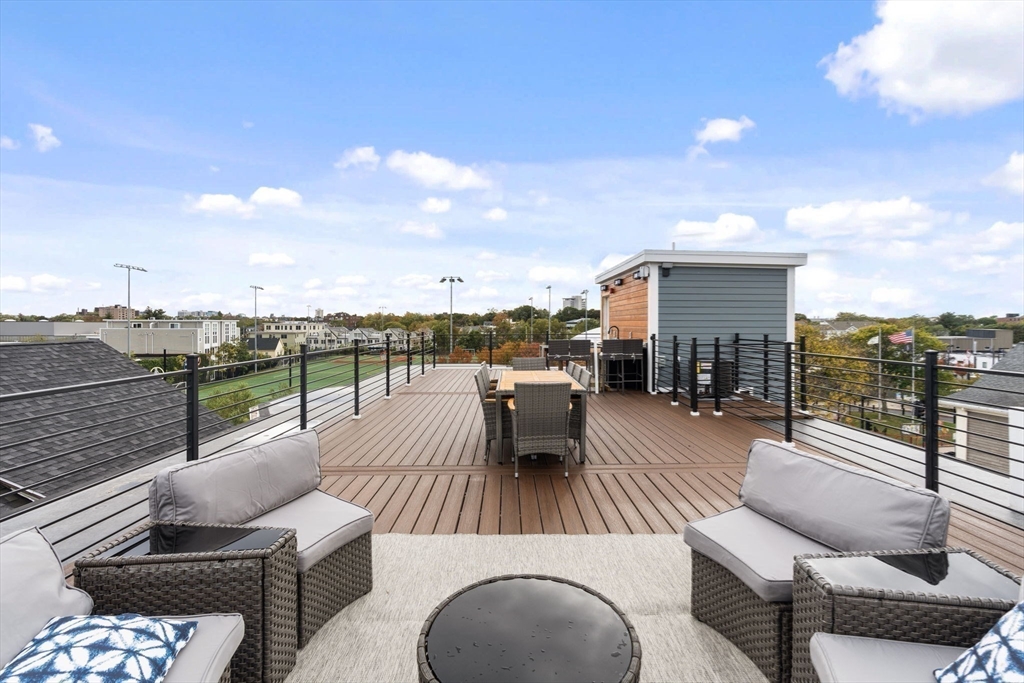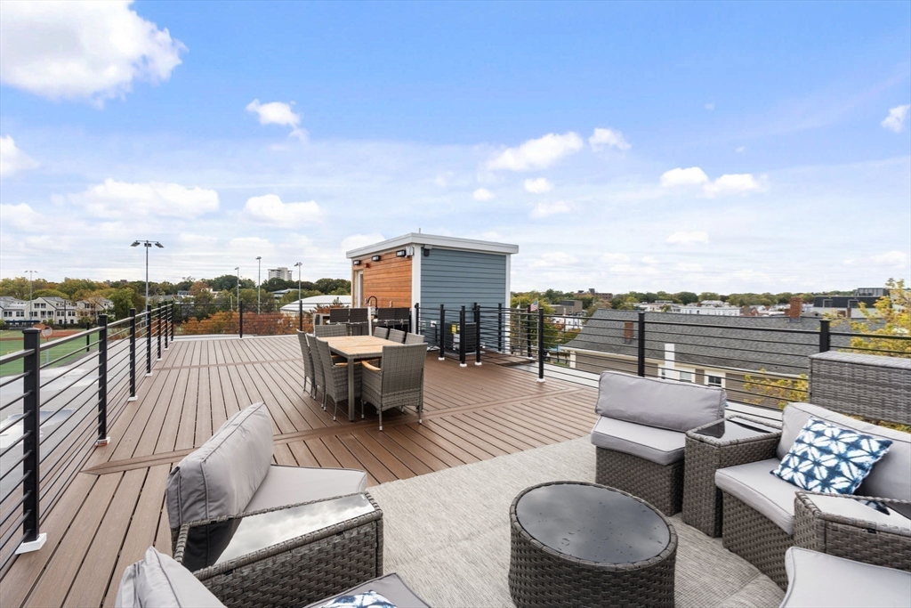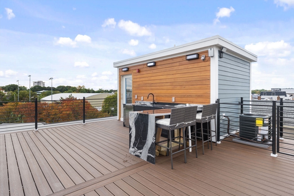 NEW CONSTRUCTION PENTHOUSE with Soaring 10+ ft ceilings, Chefs kitchen with a massive, double thick waterfall, granite island. Luxury Thermador Appliances: 36” Range and Oven, Hood, Pot Filler. Open Concept Living, Perfect for entertaining, built in speakers. A must see enormous roof deck with views of the Boston Skyline and wet bar with outdoor kitchen cabinets, mini fridge, Granite Counters and Bar Seating. Possibly the biggest roof deck in Somerville that overlooks Conway Park. 2 Valet Garage Parking Spaces. Smart Home control features. Extra Large Primary Suite with Walk in Closet, Giant Shower, His/ Hers Sinks. Positioned perfectly in the middle of Union Square, Porter Square and Harvard University, this is the most conveniently located home in Somerville! Short walk to Restaurants, Shopping, Greentown Labs, amenities galore. The best “yard” in town sits across the street; Soccer and baseball fields, Basketball and Tennis Courts, Hockey/ Ice Skating Rink, Playground and Splashpad