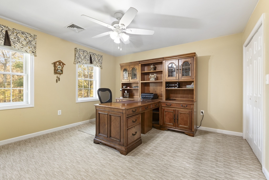 Expansive colonial w/3800 s.f. ABOVE grade w/3.5 baths will meet all of your needs; sophisticated design & exceptional craftsmanship combine to offer a beautiful home. Highlights include custom cabinets, crown molding & large windows which allow for sun filled rooms throughout. Entertainment sized kitchen is cabinet packed w/ breakfast rm. Family rm. has wood stove & is open to living rm. Formal dining rm., foyer & mudroom complete 1st floor. On the 2nd floor, you'll find a dedicated guest suite w/ bath which could be an in-law set up. Primary suite has walk-in closet, spa like bath & balcony deck over looking private, fenced backyard. 2 additional bedrms complete 2nd floor. Landscaping is second to none & includes irrigation system. Relax year round in the hot tub that stays. You'll love the workshop space in the heated garage. Generator hook up. Walk-out lower level/full sized windows for expansion. Lovely location close to state forest trails, golf, shopping, & commuter routes.
