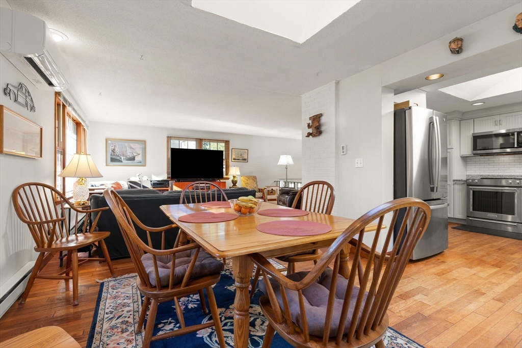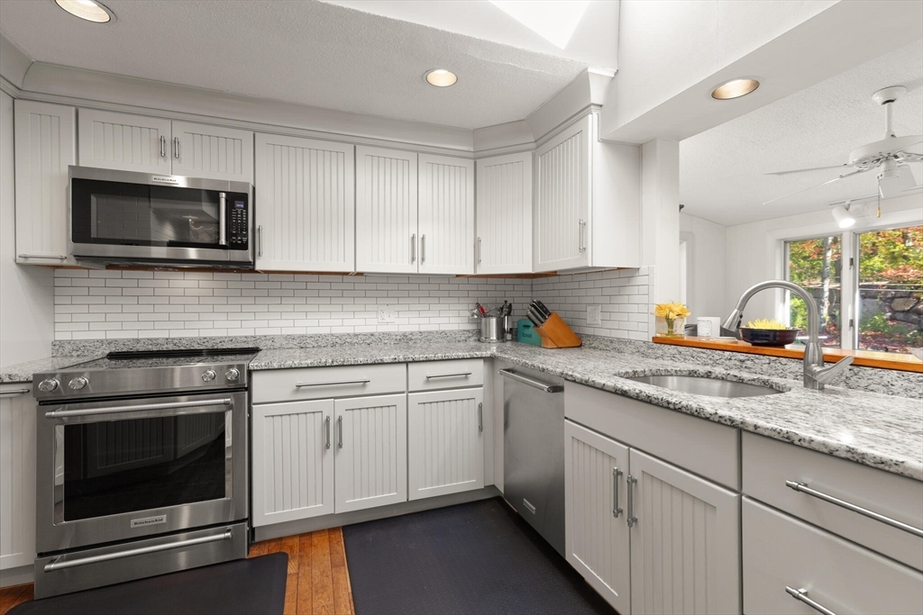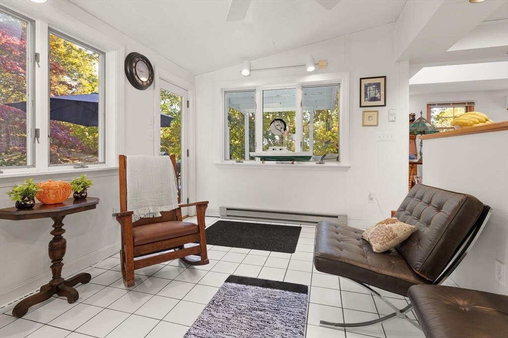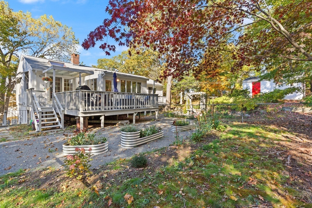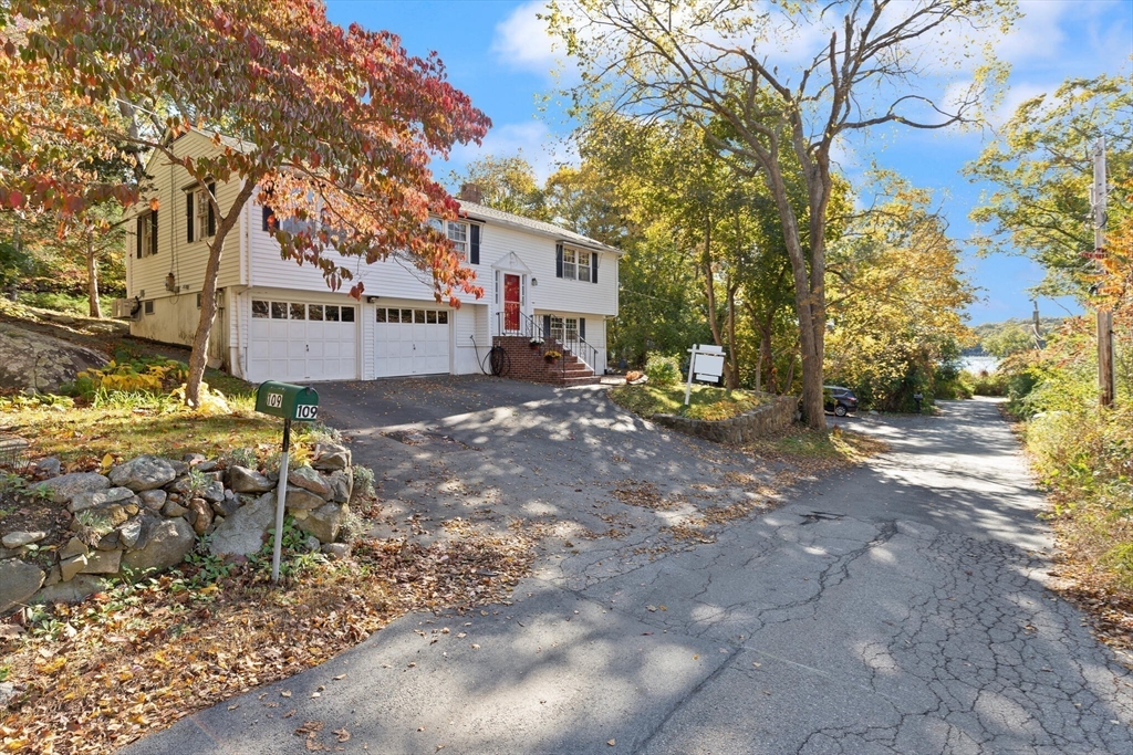 Annisquam River views and deeded rights to river via nearby assn. path! Comfortable living in this 8 Rm 3 BR 2 BA Raised Ranch. Attached oversized 2 car gar provides secure pkg and extra storage. Welcoming ambiance in LR enhanced by the warmth of a fireplace, picture window views to river and lovely sunsets, and HW floors! Culinary dreams can be made in the beautiful updated Kraftmaid cabinet kitchen w/ granite counters and ss appliances along with custom features. Sunny DR with skylight and French doors leads to large rear deck! Cheery sunroom to relax in could also serve as breakfast area or den. Primary BR has ensuite bath and door leading to private rear deck to sit out and enjoy nature. New renovated bath w/walk in shower and 2 more BR's complete the first fl. Lower level is walkout and has a FR, direct access to garage, and utility/laundry/workshop/storage room. Fenced garden and yard in rear along with shed. New ductless mini splits 2024 for heat/ac. Ample 6 car paved parking!