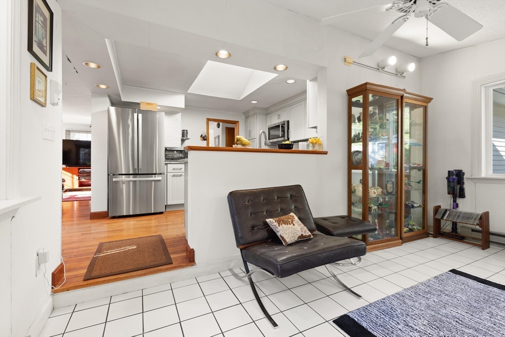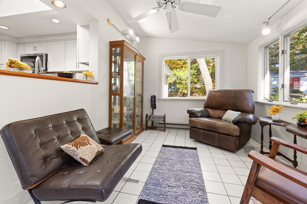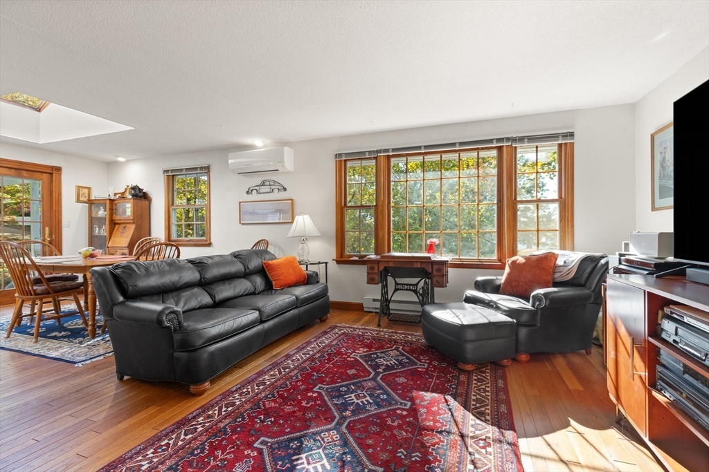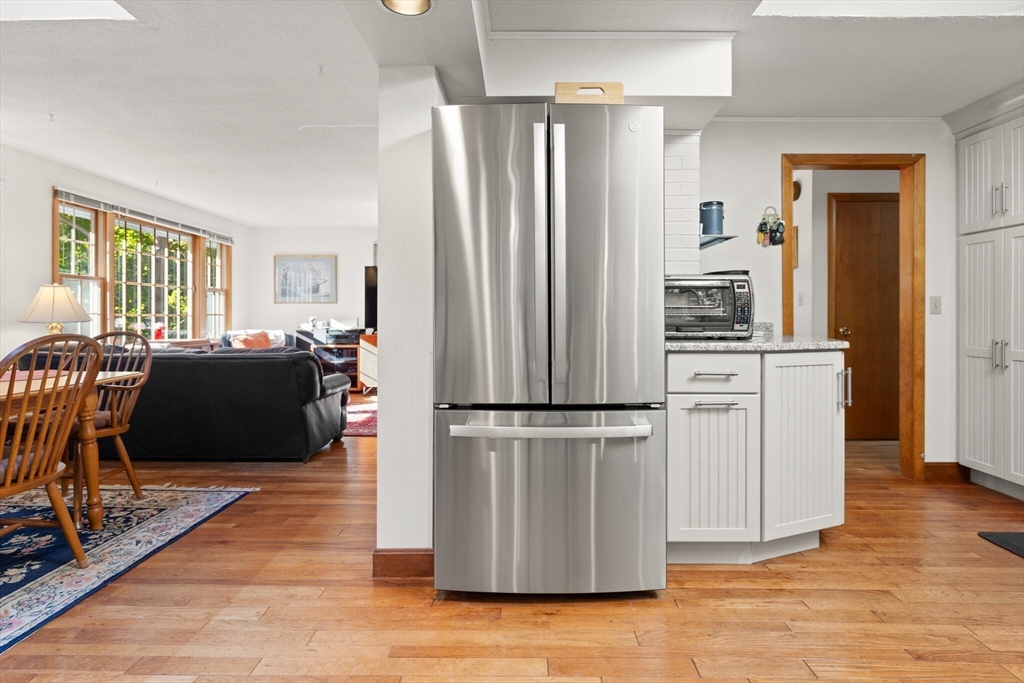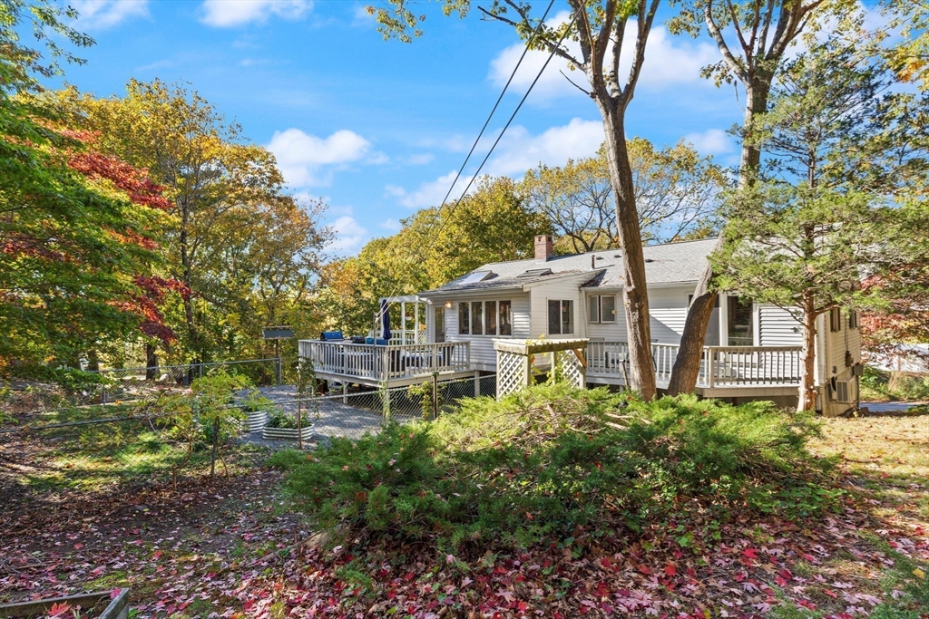 Annisquam River views and deeded rights to river via nearby assn. path! Comfortable living in this 8 Rm 3 BR 2 BA Raised Ranch. Attached oversized 2 car gar provides secure pkg and extra storage. Welcoming ambiance in LR enhanced by the warmth of a fireplace, picture window views to river and lovely sunsets, and HW floors! Culinary dreams can be made in the beautiful updated Kraftmaid cabinet kitchen w/ granite counters and ss appliances along with custom features. Sunny DR with skylight and French doors leads to large rear deck! Cheery sunroom to relax in could also serve as breakfast area or den. Primary BR has ensuite bath and door leading to private rear deck to sit out and enjoy nature. New renovated bath w/walk in shower and 2 more BR's complete the first fl. Lower level is walkout and has a FR, direct access to garage, and utility/laundry/workshop/storage room. Fenced garden and yard in rear along with shed. New ductless mini splits 2024 for heat/ac. Ample 6 car paved parking!