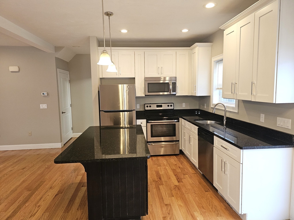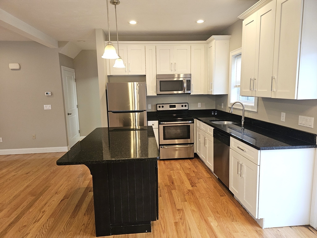 Welcome to 483 Central St. Unit A, Saugus—a beautifully maintained 4-bedroom, 2.5-bath townhouse built in 2015, featuring hardwood floors throughout, central heat and air conditioning, granite countertops, and ceramic tile bathrooms. This spacious home offers large bedrooms, generous closet space, a walk-up attic for additional storage, and three basement storage units. The kitchen is fully equipped with a refrigerator, stove, microwave, and dishwasher, and the in-unit laundry is conveniently located on the second floor. With two designated parking spots and two guest parking spots, low condo fees, and a prime location near Route 1 and a bus stop, this home offers the perfect blend of comfort, space, and convenience. This a townhouse with only 2 units and low monthly fees, new conversion