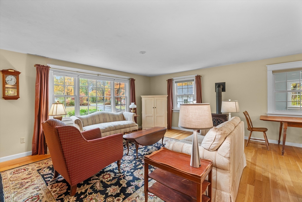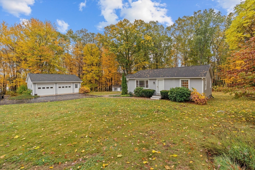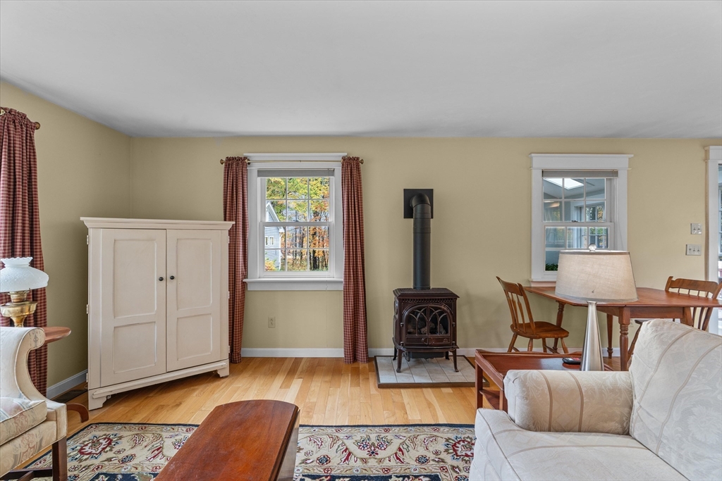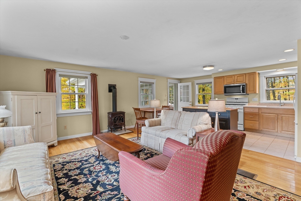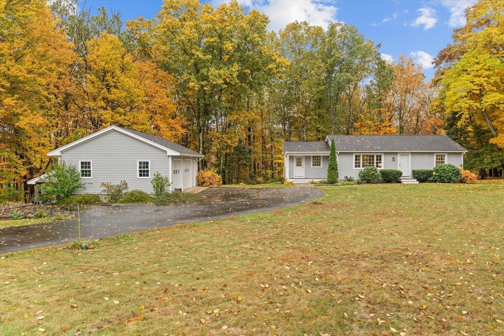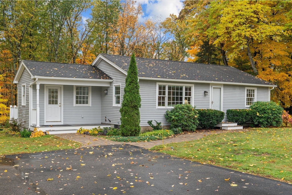 Nestled near Mt. Pisgah and surrounded by beautiful conservation land, this thoughtfully renovated & meticulously maintained full-basement ranch is perfect for nature lovers! Filled with natural light from its numerous windows, this home features an inviting open layout that seamlessly connects the kitchen, dining, and living areas. A fabulous sunroom overlooks the amazing private level yard & composite deck. Hardwood floors in the main living area and bedrooms. Gas Fireplace. Expanded two-car garage added in 2016 with electricity & covered storage in the back, has potential for heat. Young furnace, new oil tank, & hot water heater, & so much more-see updates list- Full, clean, unfinished basement offers wonderful potential for future expansion. Set back from the street with direct access to nearby walking trails, and surrounded by horse farms yet only 3 miles to 495 and the Hudson Commons, which has everything you need- this is truly a special property!