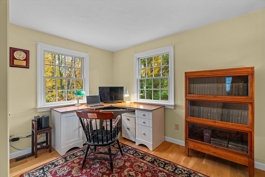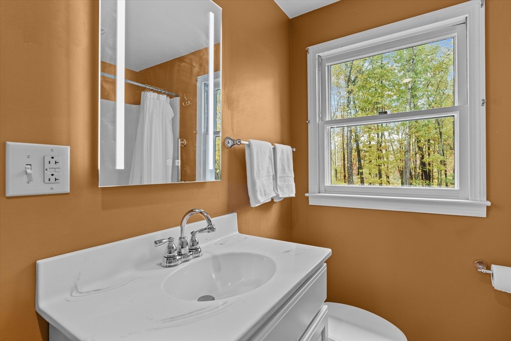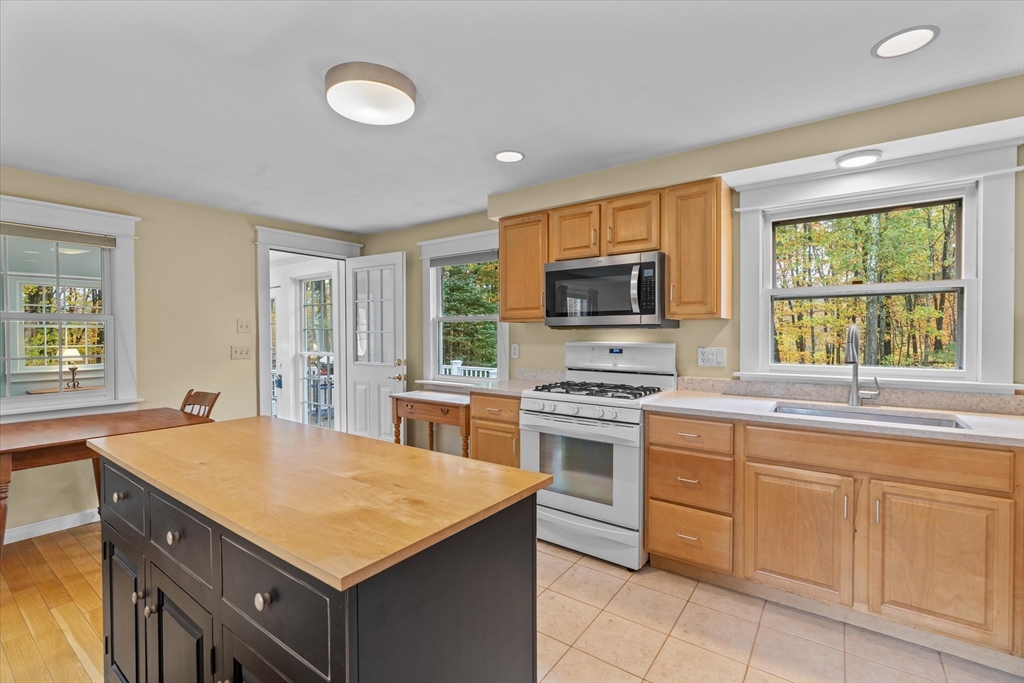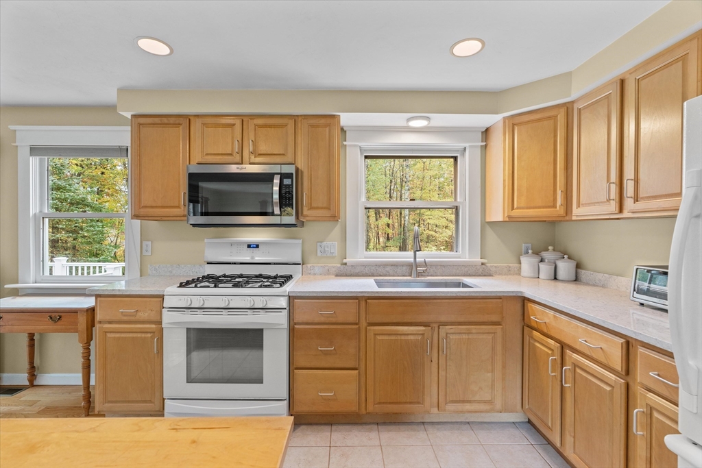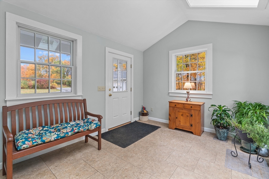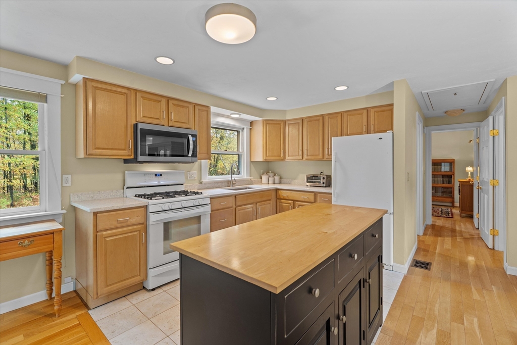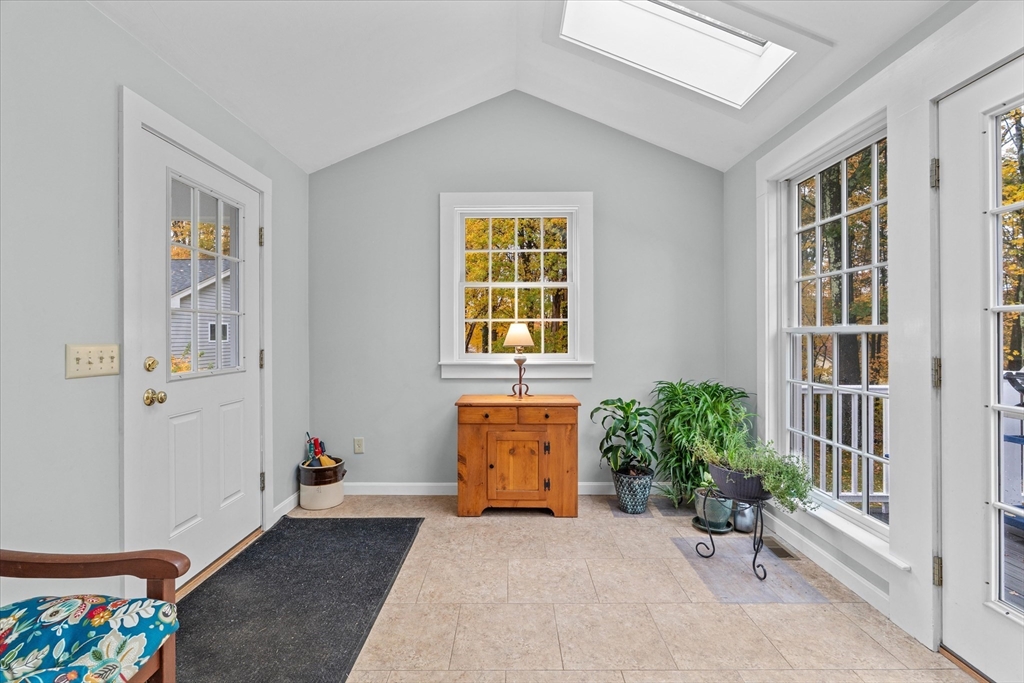 Nestled near Mt. Pisgah and surrounded by beautiful conservation land, this thoughtfully renovated & meticulously maintained full-basement ranch is perfect for nature lovers! Filled with natural light from its numerous windows, this home features an inviting open layout that seamlessly connects the kitchen, dining, and living areas. A fabulous sunroom overlooks the amazing private level yard & composite deck. Hardwood floors in the main living area and bedrooms. Gas Fireplace. Expanded two-car garage added in 2016 with electricity & covered storage in the back, has potential for heat. Young furnace, new oil tank, & hot water heater, & so much more-see updates list- Full, clean, unfinished basement offers wonderful potential for future expansion. Set back from the street with direct access to nearby walking trails, and surrounded by horse farms yet only 3 miles to 495 and the Hudson Commons, which has everything you need- this is truly a special property!