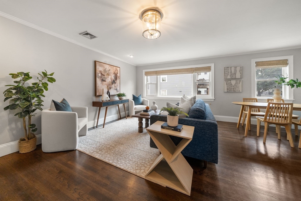 This fully renovated three-story residence offers the perfect blend of city convenience and modern comfort. It features 3 bedrooms, 2 full bathrooms, and 2 private outdoor spaces. The main living level boasts an open-concept layout flooded with natural light, connecting the kitchen, dining, and living areas. The chef’s kitchen includes stainless steel appliances, quartz countertops, and a Carrara marble herringbone backsplash. The top floor is dedicated to a primary suite, complete with a walk-in closet, full bathroom, and private roof deck offering city views. The second level includes 2 spacious bedrooms, a full bathroom, and a cozy nook ideal for a home office/reading area. Located just 2 blocks from the highly anticipated Washington Village development, this home offers both comfort and investment potential in one of Southie's most desirable neighborhoods.