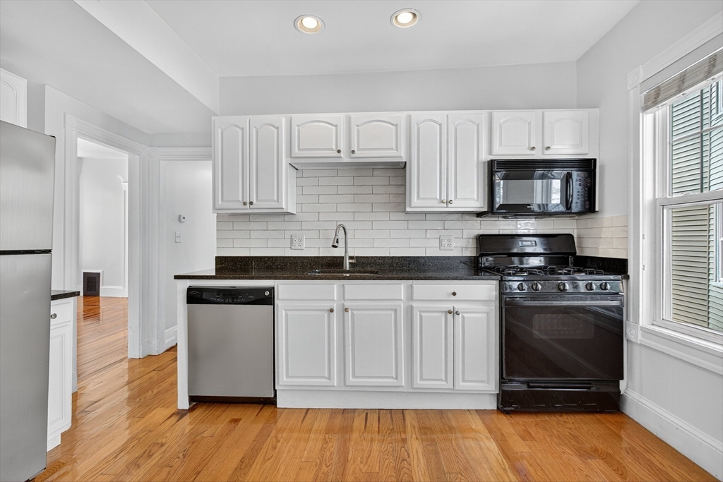 Welcome Home to Pope’s Hill! Don’t miss the opportunity to own a beautifully updated two bedroom condominium with off-street parking and two private outdoor spaces in one of Dorchester’s most desirable neighborhoods! Step into a sun-drenched front-facing living room that flows seamlessly into a bright and airy dining room! The fully applianced eat-in kitchen boasts granite countertops, stainless steel appliances, plenty of cabinet space and a pantry! Tiled bathroom with jacuzzi tub and two generous bedrooms located at opposite ends! Enjoy the comfort of central A/C, in-unit laundry, and newly refinished hardwood floors throughout. Relax outdoors on your newly built front and rear decks! Charming period details blend effortlessly with modern updates in this move-in ready home. One deeded off-street parking space and additional private storage complete this rare offering!
