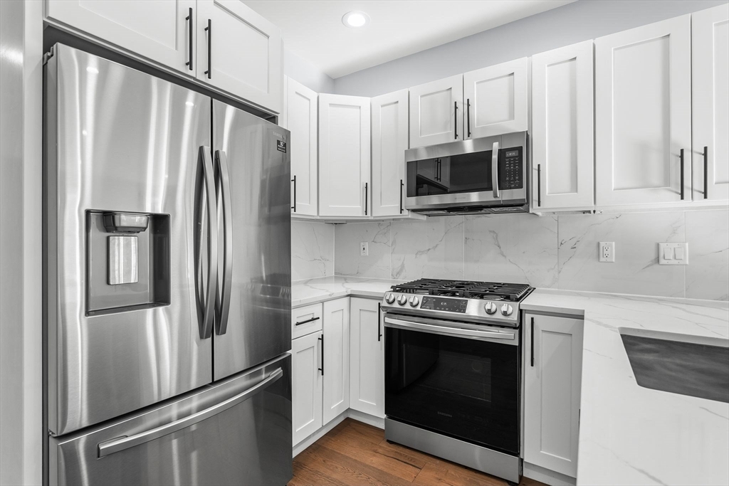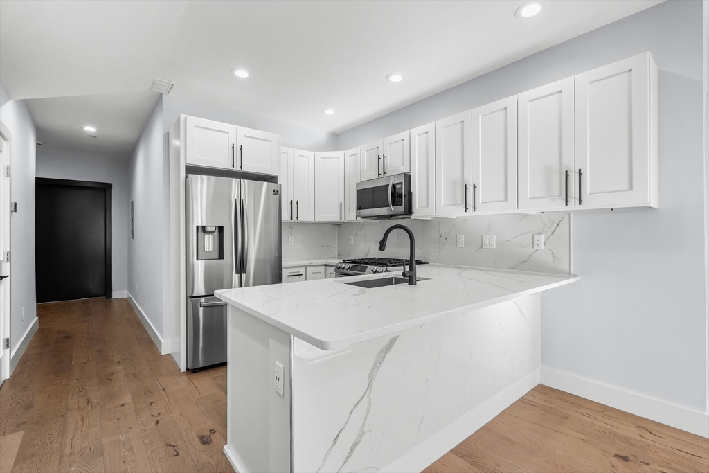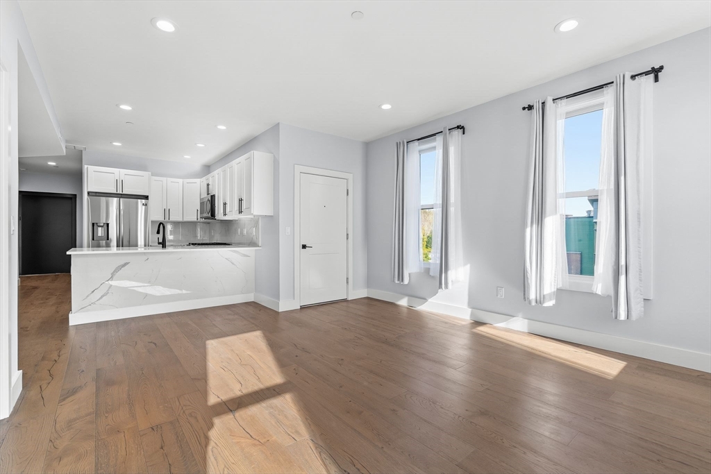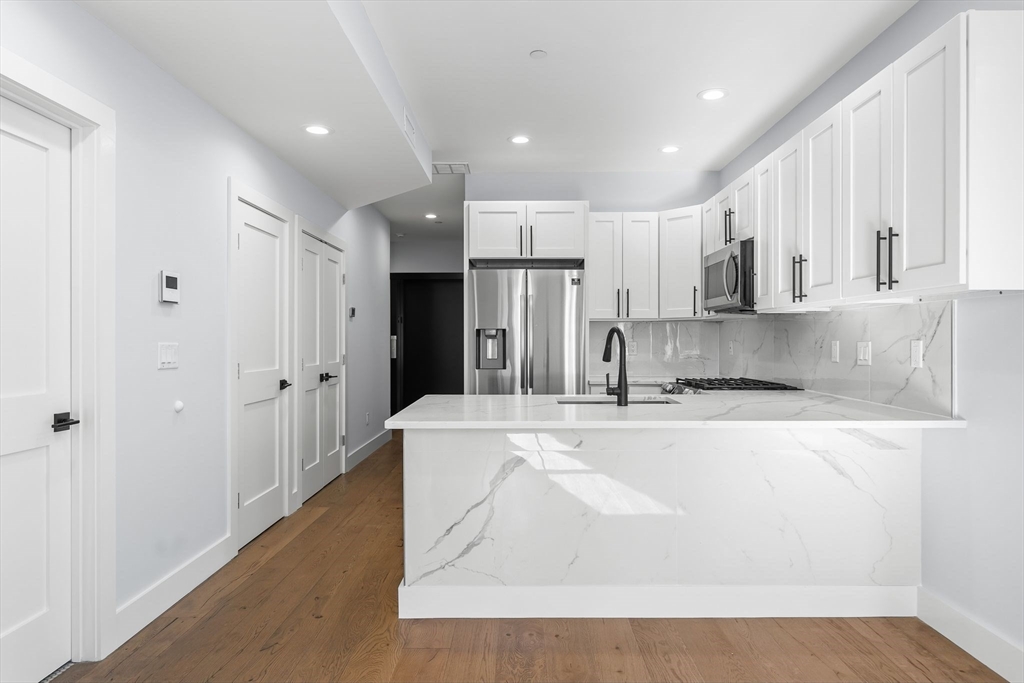 Brilliant top floor, 1 bed condo built in 2020 has direct elevator access into the unit! A spacious entrance foyer greets you, which could double as a home office area. Down the hallway is a well-appointed kitchen highlighted by white shaker cabinets, S/S Samsung appliances, & quartz counters w/ peninsula seating. The open floor plan encompasses a sun-filled, oversized living room that leads to a spacious bedroom w/ ample closet storage. Enjoy a spa-like bathroom featuring quartz tiled shower with glass doors. Amenities include in-unit laundry, central A/C & garage parking w/ one exclusive use space. Self-managed HOA with high owner occupancy is pet friendly!! Common patio in the rear of the building is perfect for enjoying a drink or grilling. Easy walk to Forest Hills for the Orange Line T or Commuter Rail, plus access to abundant nature at the stunning Arnold Arboretum via the Blackwell Footpath, just across from the station. Walk, run or ride to the Southwest Corridor!!