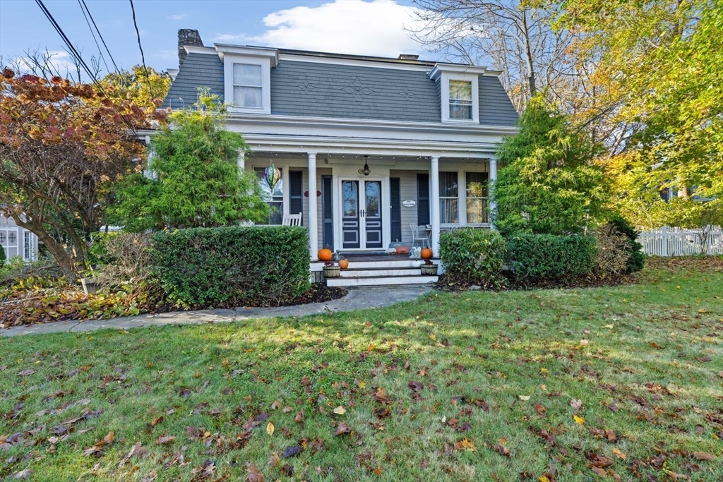 Step into timeless charm of this beautifully updated 1864 home blending historic character with modern comfort. Featuring 3 spacious bedrooms, 2 full baths, multiple flexible/office spaces and 2,540 sq ft of living space, highlights include a sun-filled updated kitchen with granite counters, stainless steel appliances, and cathedral, beamed ceilings with skylights and charming hardwoods and parquet. Coffee on the covered back patio while overlooking the gardens is the perfect way to start the day. Enjoy cozy evenings by the stone fireplace and entertain in the large dining room with built ins and a large bay window. A 450 sf out building has been used as a yoga studio but opportunities are endless, the barn offers even more storage. Energy-efficient systems, solar panels, and a newer roof offer peace of mind. Set on a lush 0.83-acre lot, close to beaches and Scituate harbor and walkable to Greenbush station and restaurants - this home is a rare gem!