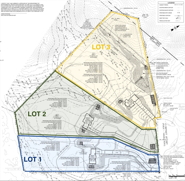 FULLY APPROVED – 3.16 acre BUILDABLE LOT An exceptional opportunity for developers or individuals looking to build their dream home. This approved subdivision offers three spacious lots, this specific lot is 3.16 acres, abutting beautiful conservation land for added privacy and scenic surroundings.Located at the end of a quiet cul-de-sac, each lot features its own long private driveway, offering a secluded and serene setting. With room to build homes ranging from 3,500 to 4,500 sq. ft. Or larger, the possibilities are endless. FULL APPROVALS and civil engineering plans are in hand, allowing you to start building right away. Can also Be purchased in a package deal with lots 1 & 3.