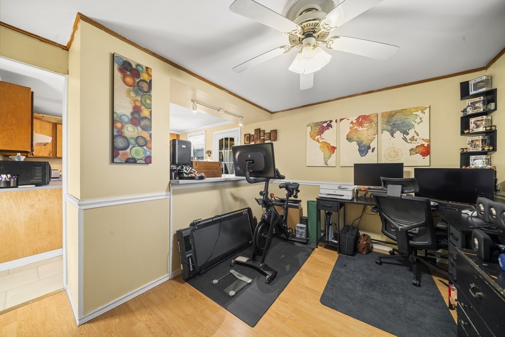 Welcome to this beautifully updated Cape, freshly painted and topped with a brand-new roof. Nestled on a quiet side street, the home offers both tranquility and convenience—just minutes from restaurants, shopping, parks, and major routes. Inside, the living room centers around a warm, inviting fireplace, perfect for cozy evenings or effortless entertaining. The kitchen features stainless-steel appliances that remain with the home, adding modern ease to everyday living. A spacious primary bedroom and full bath are located on the main level, while two generously sized bedrooms await upstairs. Practical touches, including a mudroom and one-car garage, enhance daily comfort. Built in 1948, this home seamlessly blends timeless character with modern updates, making it a truly special find.
