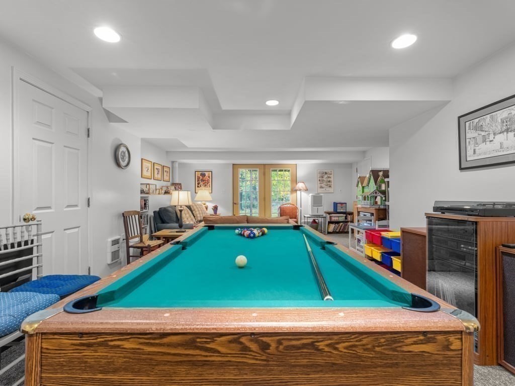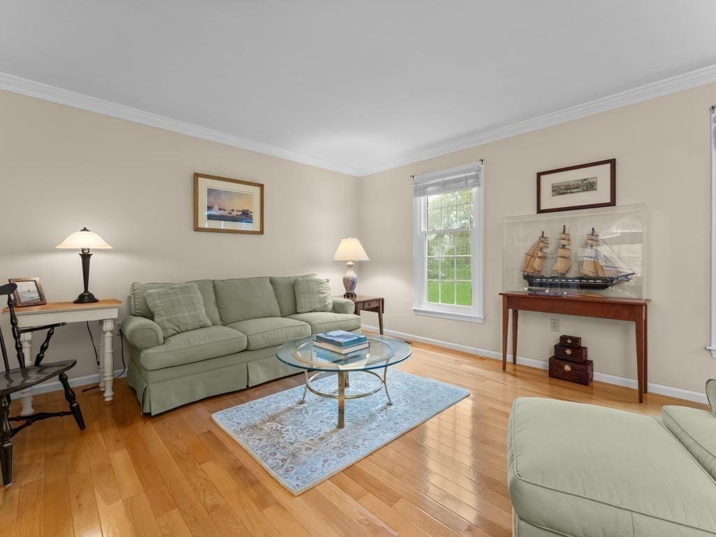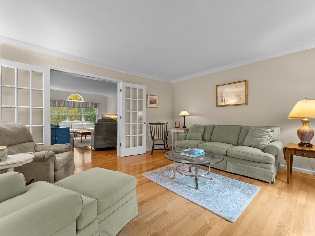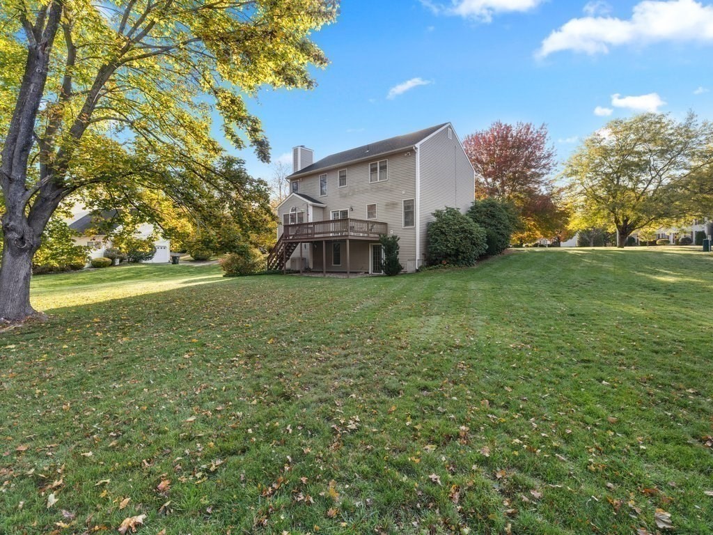 Spectacular & spacious custom colonial with distinctive architectural design on nearly 2/3rds of an acre, in premier, sought-after cul-de-sac neighborhood. Welcoming, 4-bedroom home of evident care & warmth incorporates thoughtful open design, abundant natural light, elegant French doors, & exquisite hardwood flooring. Expansive kitchen with generous dining area features oak cabinetry, s/s appliances, gas range, recessed lighting, “dessert” island with pendant light, & plenty of prep space for your signature side dishes. Opens to intimate family room with focal point fireplace, vaulted ceiling, & picture window with arched transom. Crown moldings, louver window treatments, central a/c, laundry room with gas dryer, & tons of storage. 2 garage spaces underneath, & finished basement bonus room with walk-out. Oversized deck for morning coffee & biscotti, & chance encounters with song sparrows. Commuter rail nearby. Get ready to be the destination of choice for so many happy occasions.