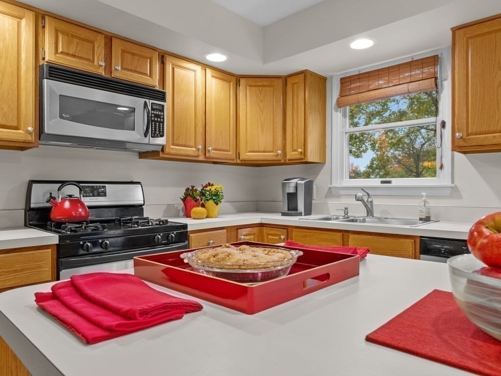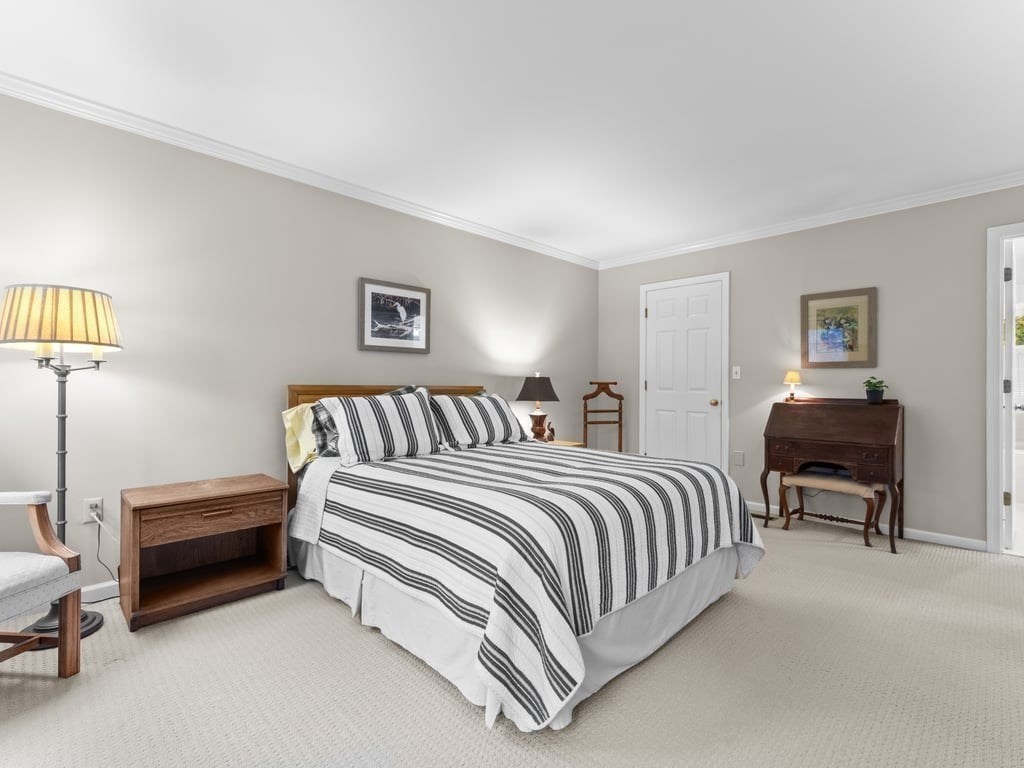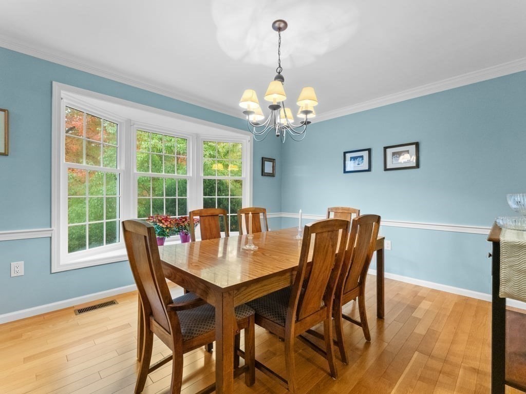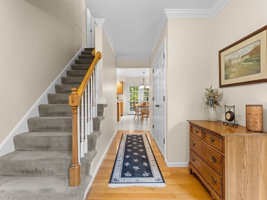 Spectacular & spacious custom colonial with distinctive architectural design on nearly 2/3rds of an acre, in premier, sought-after cul-de-sac neighborhood. Welcoming, 4-bedroom home of evident care & warmth incorporates thoughtful open design, abundant natural light, elegant French doors, & exquisite hardwood flooring. Expansive kitchen with generous dining area features oak cabinetry, s/s appliances, gas range, recessed lighting, “dessert” island with pendant light, & plenty of prep space for your signature side dishes. Opens to intimate family room with focal point fireplace, vaulted ceiling, & picture window with arched transom. Crown moldings, louver window treatments, central a/c, laundry room with gas dryer, & tons of storage. 2 garage spaces underneath, & finished basement bonus room with walk-out. Oversized deck for morning coffee & biscotti, & chance encounters with song sparrows. Commuter rail nearby. Get ready to be the destination of choice for so many happy occasions.