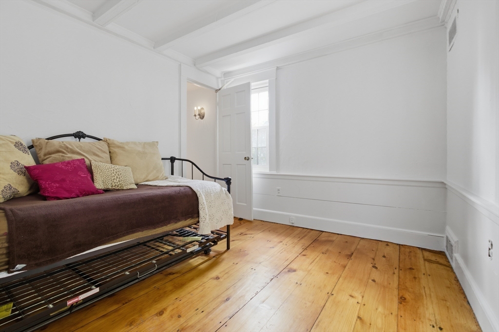 RARE! IN-TOWN LOCATION for this 1840's historically significant CHARM-FILLED Colonial with a bonus BARN with unfinished room above! Barn is a great "Accessory Dwelling" potential since the size is grandfathered in. Renovated home includes 4 bedrooms Plus Office/Den, (4 bedroom Septic), 2 full baths, CENTRAL AIR, and period details including original "Pumpkin Pine" wood floors, beamed ceilings, pocket-doors, ornate molding, and many built-ins! Beautiful RENOVATED white chefs' kitchen with stainless steel appliances opens to dining room with impressive grand working fireplace opening to family room. Many windows for ample natural light. Gas Heat & Town Water are a plus! BRAND NEW ROOF JUST INSTALLED (10/25). Interior was just freshly painted! Walk to Mill Village shops, restaurants & services! The Goodnow library is diagonally across the street! A much loved home!