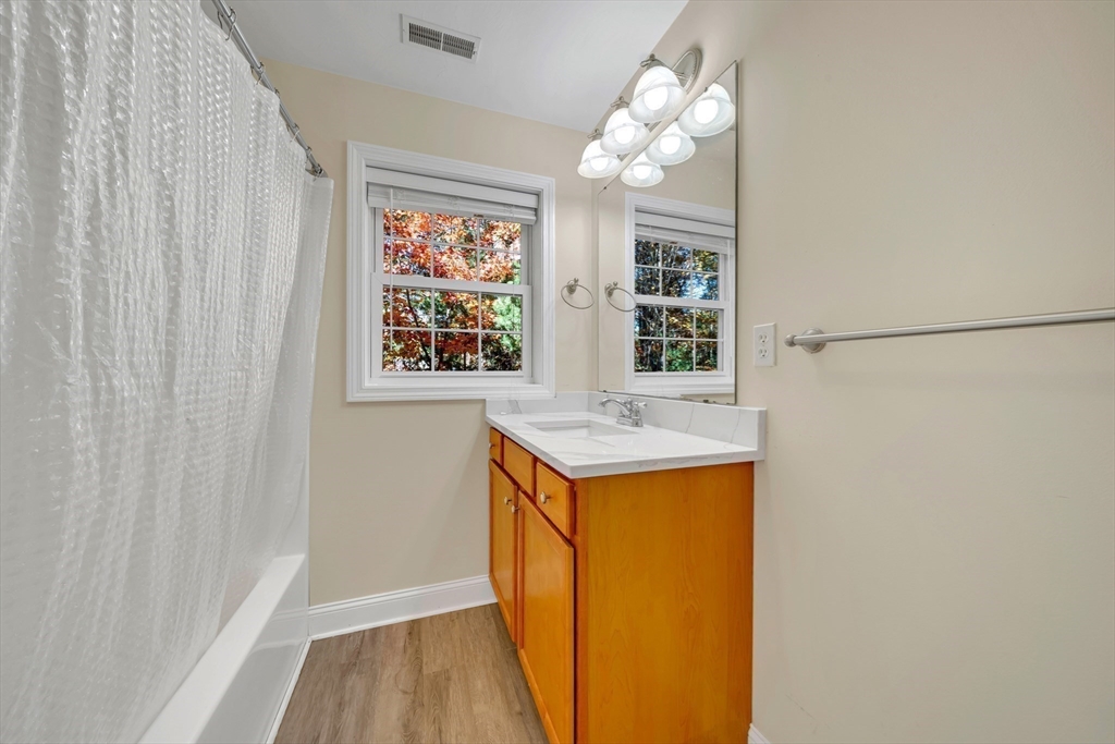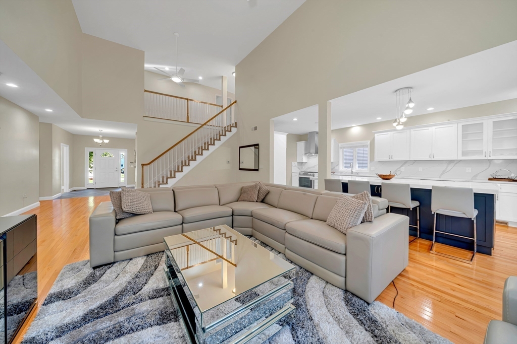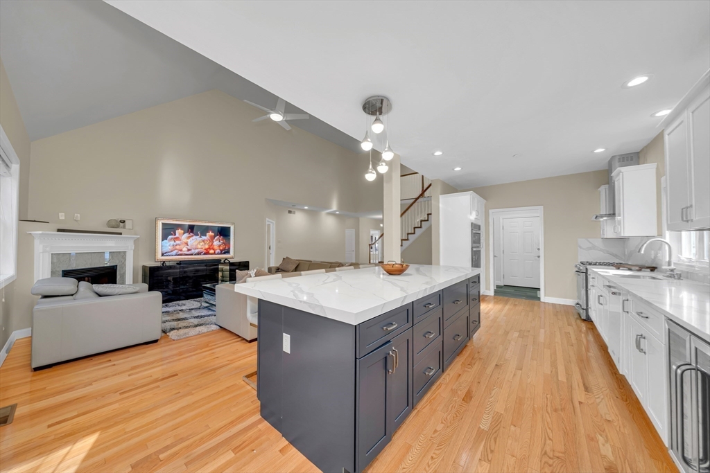 This stunning 4-bedroom, 2.5-bath home in the highly sought-after 55+ Maple Ridge Village perfectly combines luxury, comfort, and style. Step inside to a sun-filled foyer with gleaming hardwood floors, a cozy fireplace, and soaring vaulted ceilings that create an open, airy feel. The all-new designer kitchen is a true showpiece—featuring quartz countertops, shaker cabinets, a spacious island with wine cooler, state-of-the-art appliances, and a striking backsplash with a sleek chimney range hood. The first-floor primary suite is your private retreat, offering a spa-inspired bath with a double vanity, tiled walk-in shower, and relaxing jetted tub. A home office and half bath complete the main level. Upstairs, you’ll find three generous bedrooms, a full bath, and abundant storage space. Enjoy the convenience of a two-car garage and a full walk-out basement ideal for future expansion. Perfectly located just minutes from shopping, dining, and major highways—this home truly has it all.