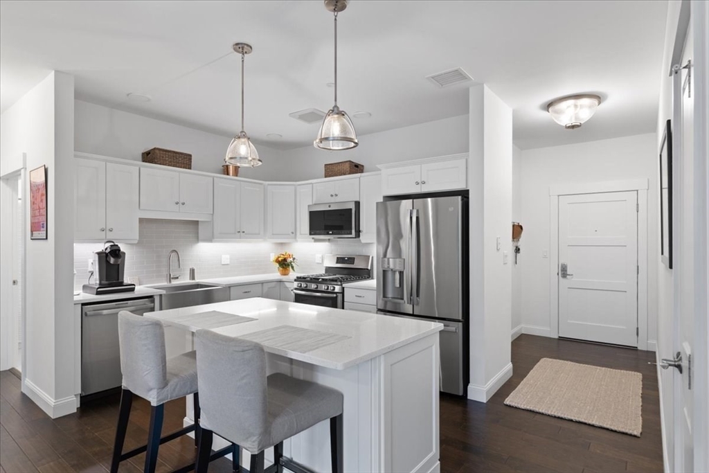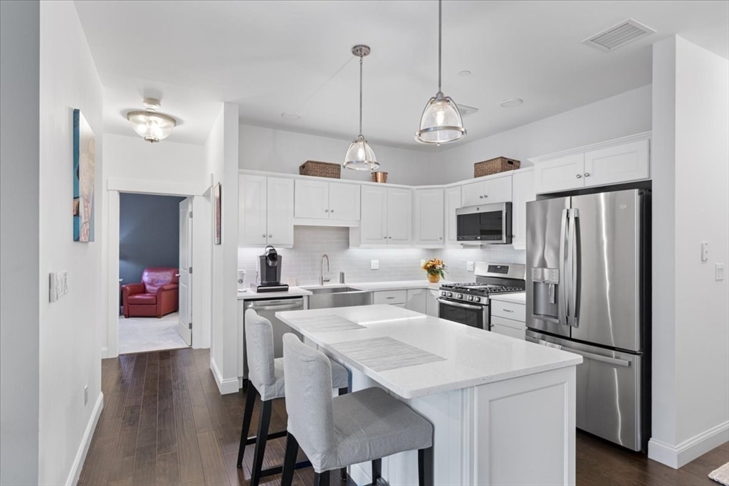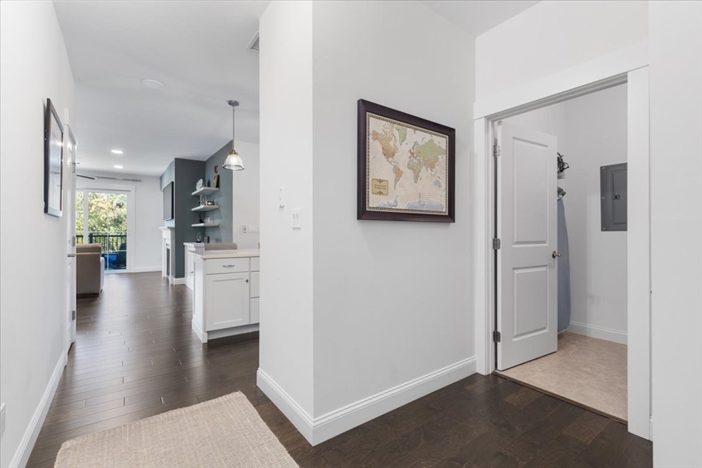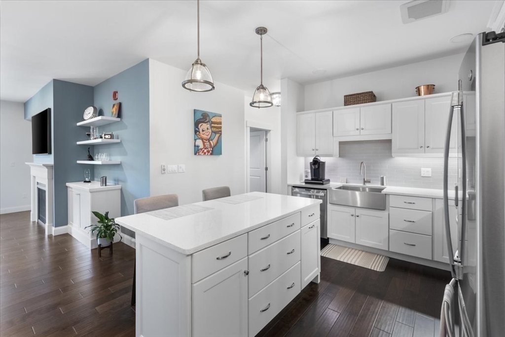 Where Modern Luxury Meets Effortless Living at Copperworks Community minutes from Canton Center. Step into this impeccably designed 2-bed, 2-bath Nickel II style condo and experience a lifestyle that’s as sophisticated as it is stress-free. Every detail impresses, white custom cabinets, quartz counters, SS appliances, pendant lighting, fireplace living room with custom built-ins & “The Frame” TV included. Step out to your private bistro balcony offering serene treetop views. Primary suite rivals a five-star retreat with its frameless glass shower, double vanities & grand walk in with custom closet system. In unit laundry includes washer & dryer. Enjoy premier amenities with roof top patio & outdoor kitchen, clubhouse with pool, deeded garage parking, private storage unit, & elevator. Pets Allowed, Gas Heat, Hardwood Flooring. Location, Easy Living, & Community, Perfect for the Discerning Buyer. Showings begin at the Open House, Sat. 10/25, from 1 to 2 pm.