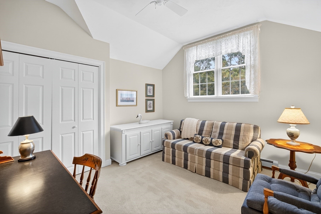 Custom built gracious Contemporary Traditional home with first floor primary on a level almost acre acre, conveniently located to infamous Dennis golf courses, Sesuit Harbor and Bayside beaches. This is the one you have been waiting for! The front porch leads you in, grand 18' entry and great room with fieldstone fireplace, open kitchen design with breakfast room leading to screen porch, overlooking level landscaped back yard. The 1st floor Primary suite offers cathedral ceiling, customized walk-in closet, and separate tub/shower bath w adaptable heat source that can be scheduled to warm up before you do. The dining room, powder room & laundry room, extensive moldings thru out and hardwood floors complete the 1st floor. Upstairs there are two bedroom and one full bath, a walk in attic space that could be finished or use for storage. The lower level has been partial finished adding to the function of this fantastic property.