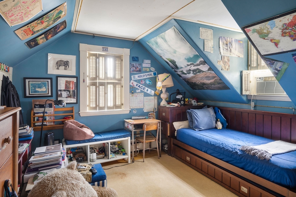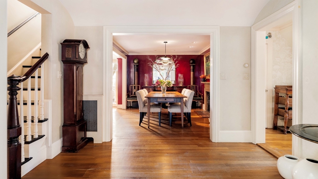 Tucked at the very end of a private way in Harvard Square, 12 Ash Street Place is a rare survivor of old Cambridge character—timeworn, soulful, and warmly inviting. The 1847 home offers gracious proportions, rich moldings, and a meandering layout of generous rooms and quiet nooks. The expansive living room, with walls of windows, has a kind of Cambridge grandeur without gloss—equally inviting for lively gatherings or quiet conversation. A footpath from the front door leads to Harvard Square, a secret passage from this tucked-away solitude to the city’s vibrant bustle. The kitchen, with its classic Garland range, built-in seating, and wisteria-draped deck, captures the house’s spirit: lived-in, unpretentious, and full of heart. The property asks for stewardship—and, yes, some elbow grease—from someone who sees the beauty in what time has shaped. Like a favorite old pair of jeans, it’s comfortably broken-in and impossible to replace. Parking is by custom on the private way.