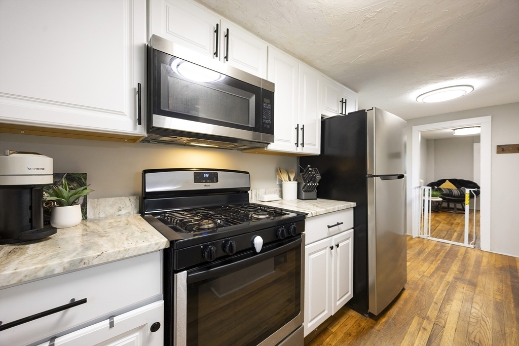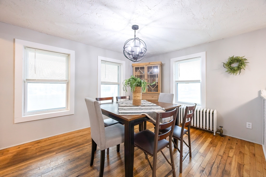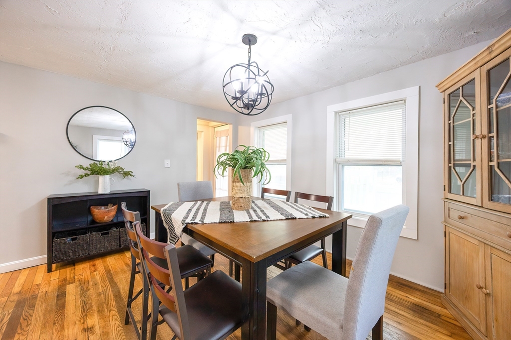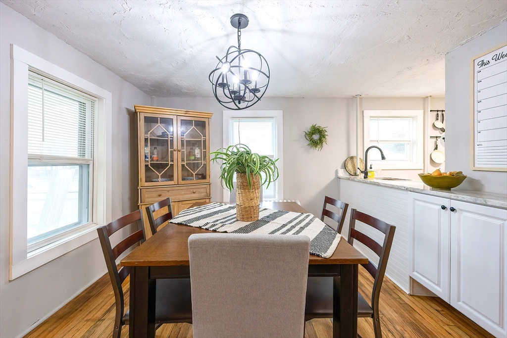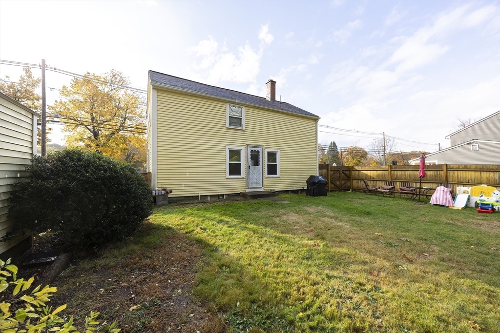 Welcome home! This charming 4-bedroom Colonial blends antique character with modern style — just in time for the holidays! Enjoy summer evenings on the inviting farmer’s porch and step inside through the bright French door. The open dining area sparkles with a lovely chandelier and flows into an updated kitchen featuring granite counters, stainless steel appliances, and a GAS stove. Hardwood floors shine throughout the spacious first floor, with a flexible bonus room perfect for an office or guest space. Upstairs, sun-filled bedrooms offer comfort and versatility, while the full bath boasts modern finishes and a tiled tub/shower. Outside, the fenced backyard is private, grassy, and ready for fun! With gas heat, town utilities, a one-car garage, and a playground across the street, this home checks all the boxes. Walk to local shops and enjoy easy access to Rtes 122, 146, and 495. Move in and make memories today!