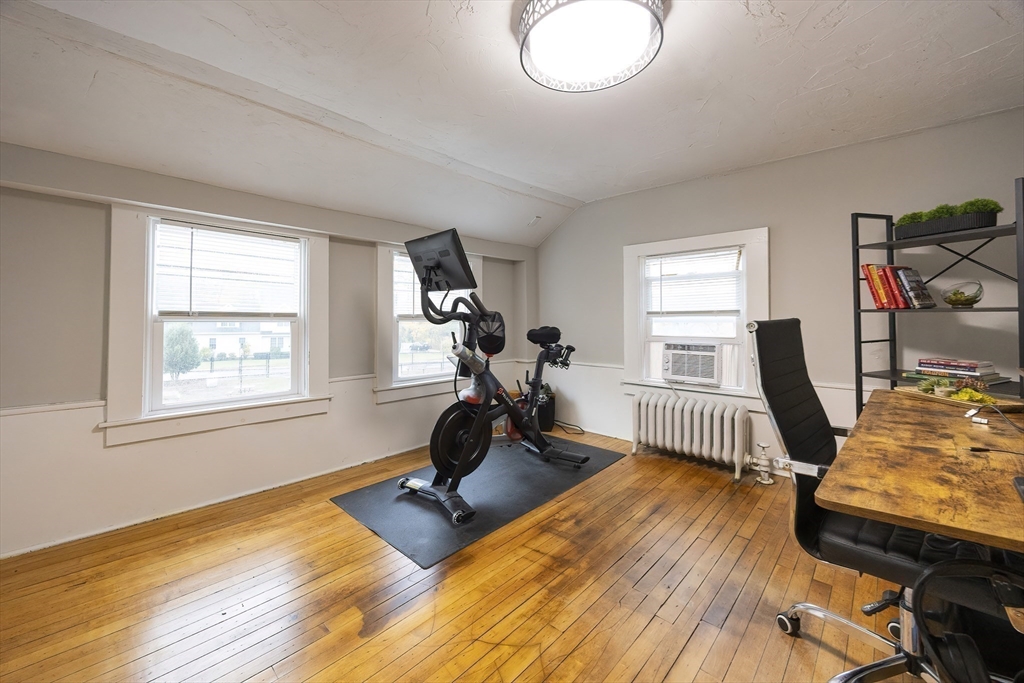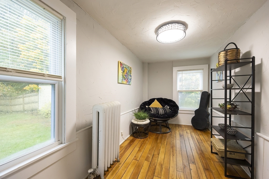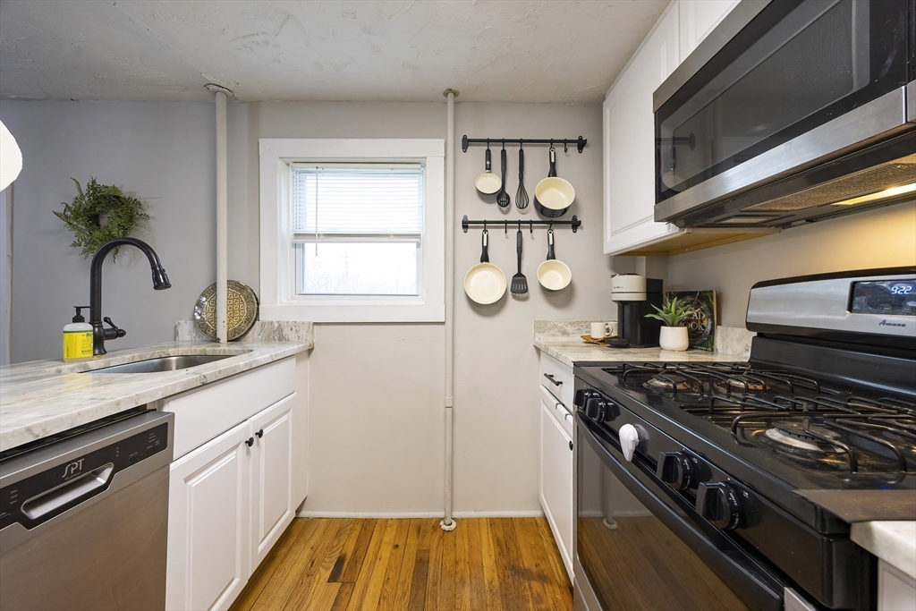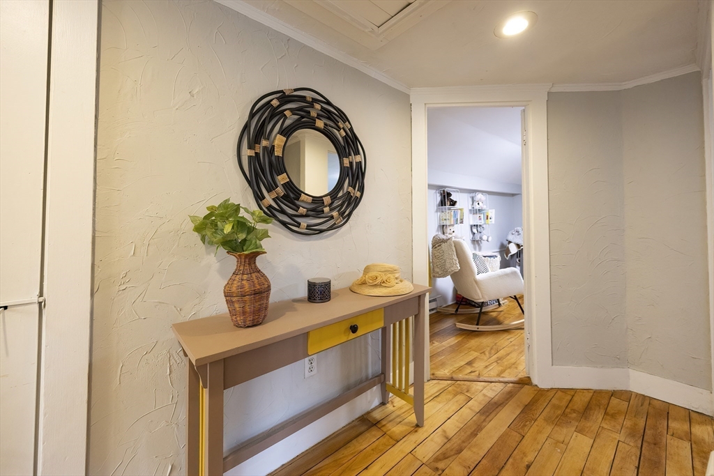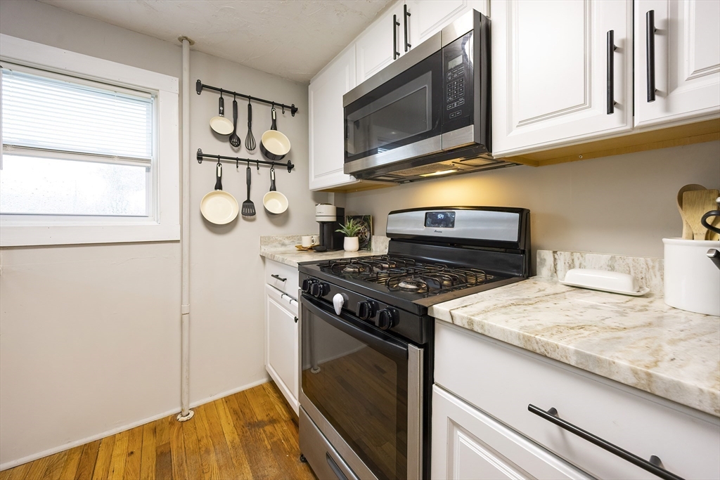 Welcome home! This charming 4-bedroom Colonial blends antique character with modern style — just in time for the holidays! Enjoy summer evenings on the inviting farmer’s porch and step inside through the bright French door. The open dining area sparkles with a lovely chandelier and flows into an updated kitchen featuring granite counters, stainless steel appliances, and a GAS stove. Hardwood floors shine throughout the spacious first floor, with a flexible bonus room perfect for an office or guest space. Upstairs, sun-filled bedrooms offer comfort and versatility, while the full bath boasts modern finishes and a tiled tub/shower. Outside, the fenced backyard is private, grassy, and ready for fun! With gas heat, town utilities, a one-car garage, and a playground across the street, this home checks all the boxes. Walk to local shops and enjoy easy access to Rtes 122, 146, and 495. Move in and make memories today!