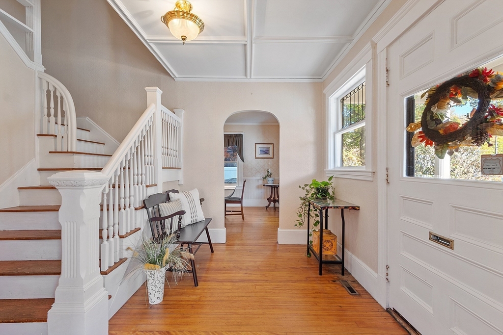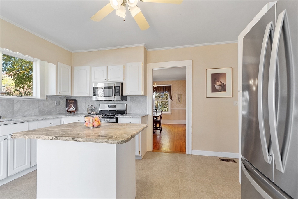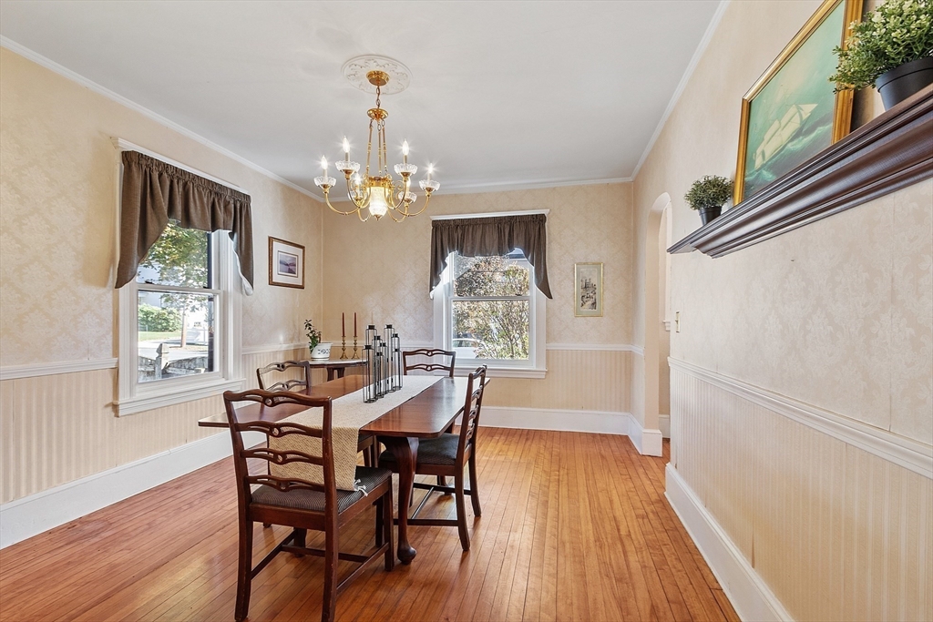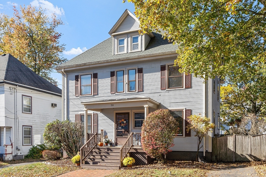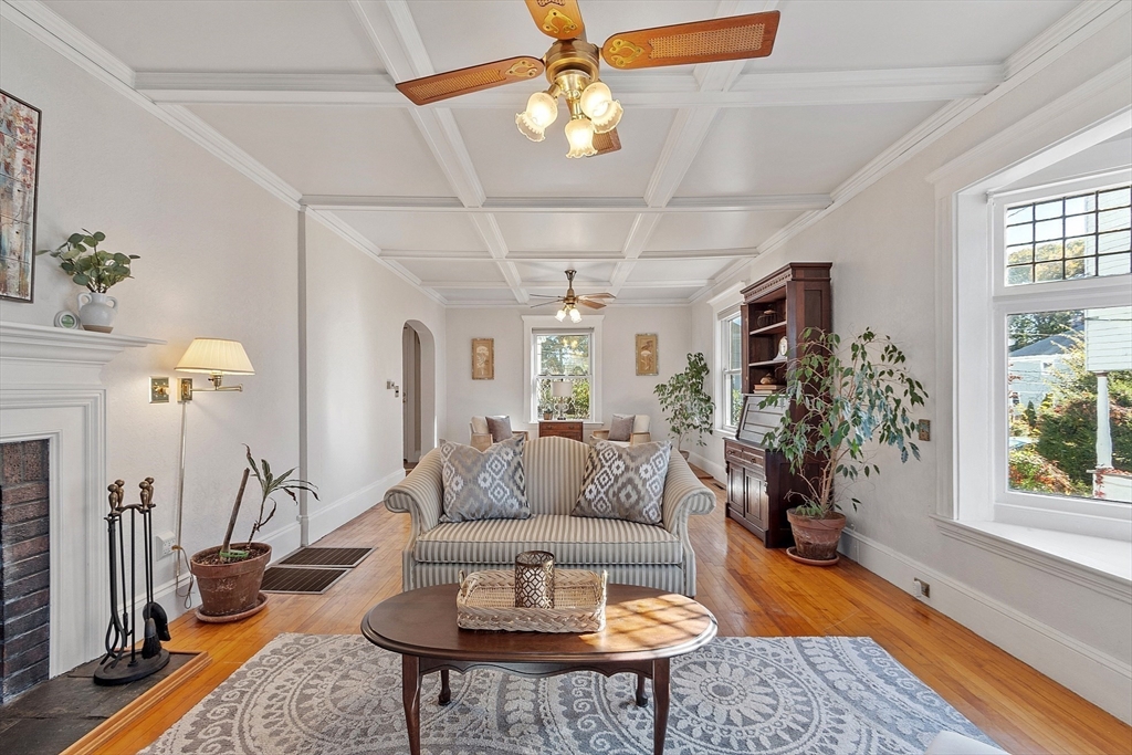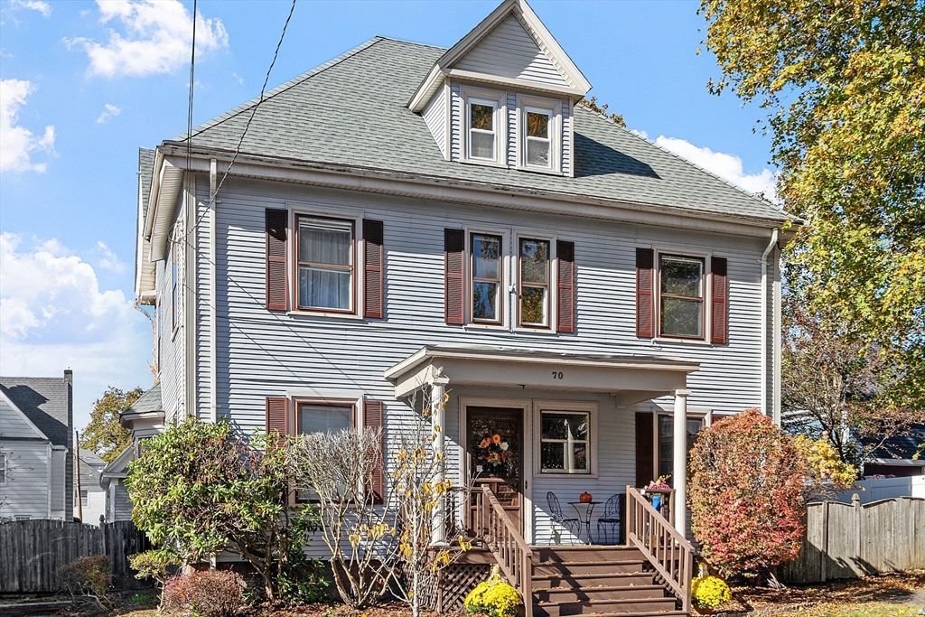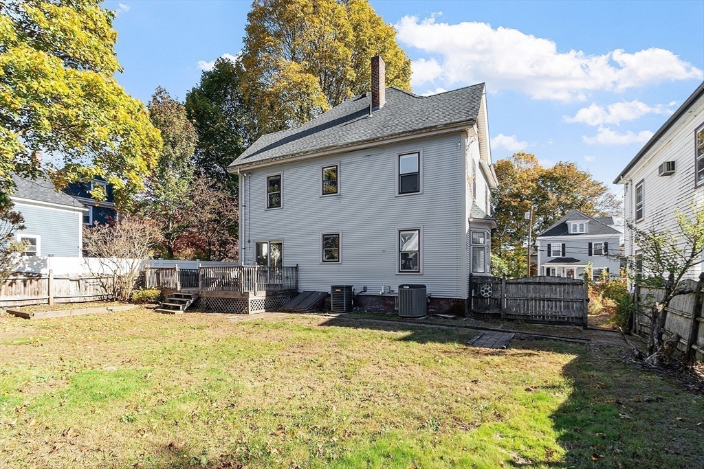 Welcome to this charming & warm 4-bedroom, 1.5-bath home offering 2,016 sq ft of beautiful living space. The spacious living room boasts gorgeous hardwood floors, a wood-burning fireplace, coffered ceilings, and a bright bow window. The large dining room connects to a kitchen with granite counters, stainless steel appliances, extra cabinetry, and a large bow window. Glass doors open to a deck overlooking the fenced in backyard, perfect for relaxation or entertaining. Upstairs, you’ll find four generously sized bedrooms with hardwood floors and a full bath with a linen closet. The open hallway provides space for a reading nook or office. A walk-up attic ideal for expansion potential, and the large unfinished basement offers abundant storage. With Central A/C, two driveways, and a prime location in the Walnut School District near Route 495, NH, and Kenoza Lake, this well-maintained home offers a perfect blend of character, comfort, and convenience. Don't miss out on this timeless Gem!