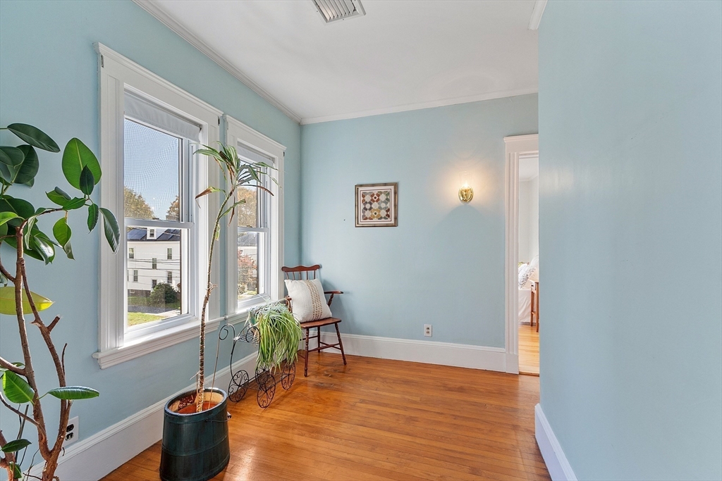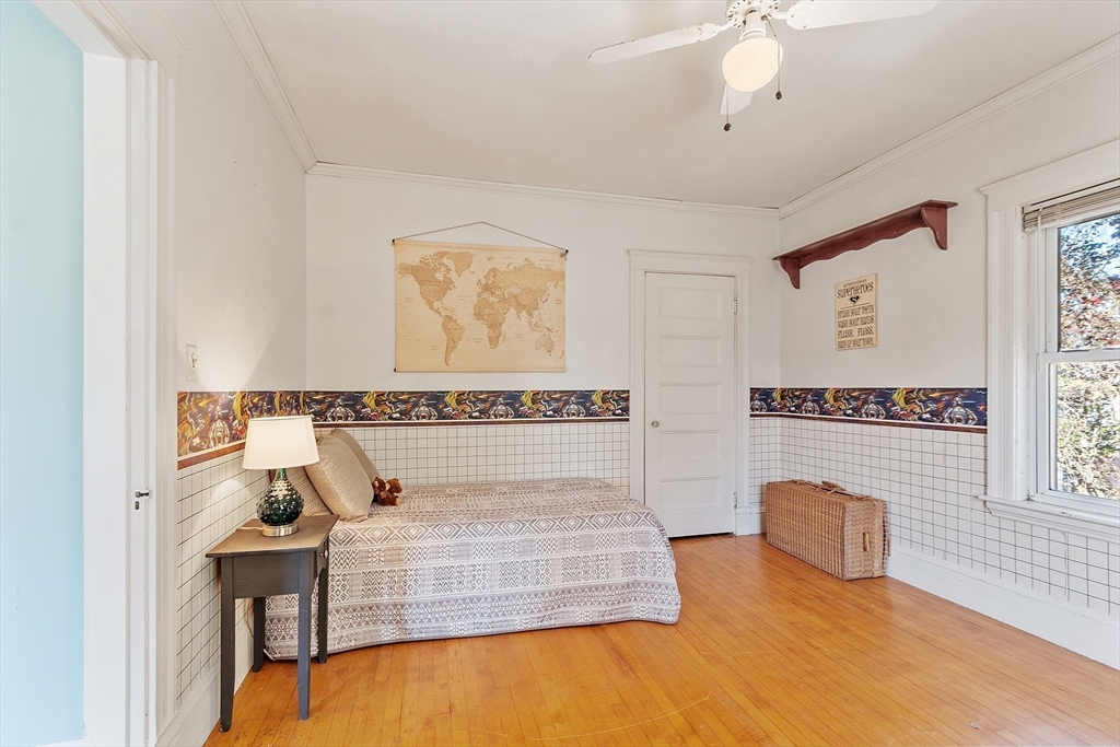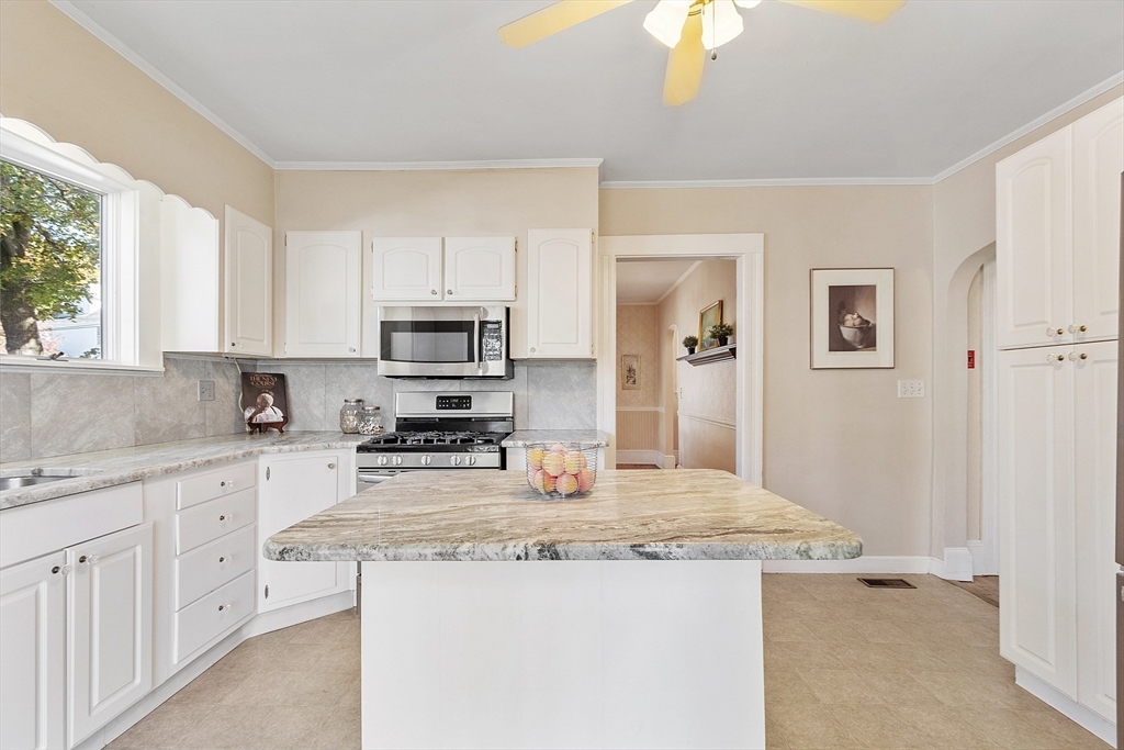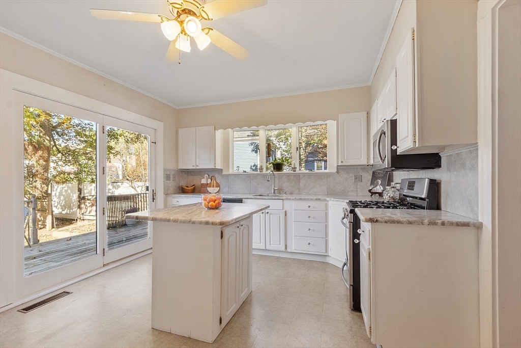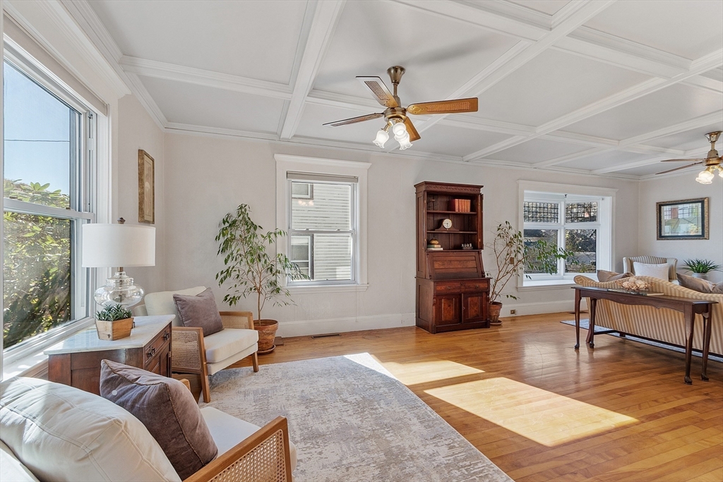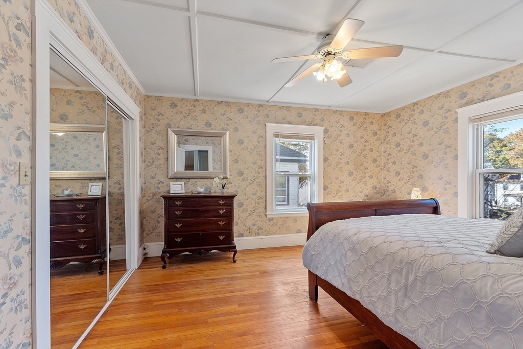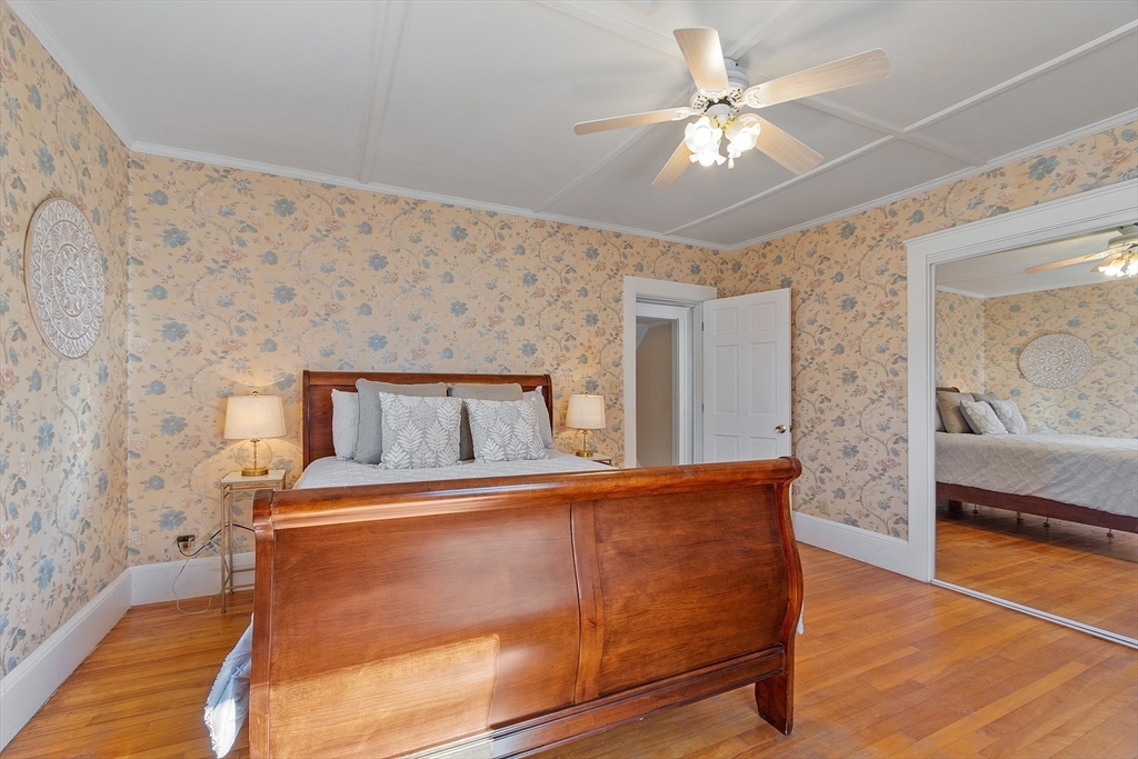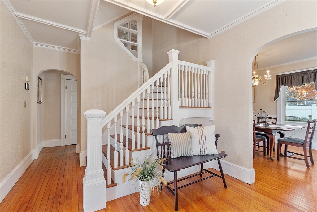 Welcome to this charming & warm 4-bedroom, 1.5-bath home offering 2,016 sq ft of beautiful living space. The spacious living room boasts gorgeous hardwood floors, a wood-burning fireplace, coffered ceilings, and a bright bow window. The large dining room connects to a kitchen with granite counters, stainless steel appliances, extra cabinetry, and a large bow window. Glass doors open to a deck overlooking the fenced in backyard, perfect for relaxation or entertaining. Upstairs, you’ll find four generously sized bedrooms with hardwood floors and a full bath with a linen closet. The open hallway provides space for a reading nook or office. A walk-up attic ideal for expansion potential, and the large unfinished basement offers abundant storage. With Central A/C, two driveways, and a prime location in the Walnut School District near Route 495, NH, and Kenoza Lake, this well-maintained home offers a perfect blend of character, comfort, and convenience. Don't miss out on this timeless Gem!