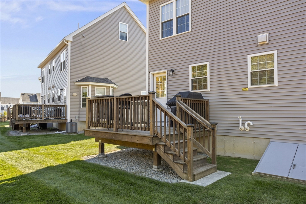 Welcome home to a wonderful location in the Tyngsboro Crossing community. This townhouse condo was built in 2018 and is in mint condition! The granite front stairs with field stone veneer lead you into the home with an open concept floor plan, stained hardwood floors, and plenty of natural light. The eat in kitchen features gray shaker style cabinetry, granite countertops, stainless appliances, and a stylish tile backsplash. There is also direct access to a rear deck with no neighbors behind you which makes it perfect for outside grilling and entertaining! Level II features two bedrooms and one full bathroom including the expansive primary bedroom that has vaulted ceilings and a loft area that is currently used as a home office and den. The unfinished basement in the lower level has tall ceilings and no lally columns providing future expansion potential. Central A/C, natural gas heat, a low condo fee, and pet friendly rules are a few attributes that make this community so desirable!