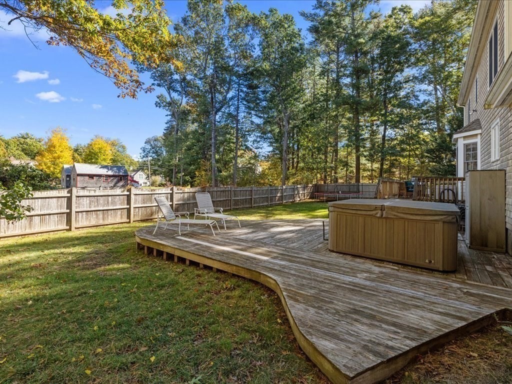 This classic four-bedroom, two-bath Colonial combines timeless charm with the best of coastal living in one of Duxbury's most sought-after neighborhoods—just a short stroll to Landing Road Beach and minutes from Hall’s Corner shops and restaurants. Filled with natural light, this home offers an open floor plan designed for both everyday living and easy entertaining. The front-to-back living room features a cozy gas fireplace and slider leading to the spacious deck, creating a perfect gathering space year-round. The eat-in kitchen is truly the heart of the home, complete with a center island and sunny breakfast nook. A full bath with laundry on the main level adds comfort and convenience. Upstairs are four generously sized bedrooms and another full bath. The finished lower level with custom built-ins provides even more flexible living space and the walk-up third-floor attic offers exciting potential for future expansion. This much loved home is a true gem and ready for its next chapter!