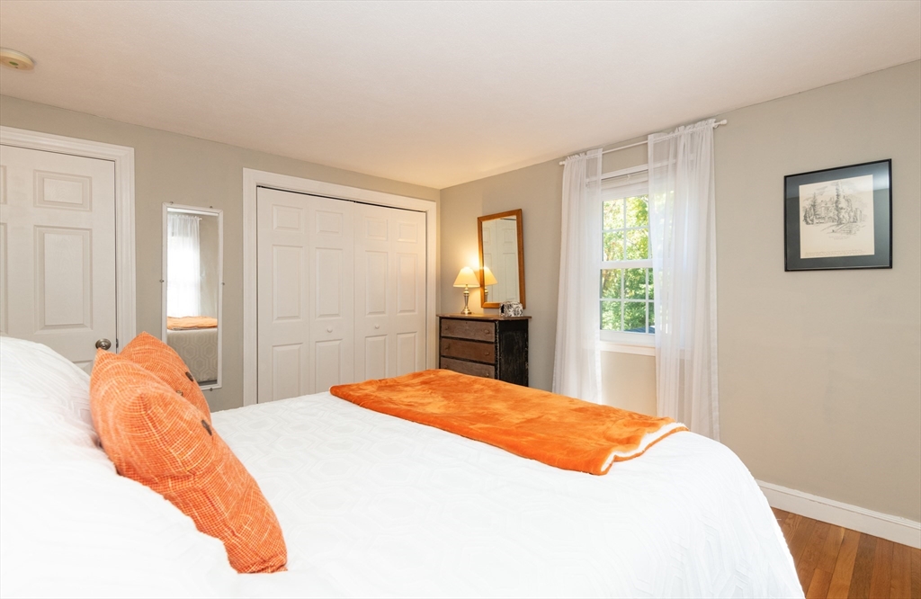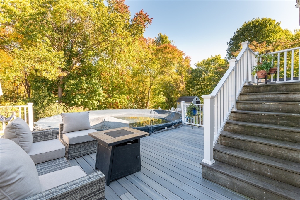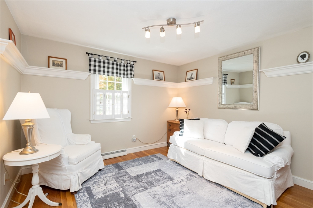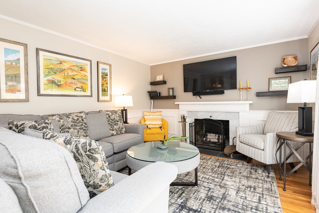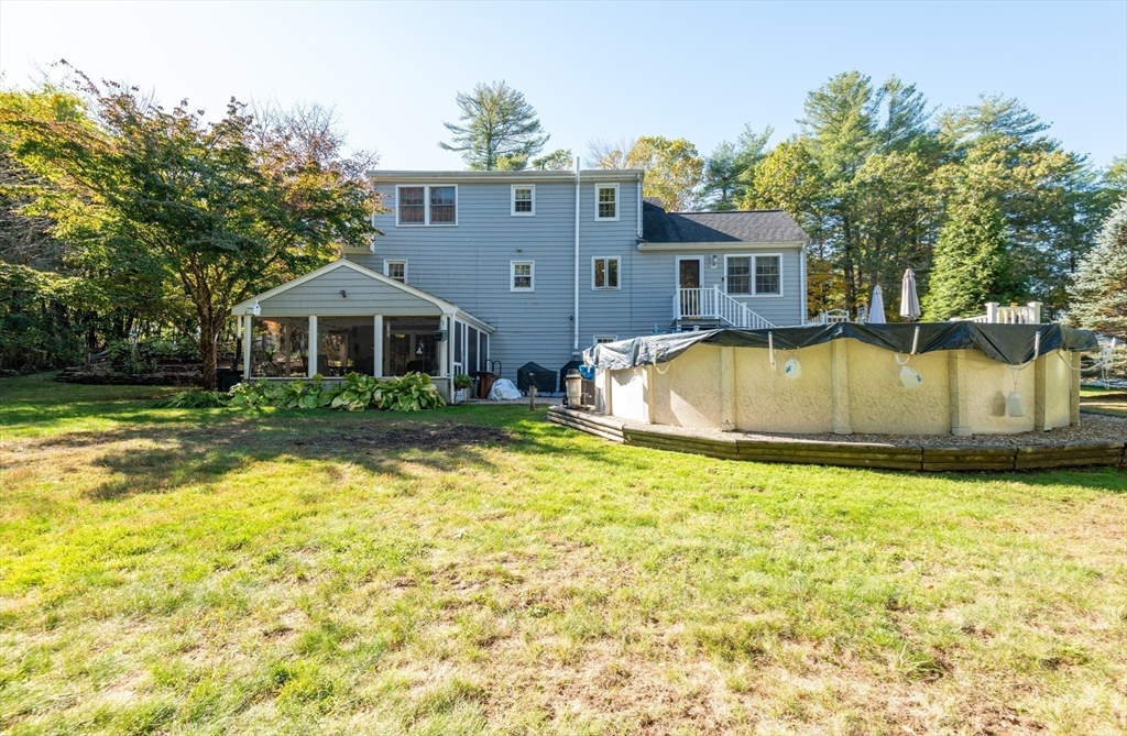 Welcome to this lovely 8-room Cape-style home in desirable Georgetown, offering 1,821 sq. ft. of inviting living space & an additional 400 sq.ft.in the finished lower level. The first floor features a formal living room with a wood-burning fireplace & gleaming hardwood floors, a charming kitchen with Corian counters, hardwood floors, & delightful dining area. A cozy den, mudroom, first-floor bedroom, full bath, & ample closet space complete the main level. Upstairs you’ll find a spacious main bedroom with hardwood floors, Fully renovated full bath, & a wonderful office perfect for work or study. The finished lower level offers a cozy family room with a gas fireplace & access to a screened porch—ideal for relaxing year-round. Outdoors, enjoy a large deck, a lovely above-ground pool, & a beautifully landscaped yard with a wooded backdrop for great privacy. Conveniently located near shopping, dining, & Route 95, this special home is one you won’t want to miss.