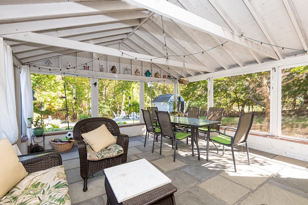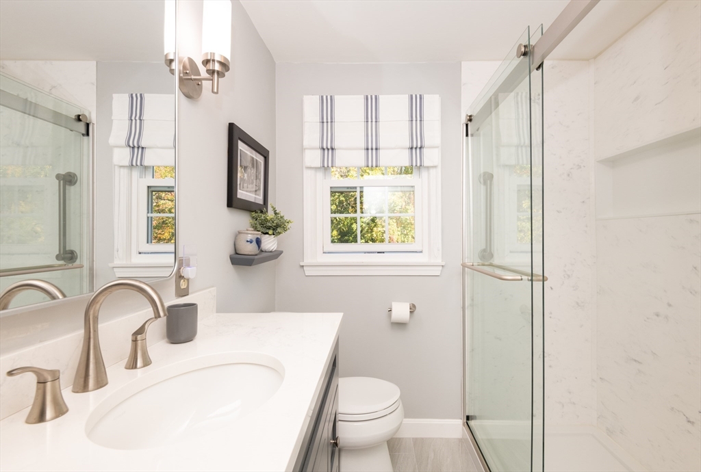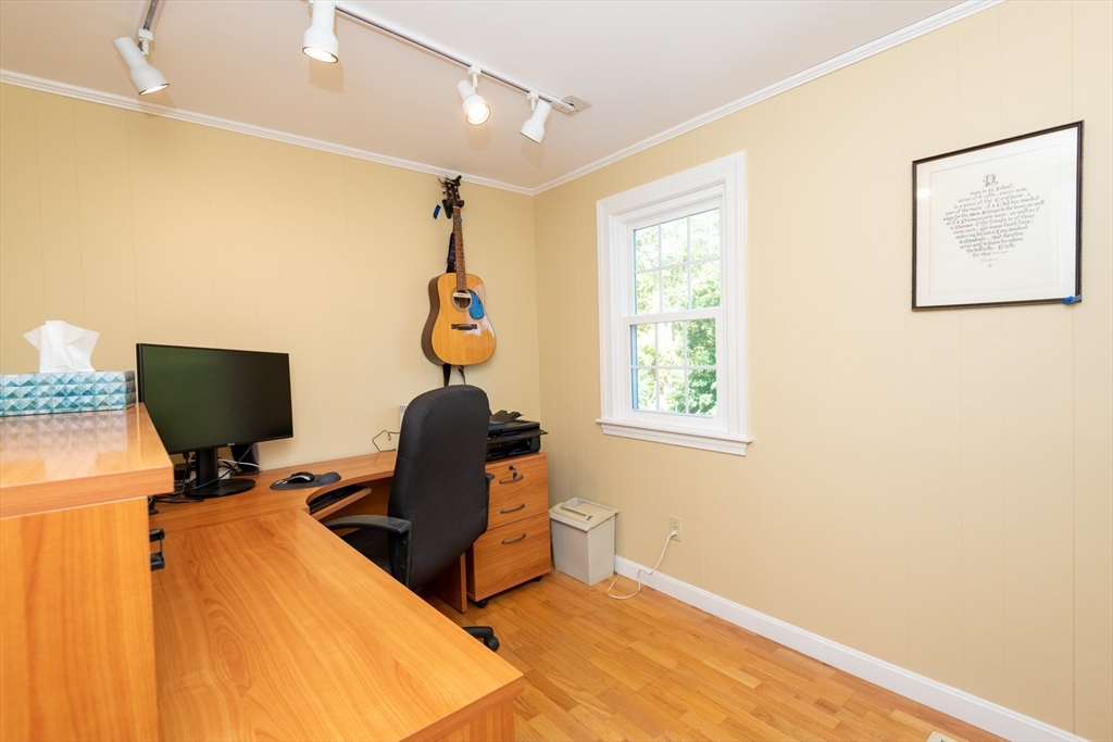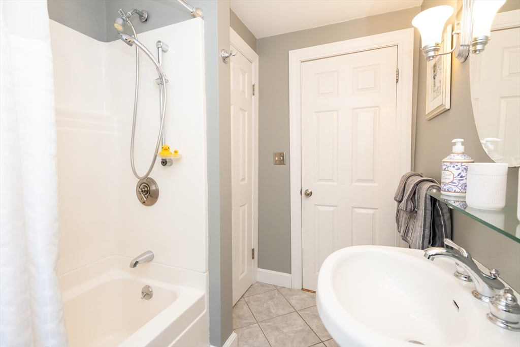 Welcome to this lovely 8-room Cape-style home in desirable Georgetown, offering 1,821 sq. ft. of inviting living space & an additional 400 sq.ft.in the finished lower level. The first floor features a formal living room with a wood-burning fireplace & gleaming hardwood floors, a charming kitchen with Corian counters, hardwood floors, & delightful dining area. A cozy den, mudroom, first-floor bedroom, full bath, & ample closet space complete the main level. Upstairs you’ll find a spacious main bedroom with hardwood floors, Fully renovated full bath, & a wonderful office perfect for work or study. The finished lower level offers a cozy family room with a gas fireplace & access to a screened porch—ideal for relaxing year-round. Outdoors, enjoy a large deck, a lovely above-ground pool, & a beautifully landscaped yard with a wooded backdrop for great privacy. Conveniently located near shopping, dining, & Route 95, this special home is one you won’t want to miss.