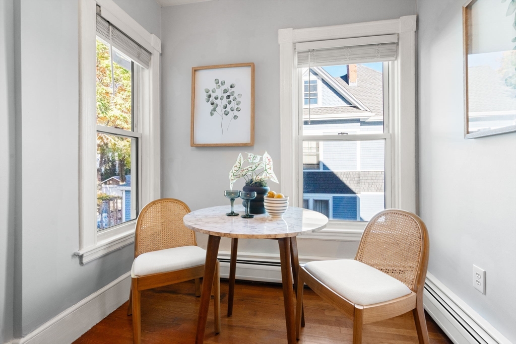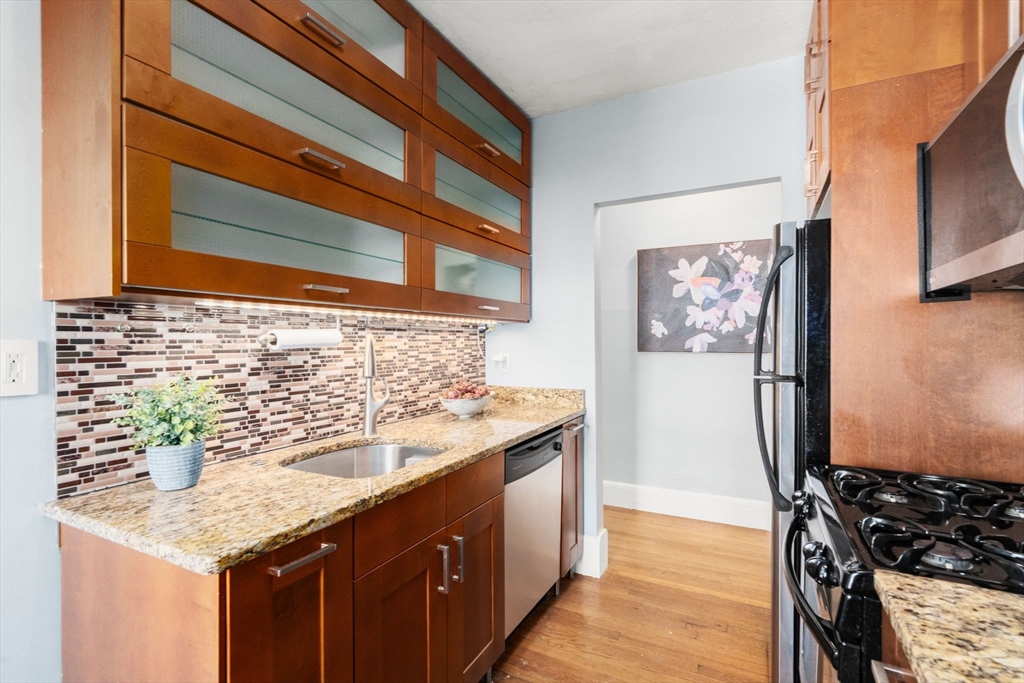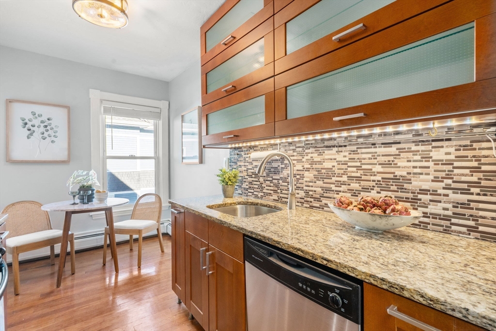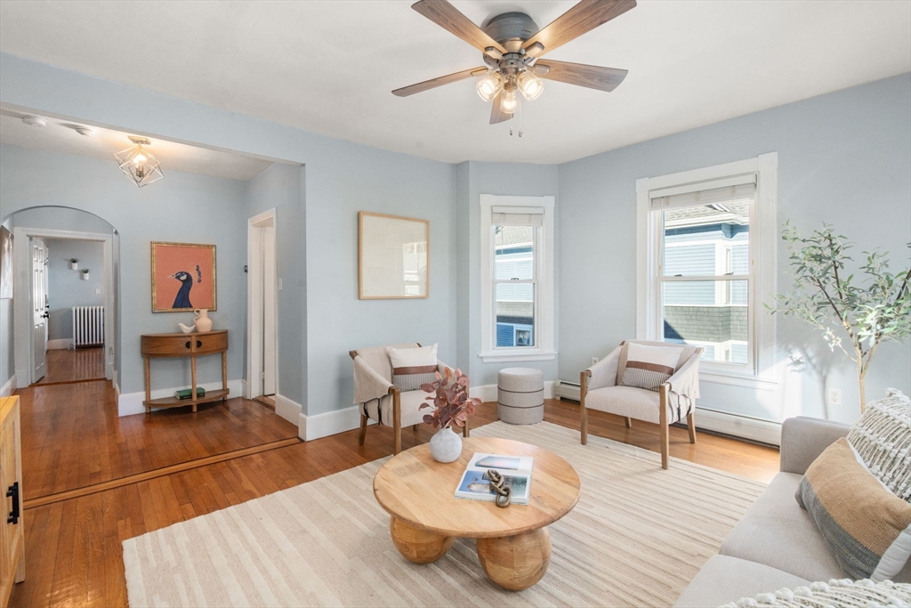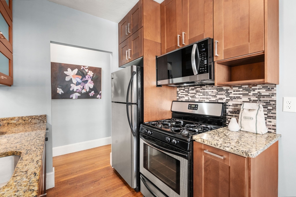 Sophisticated style meets timeless charm in this beautifully renovated 1-bedroom West End condo, just moments from Amerige Park, The Fellsmere Pond, Malden Center and the Malden T. Set within a newly restored Victorian bursting with character, this home features soaring ceilings, rich hardwood floors, and incredible natural light throughout. A gracious entry foyer leads to a charming, sun-filled living room that reflects the elegance of a bygone era. The updated eat-in kitchen boasts granite countertops, premium cabinetry, gas cooking, dishwasher and ample dining space. The oversized bedroom offers exceptional storage and access to porch. Heat and hot water are included in the low condo fee, and the home also features assigned off-street parking, guest parking, and secure basement storage. An exceptional opportunity for first-time buyers, downsizers, or anyone seeking an affordable home that blends charm, character, and unbeatable convenience. A rare find—don’t miss it!