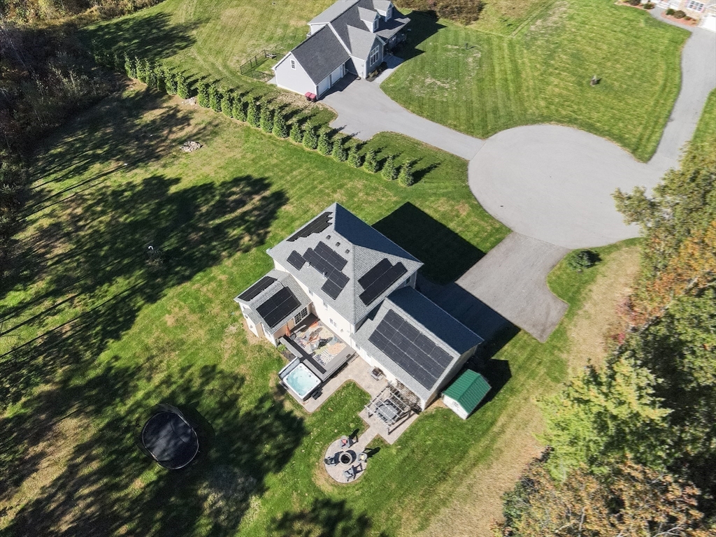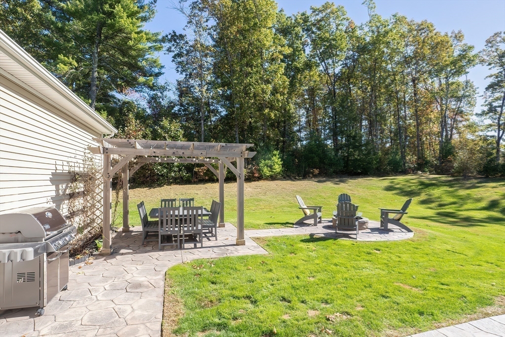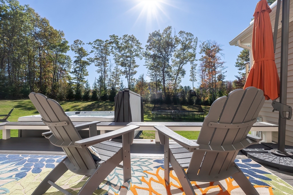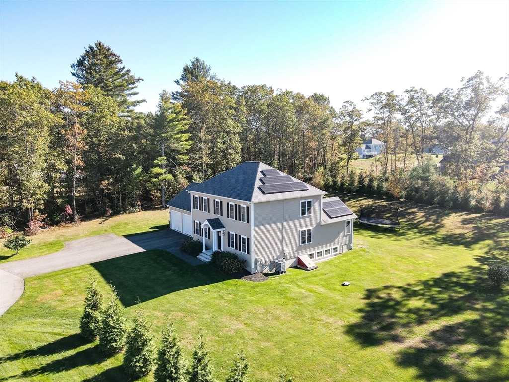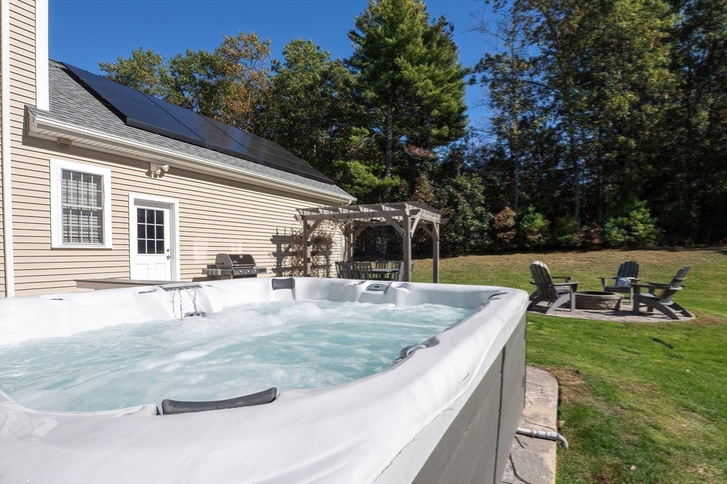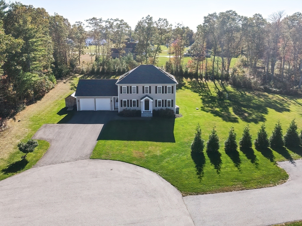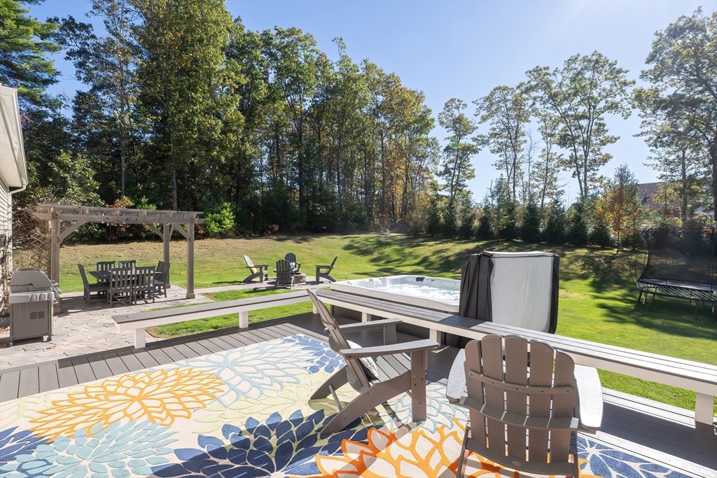 This young colonial has it all! Set at the end of a private cul-de-sac driveway with 2.4 acres of professionally landscaped yard. Whether you're entertaining or unwinding, you'll love the large composite deck, relaxing hot tub, fire pit, and pergola-covered patio. Inside you’ll find a cathedral living room featuring a propane fireplace, sunlit dining room, and a spacious kitchen equipped with a center island, granite countertops, and stainless steel appliances. Two versatile flex rooms off the open foyer provide ideal space for a home office, playroom, or formal room.Upstairs, the generous primary suite boasts a walk-in closet and relaxing bathroom. Two additional bedrooms share a full bath with a double vanity, and the laundry room offers built-in hanging racks and ample counter space for folding clothes. The finished basement adds over 1,000 sqft of additional living space, including two bonus rooms, a full bathroom, a second living area, and plenty of room for a home gym.